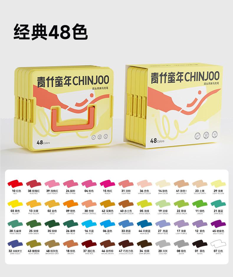 48 Colors Brush-Type Acrylic Markers [Double-Ended Cotton Core]