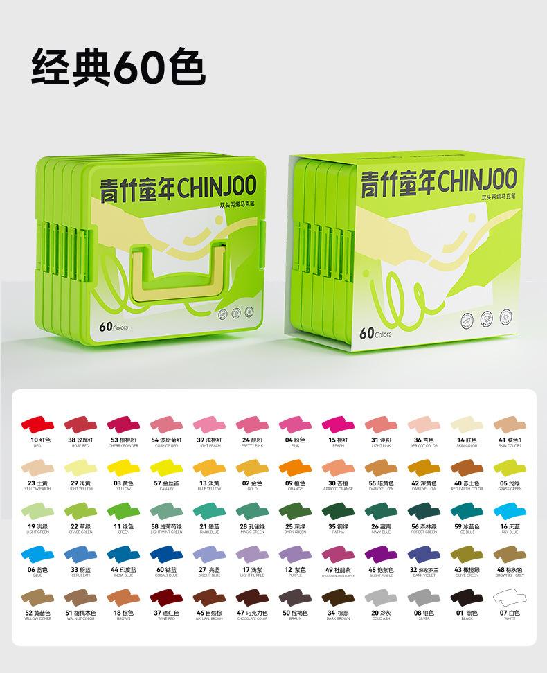60 Colors Brush-Type Acrylic Markers 【Double-Ended Cotton Core】