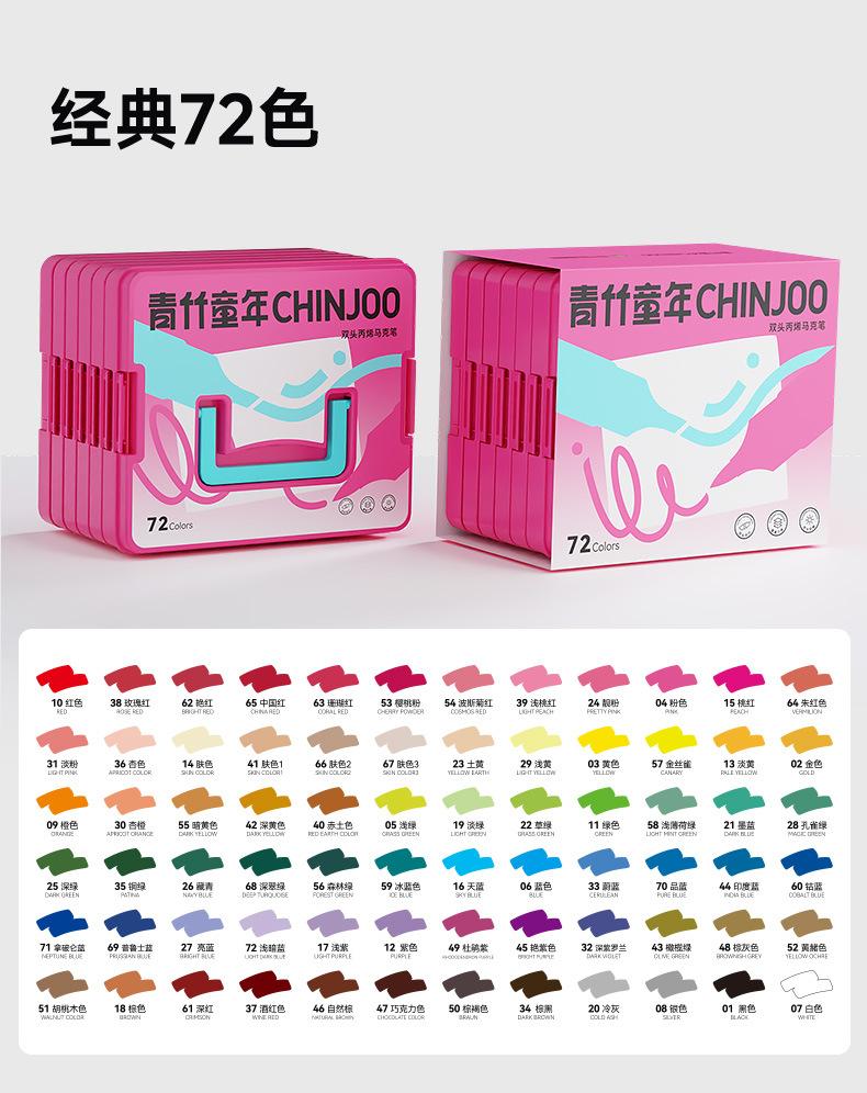 72 Colors Brush-Tip Acrylic Markers 【Double-Ended Cotton Core】