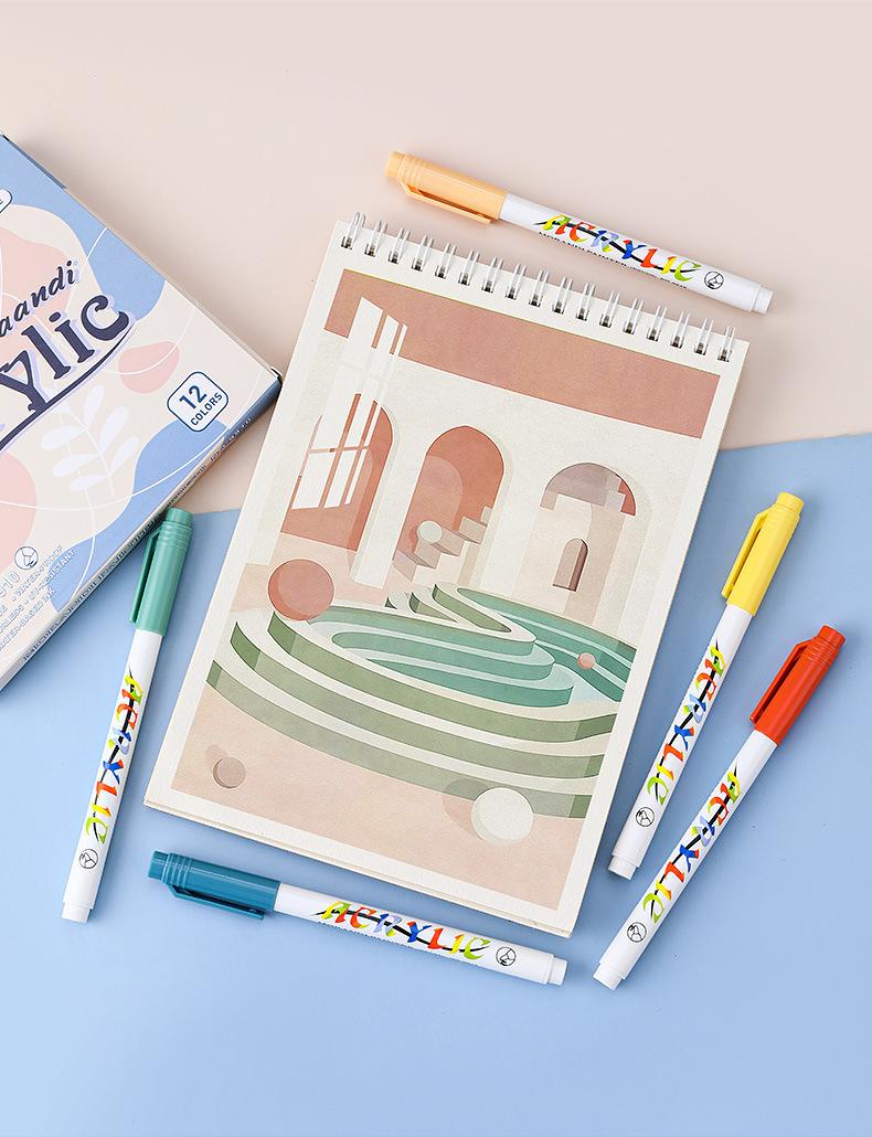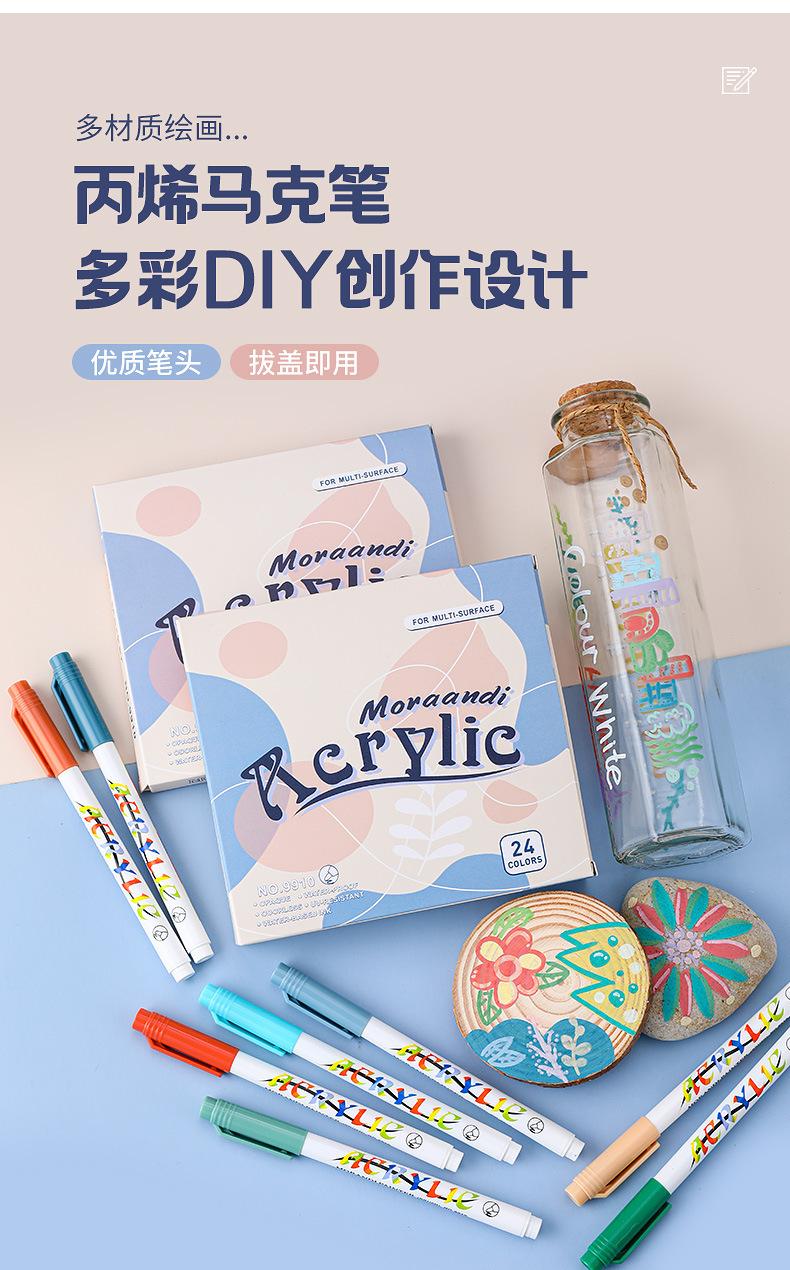 Juego de rotuladores acrílicos de punta suave etiquetables transfronterizos para estudiantes de primaria, pintura, grafiti, rotuladores de color, impermeables, opacos, 24 colores