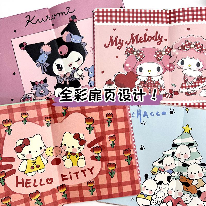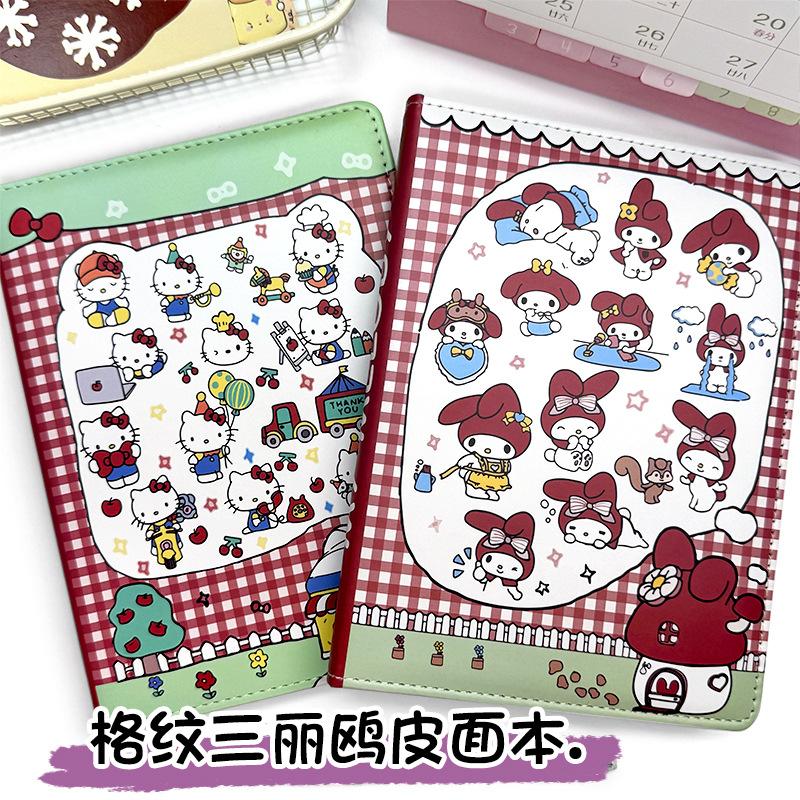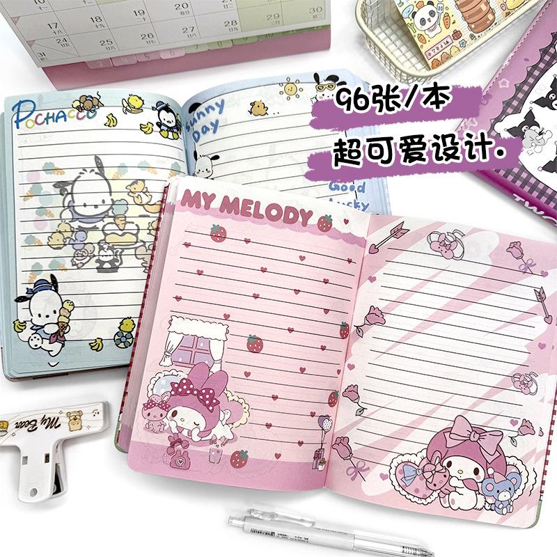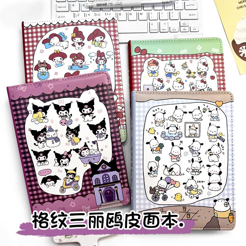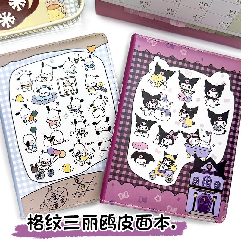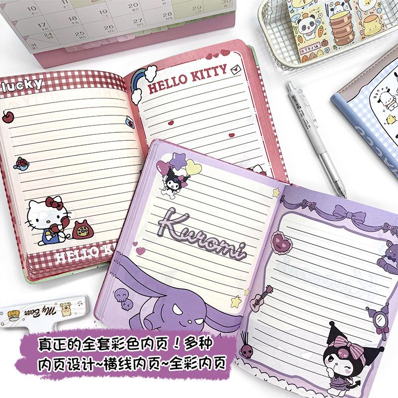 Cuaderno A5 de cuero de la serie Sanrio, página a todo color, libro de mano para estudiantes, cuaderno de alto valor cromático, libro de rayas horizontales de dibujos animados