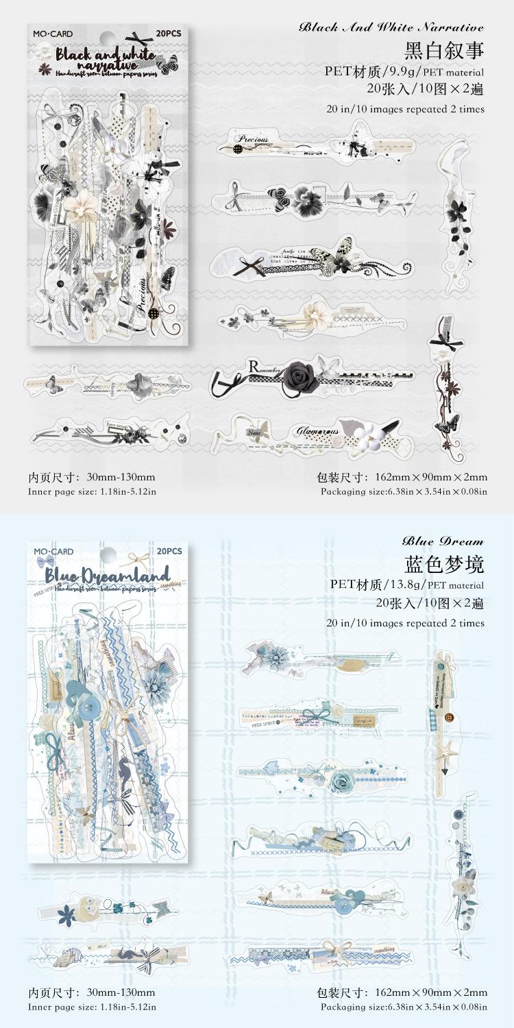Mo Mo Tira Larga Paquete de Calcomanías Collage para Mascotas Papel Hecho a Mano Serie Estudio Retro Material Impermeable Manualidad Decoración DIY