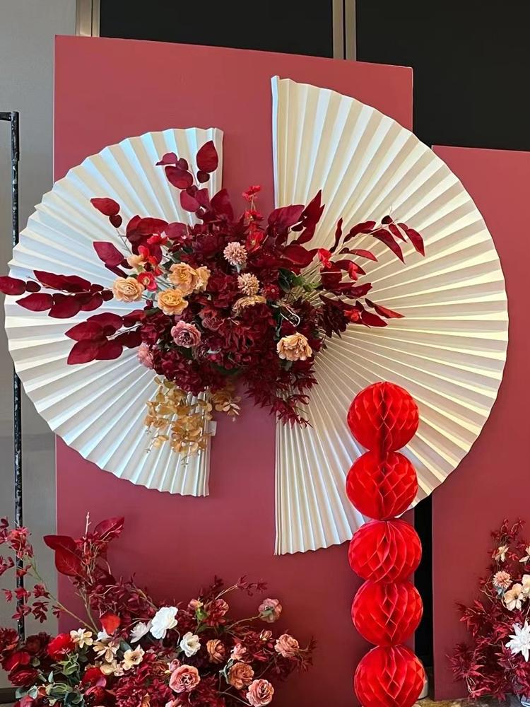 Abanico de Origami para Boda Nuevo Estilo Chino Decoración de Fondo para Banquete de Compromiso Abanico Plegable Nicho Diseño de Escena de Boda Abanico de Papel Flor