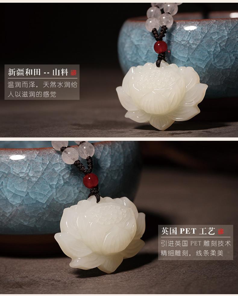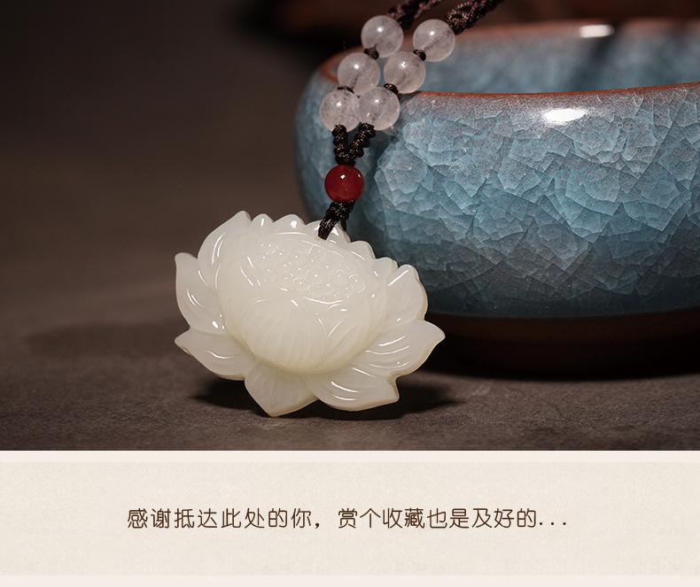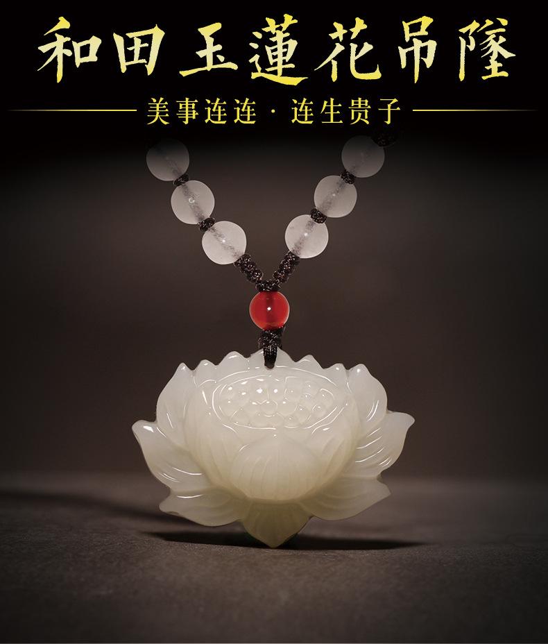 Colgante de Loto de Jade Hetian de Xinjiang para Hombre y Mujer Colgante de Jade Collar de Loto Amuleto de la Suerte Vaina de Semilla de Loto Joyería de Jade