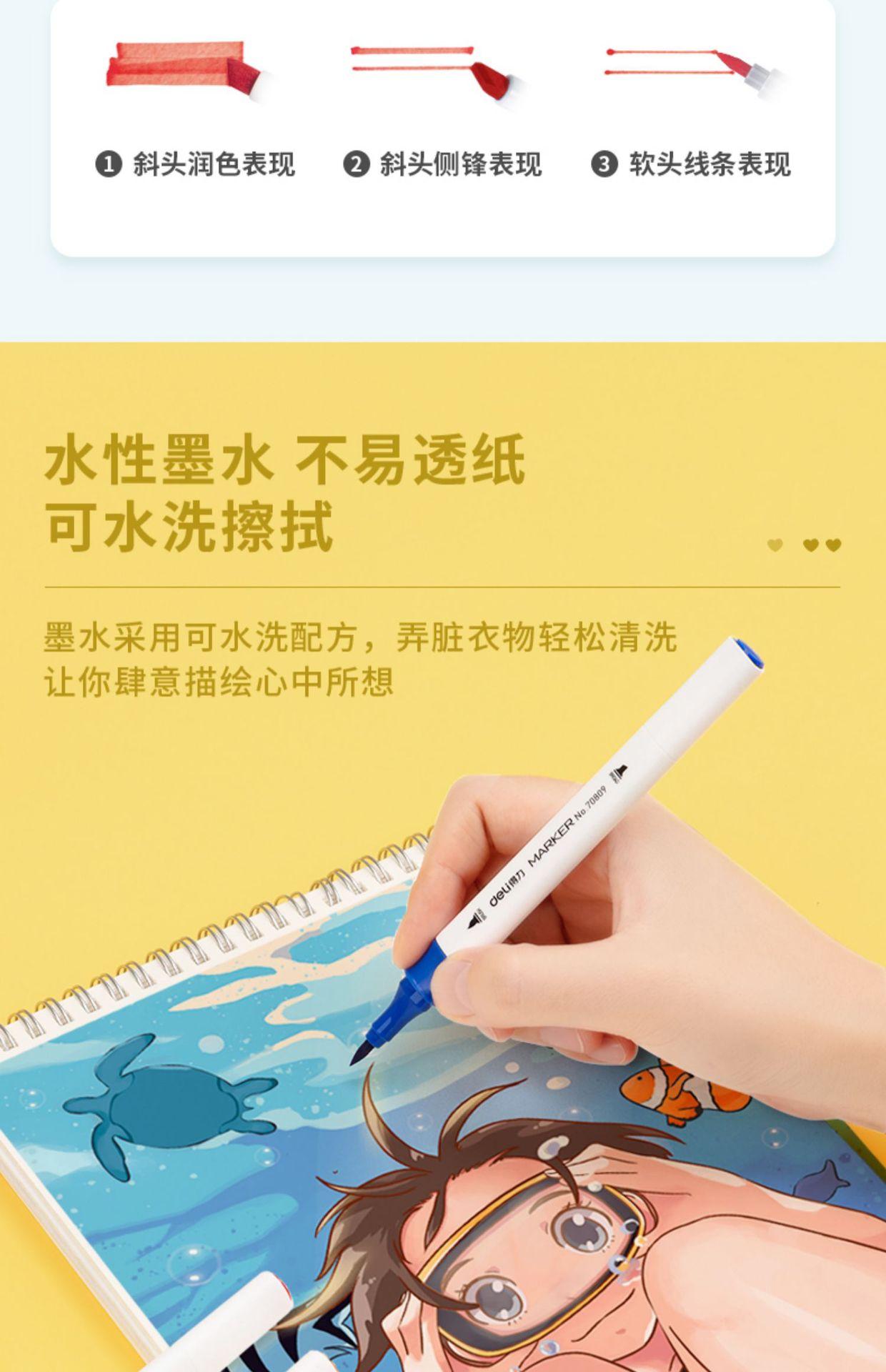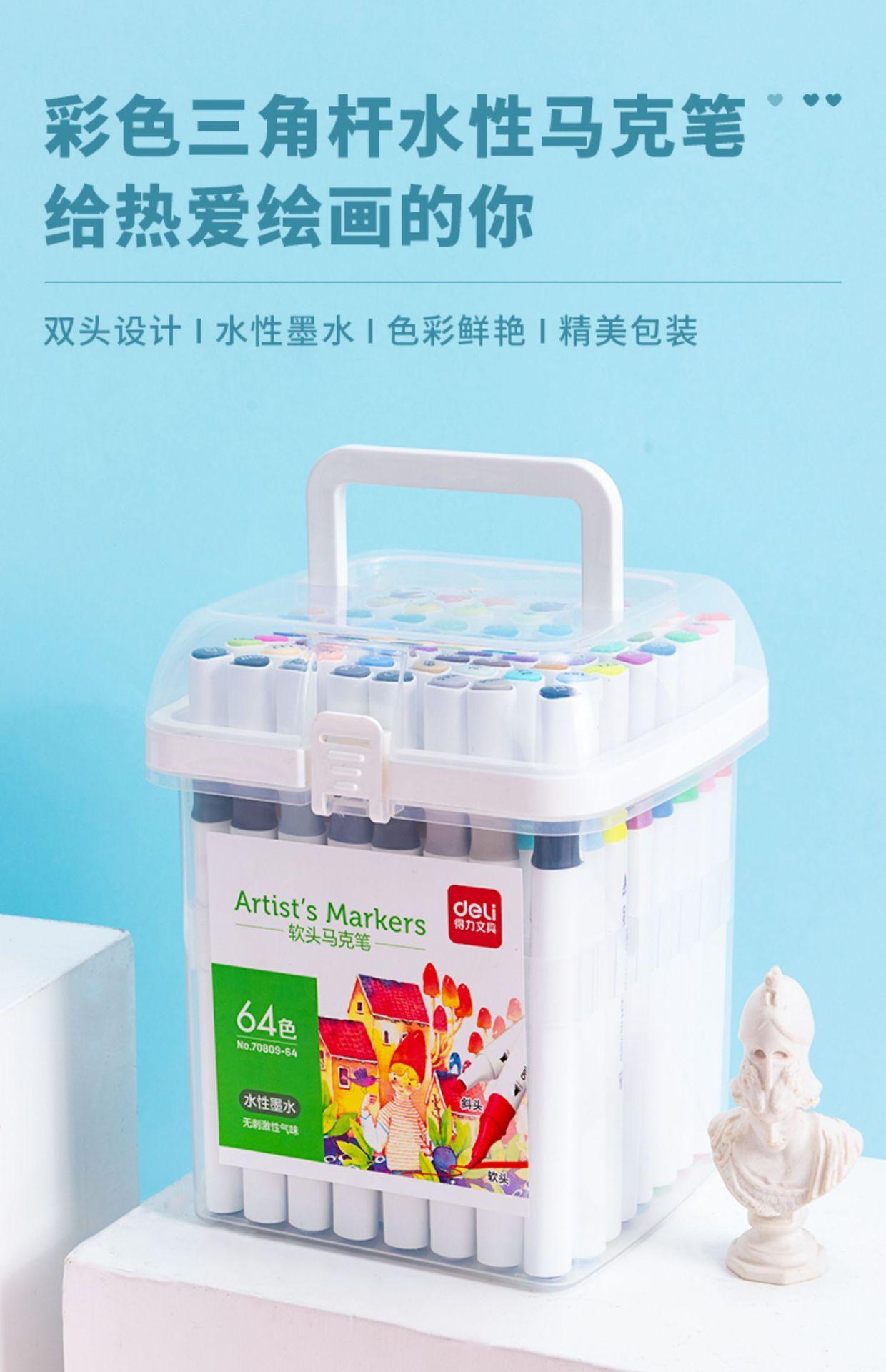 Deli 70809 Set de Marcadores de Agua Doble Punta 48 Colores 24 Colores Lavables Pluma Acuarela para Pintura Artística Infantil