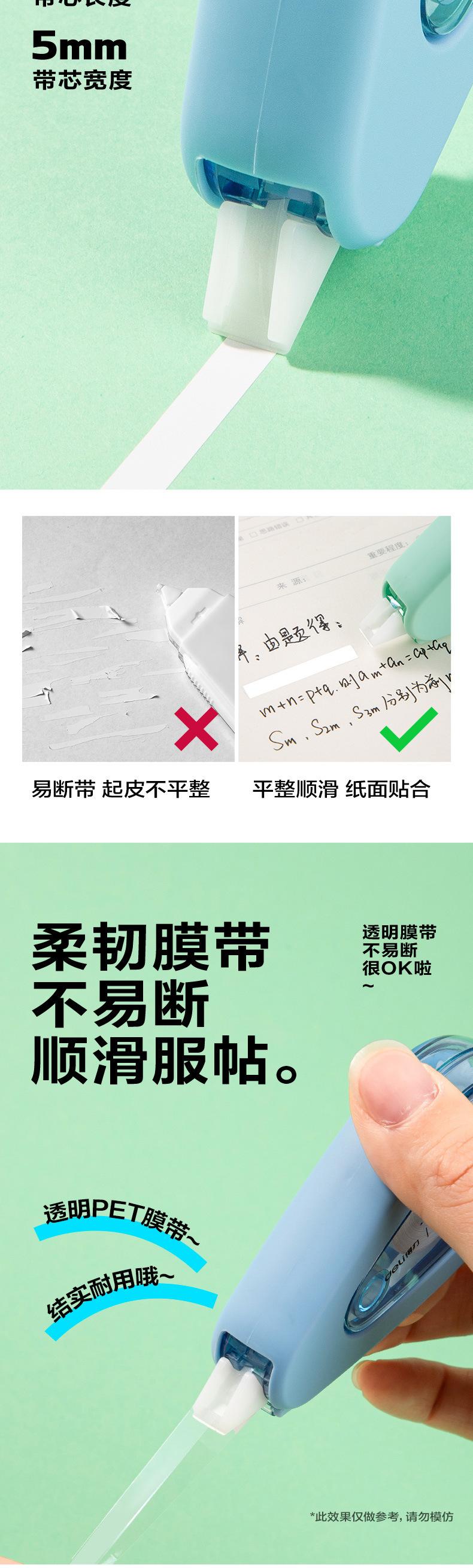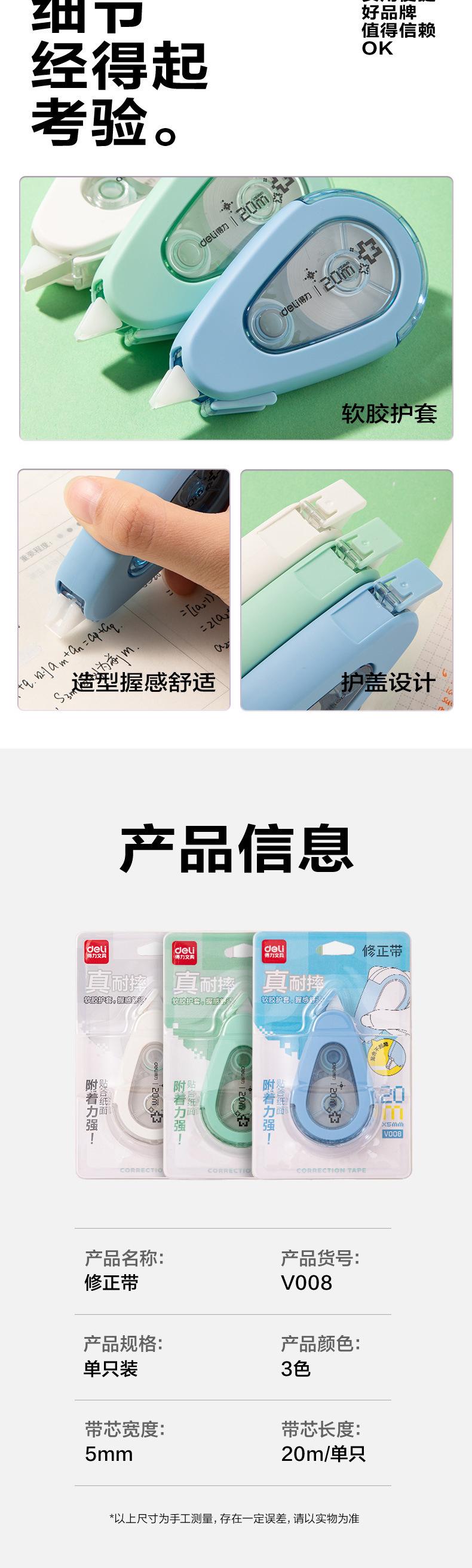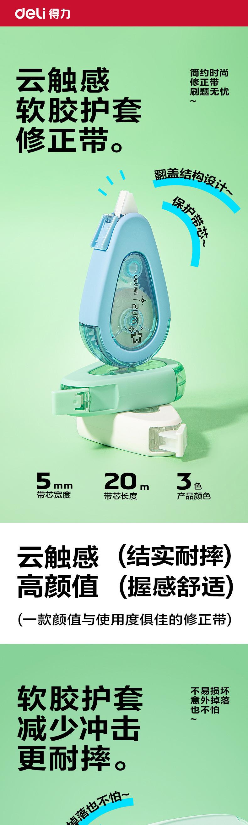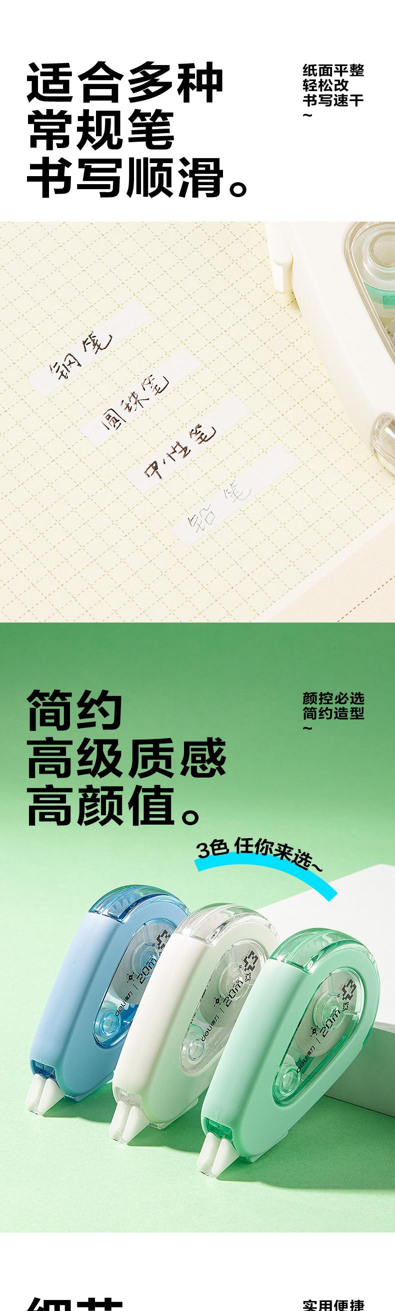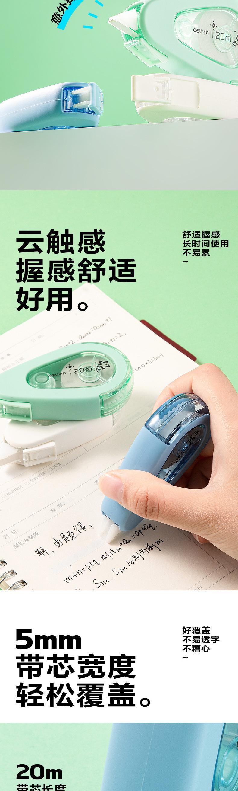 Cinta correctora Deli 5mm * 20m estudiante gran capacidad cinta correctora cinta correctora fresca alto valor de color cinta correctora