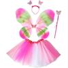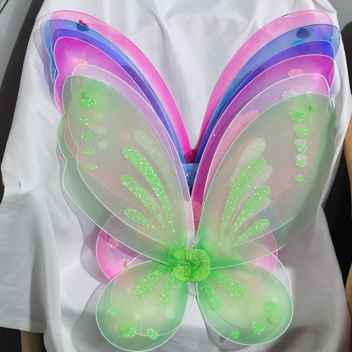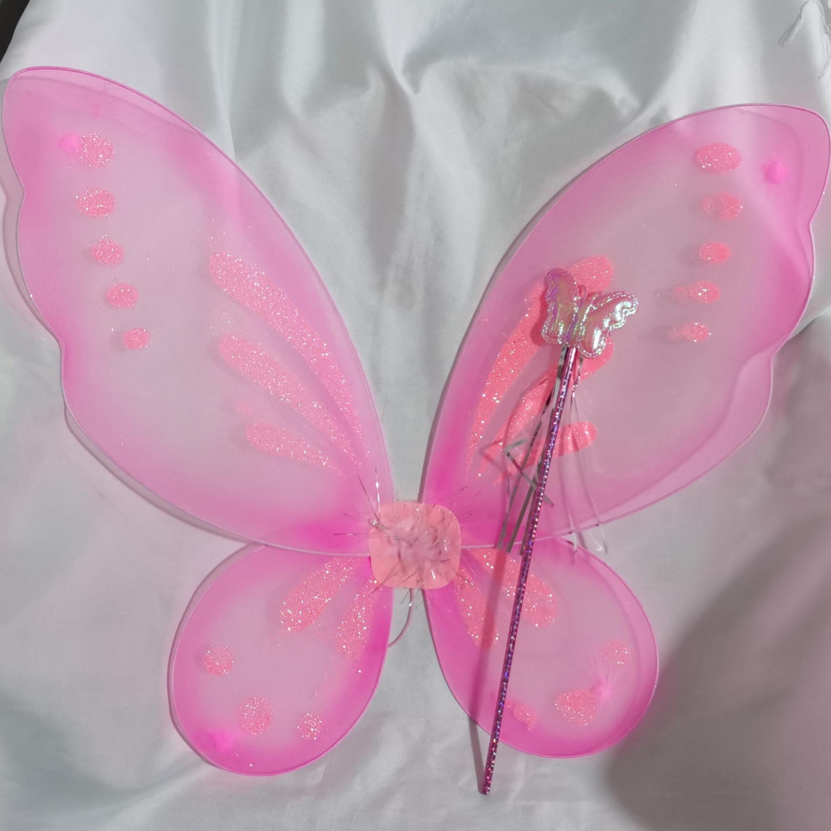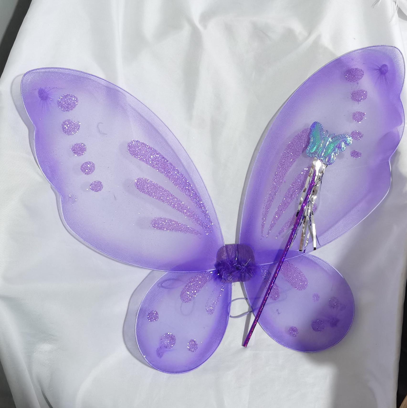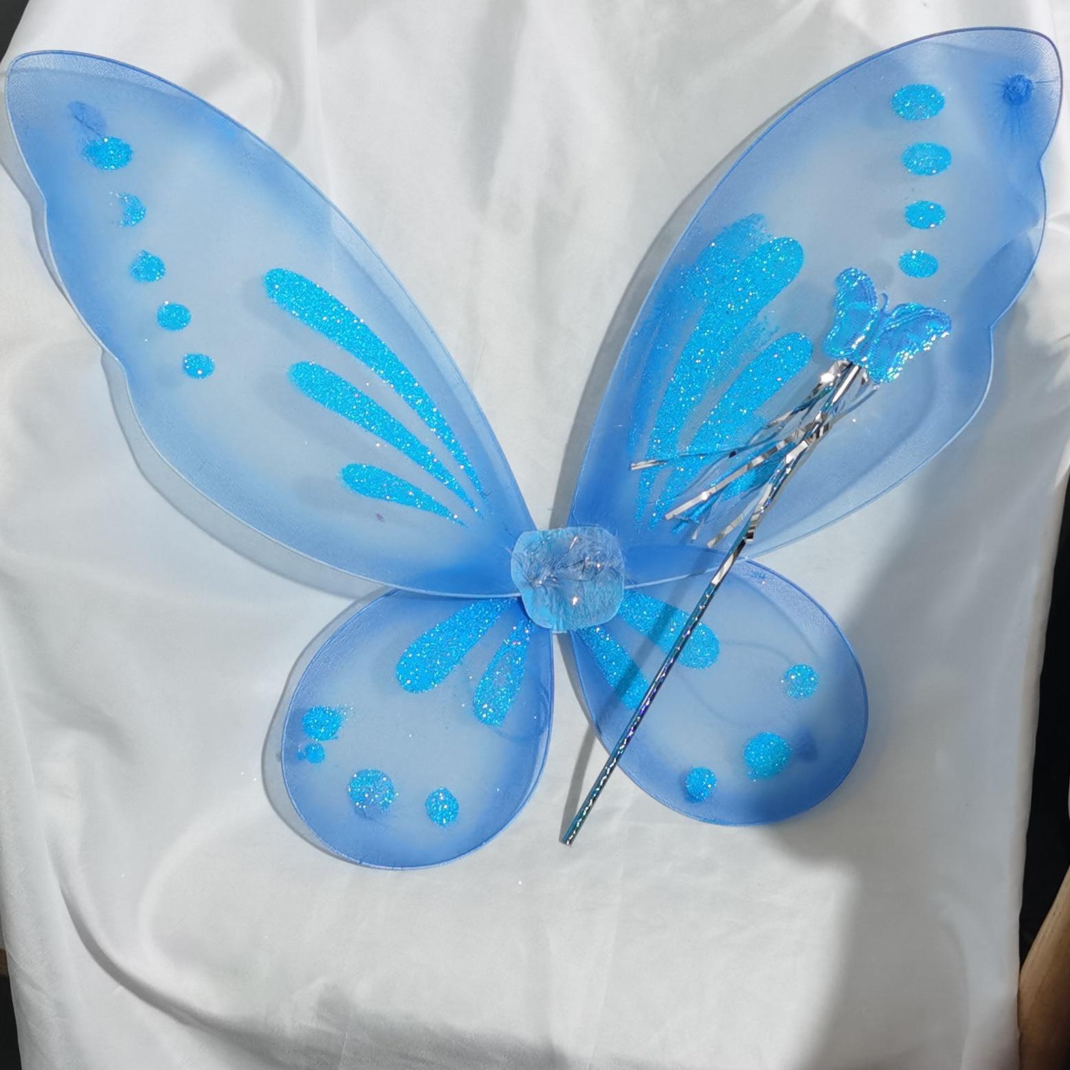 Nuevas Alas de Mariposa para Niños Decoración de Espalda Accesorios para Disfraz de Escenario Alas de Mariposa Varita de Hada 2 Varitas Femeninas