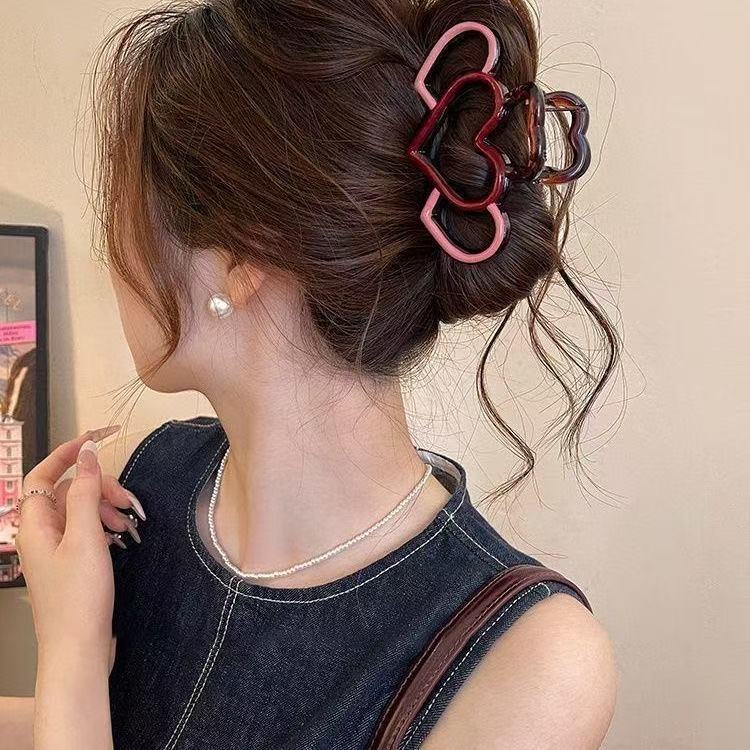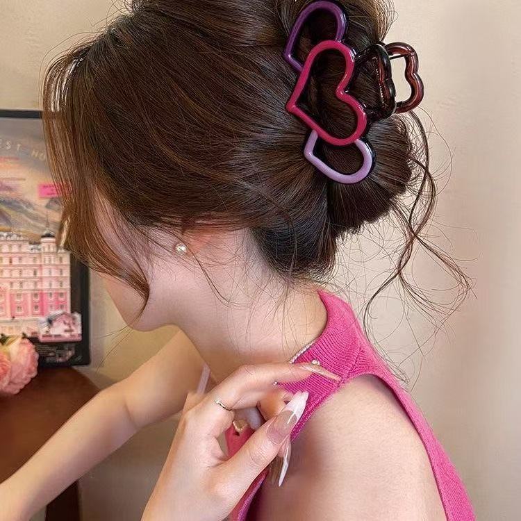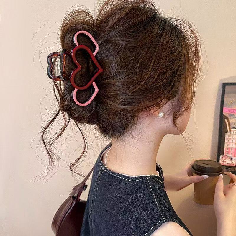 Temperamento Amor Bloque de Color Pinza de Garra Mujer 2025 Nuevo Estilo Gran Volumen de Cabello Pinza Tiburón de Alta Gama Recogido Parte Trasera de la Cabeza Accesorios para el Cabello