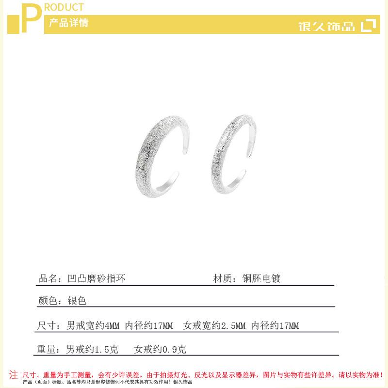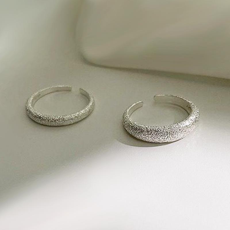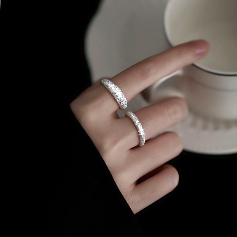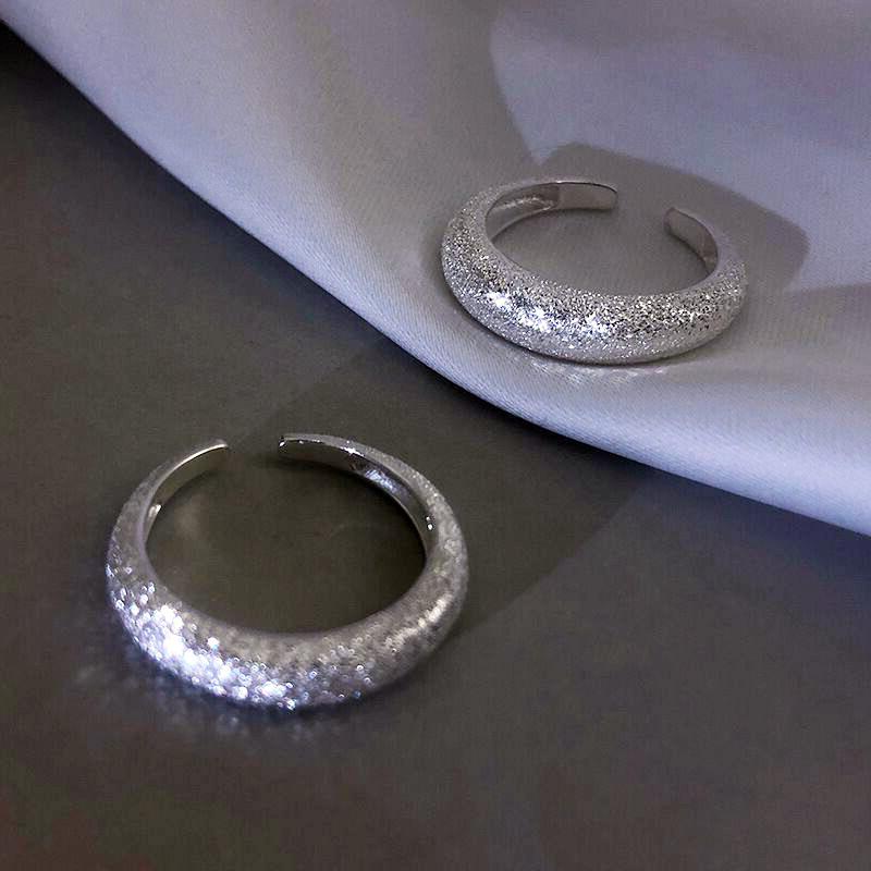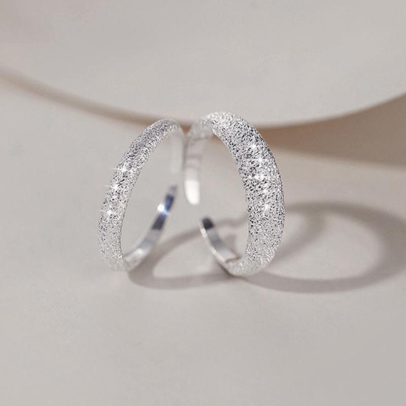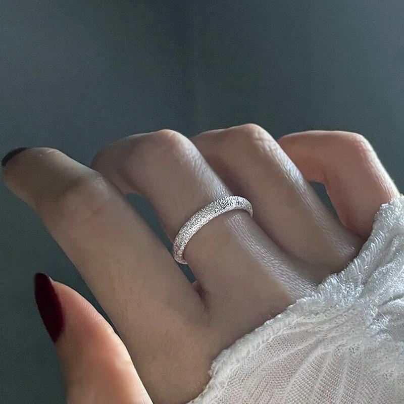 Anillo de pareja simple cóncavo-convexo esmerilado plateado de alta calidad para combinar con todo, anillo abierto de río de estrellas brillantes