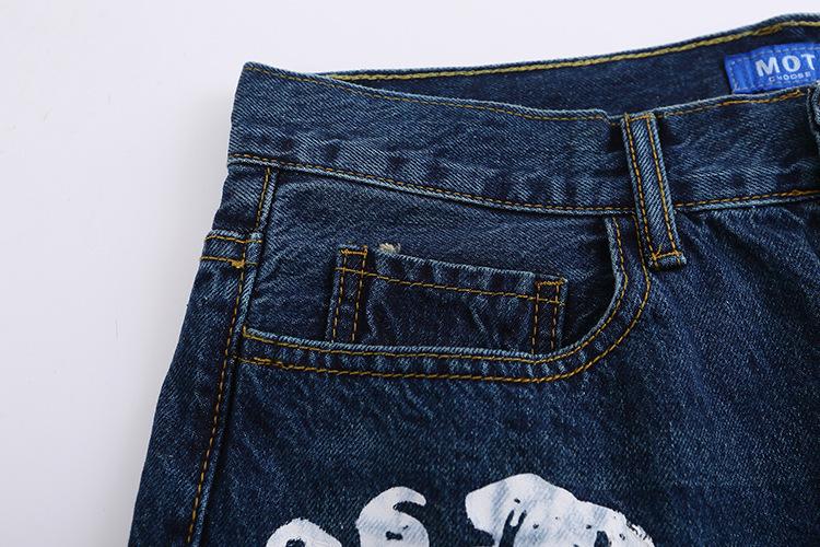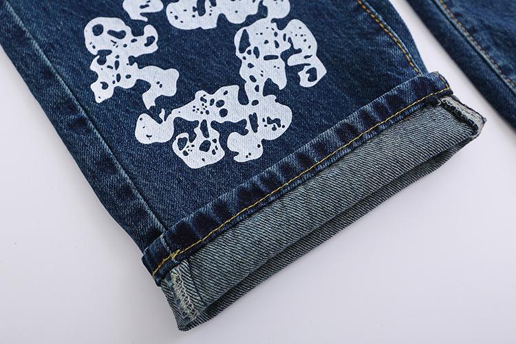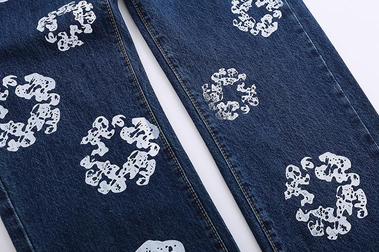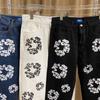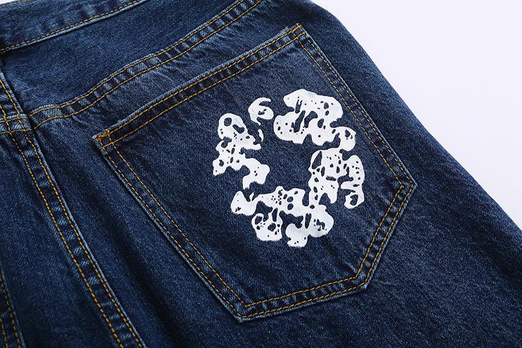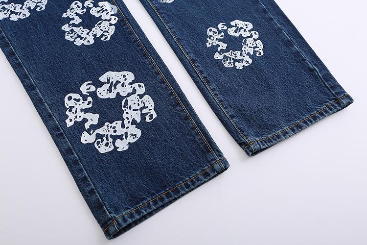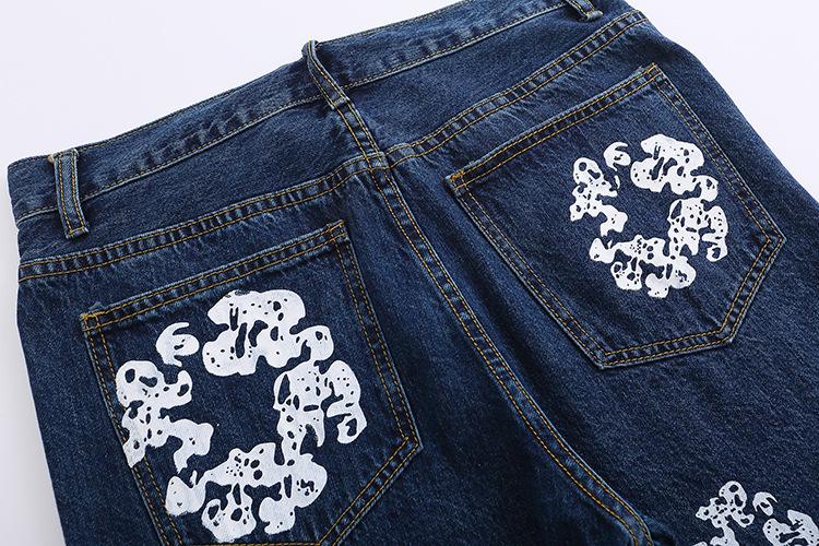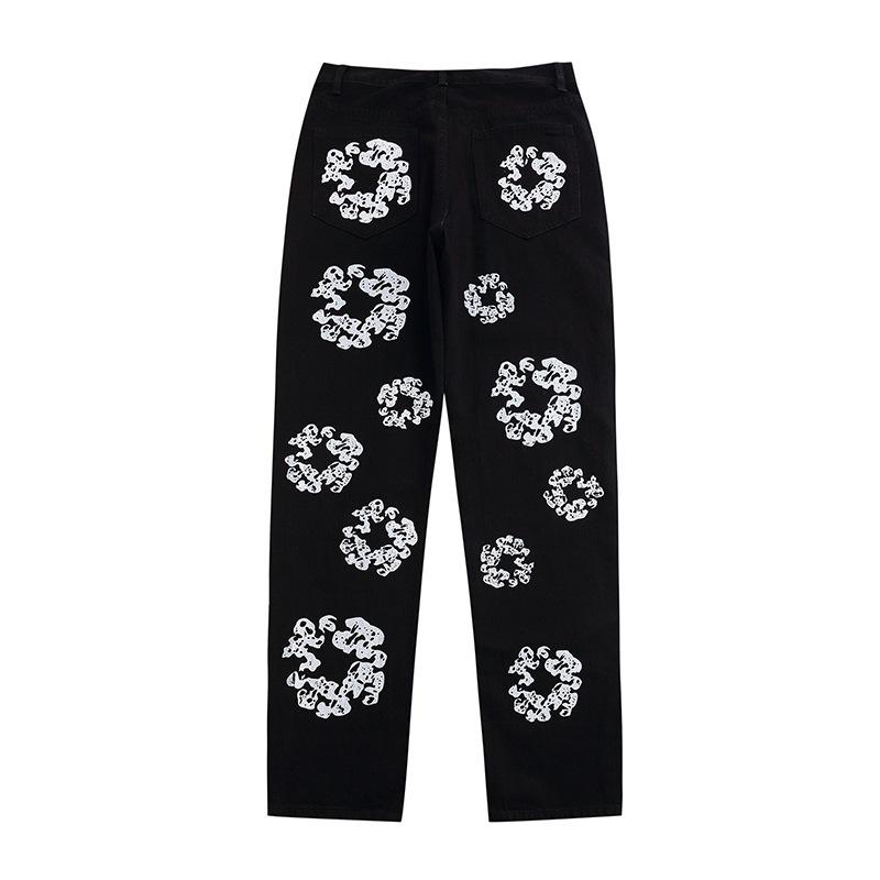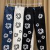 Otoño 2023 Nuevo Estilo Americano High Street Jeans con Estampado de Flores Hombres y Mujeres Look Delgado Pantalones Casuales