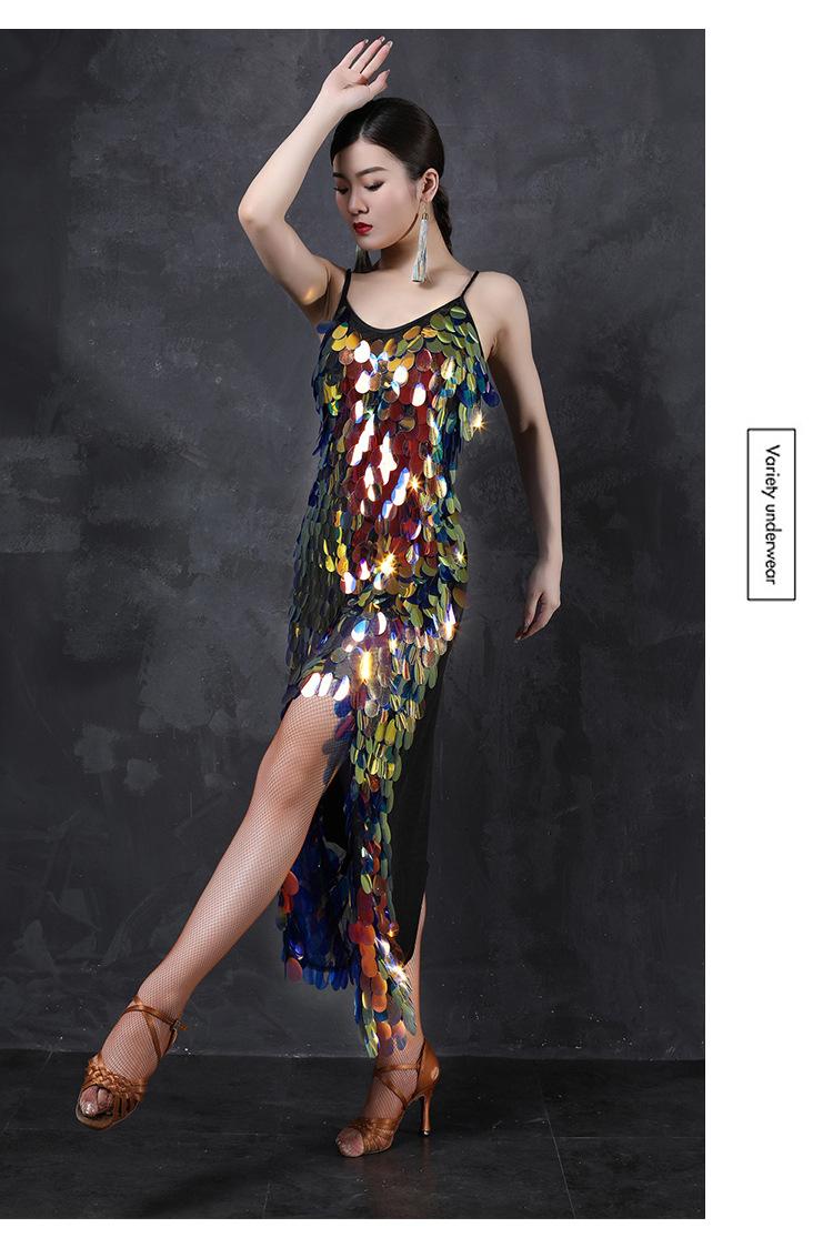 Traje de vestido de baile latino transfronterizo europeo y americano ropa de actuación sexy traje de ropa de baile con lentejuelas ropa de actuación de una pieza