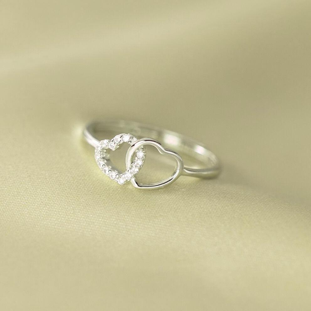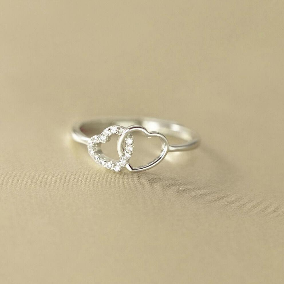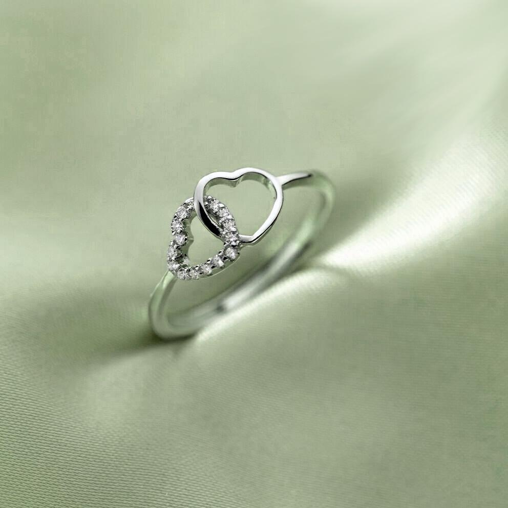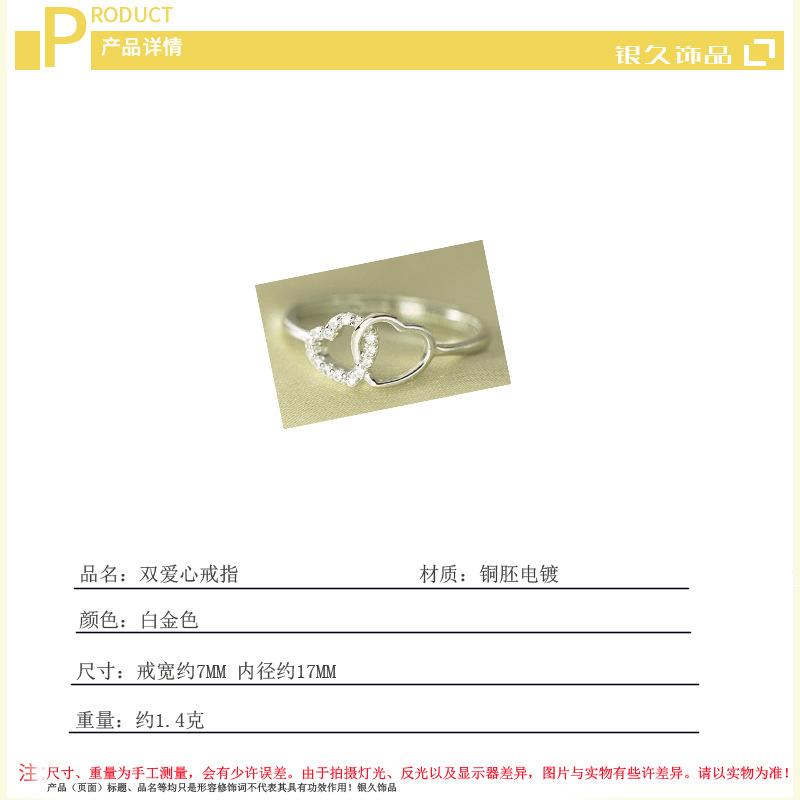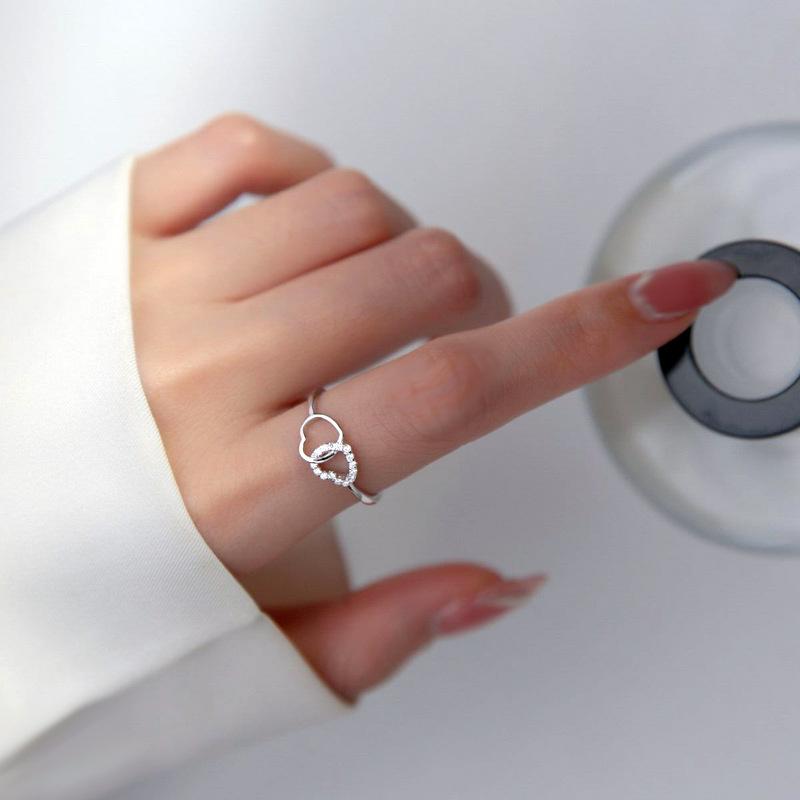 Anillo Coreano Dulce Viento Fresco Diseño de Moda Diamante Romántico Doble Amor Apertura Dedo Índice Anillo Pulsera Venta al por Mayor