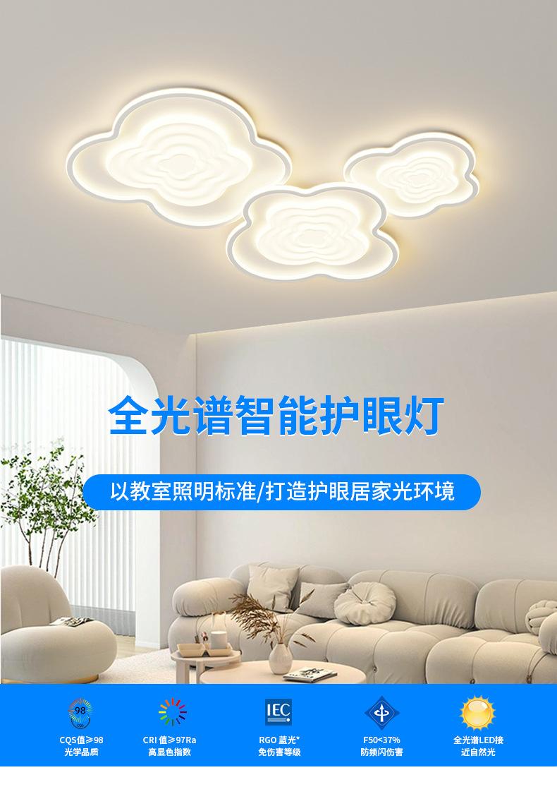 Lámpara de Techo Minimalista de Lujo Ligero para Sala de Estar, Moderna Sencilla de Espectro Completo Estilo Crema Combinación Paquete Casa Completa Lámpara Creativa para Dormitorio