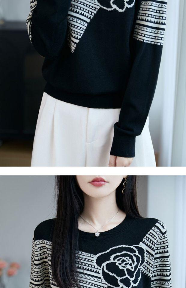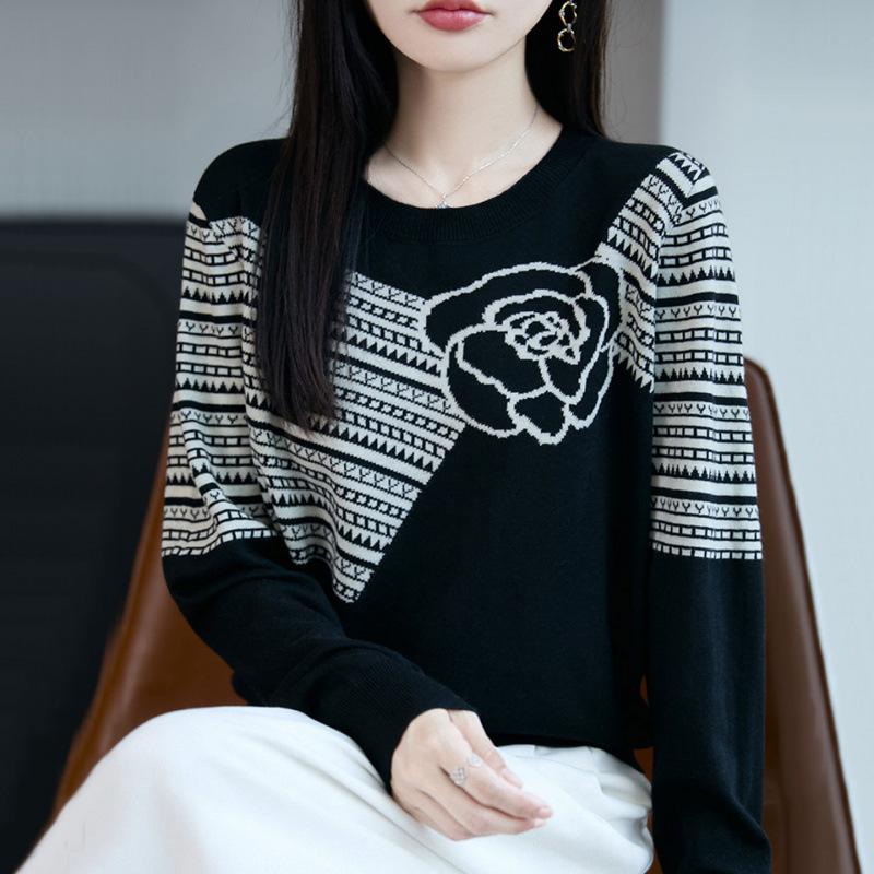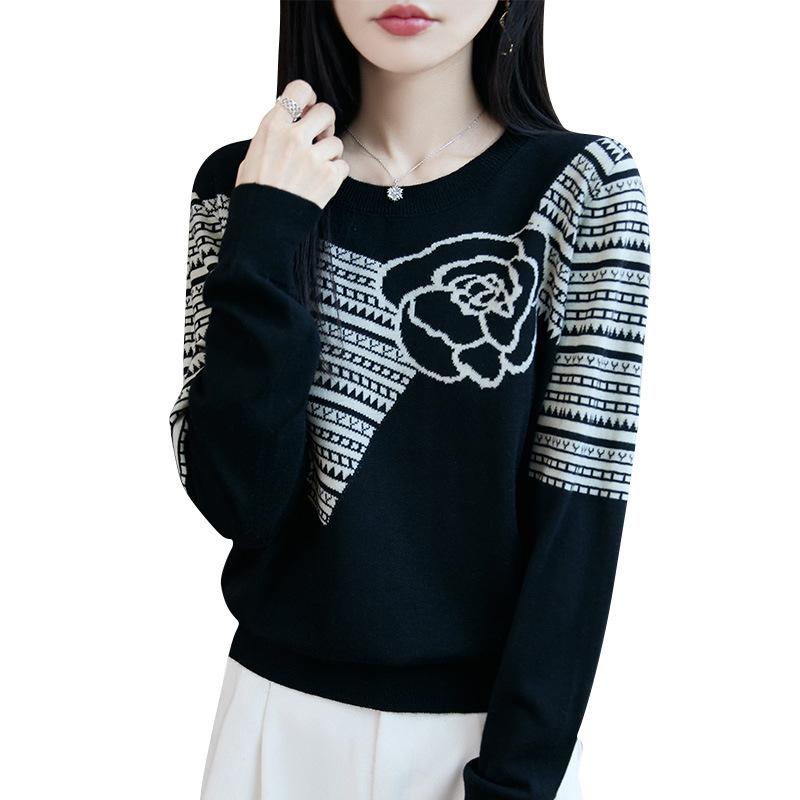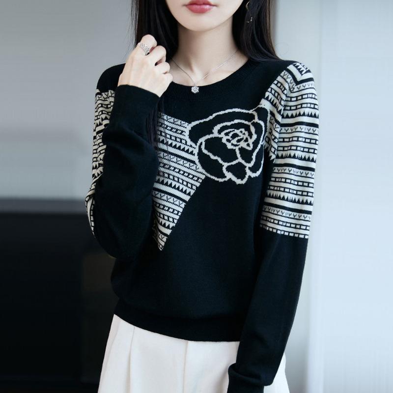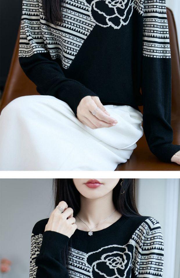 Suéter de Punto Jacquard Holgado Versátil de Moda Otoño 2025 para Mujer, Ropa Exterior Holgada Reductora de Edad, Camiseta Básica de Tendencia