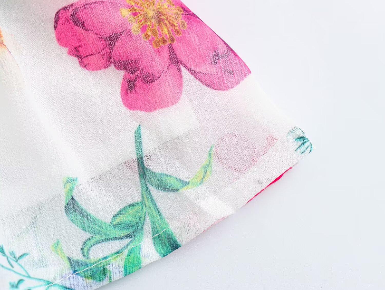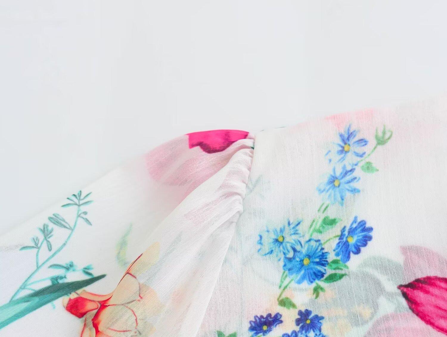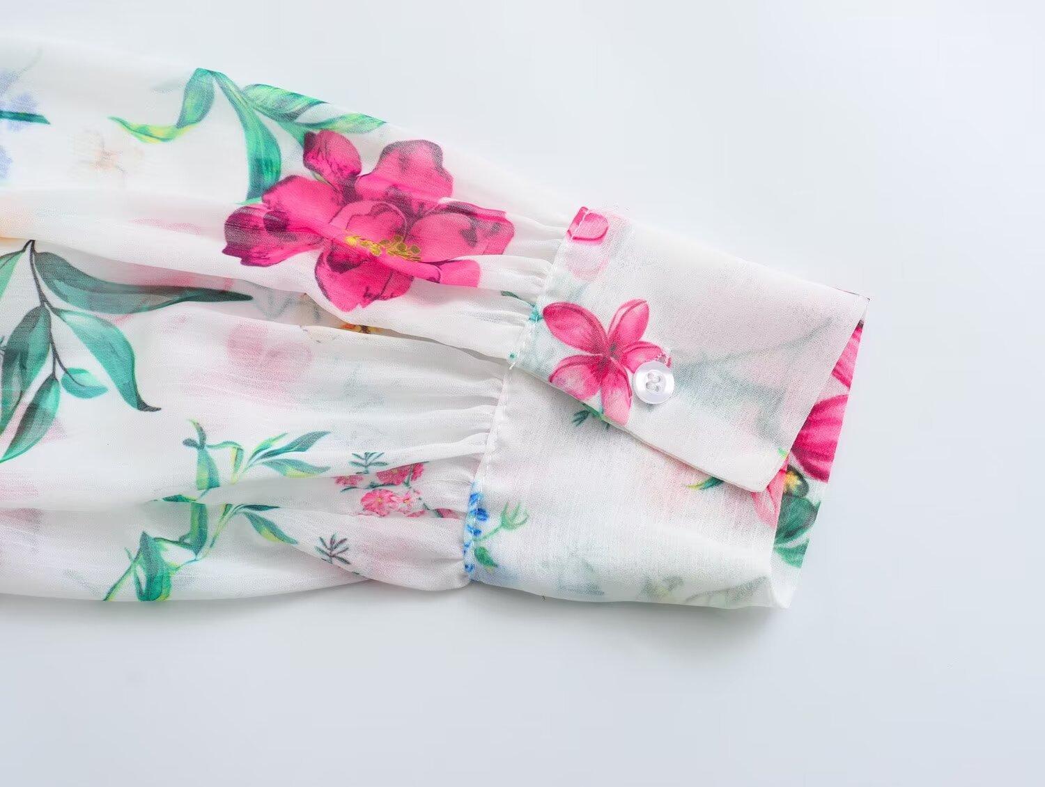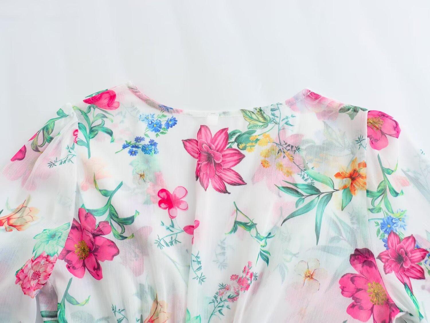 Venta al por mayor 2024 primavera nuevo estilo europeo y americano vestido de pastel escalonado de chifón con estampado de flores de manga larga para mujer