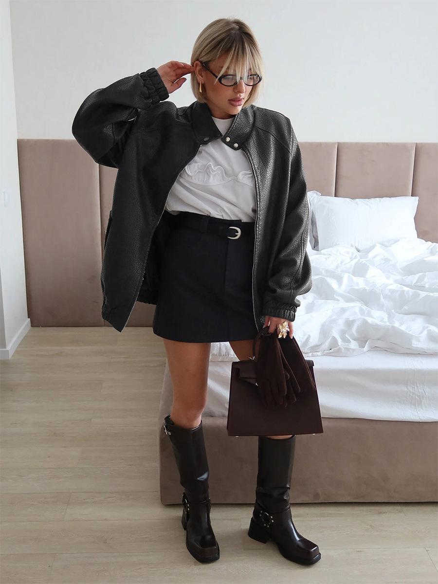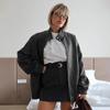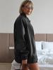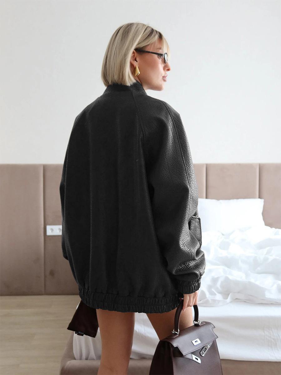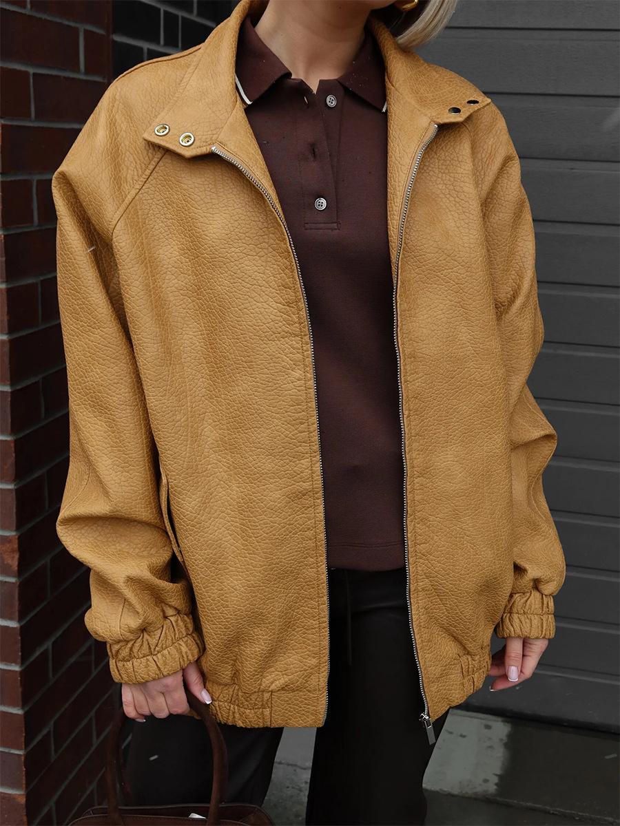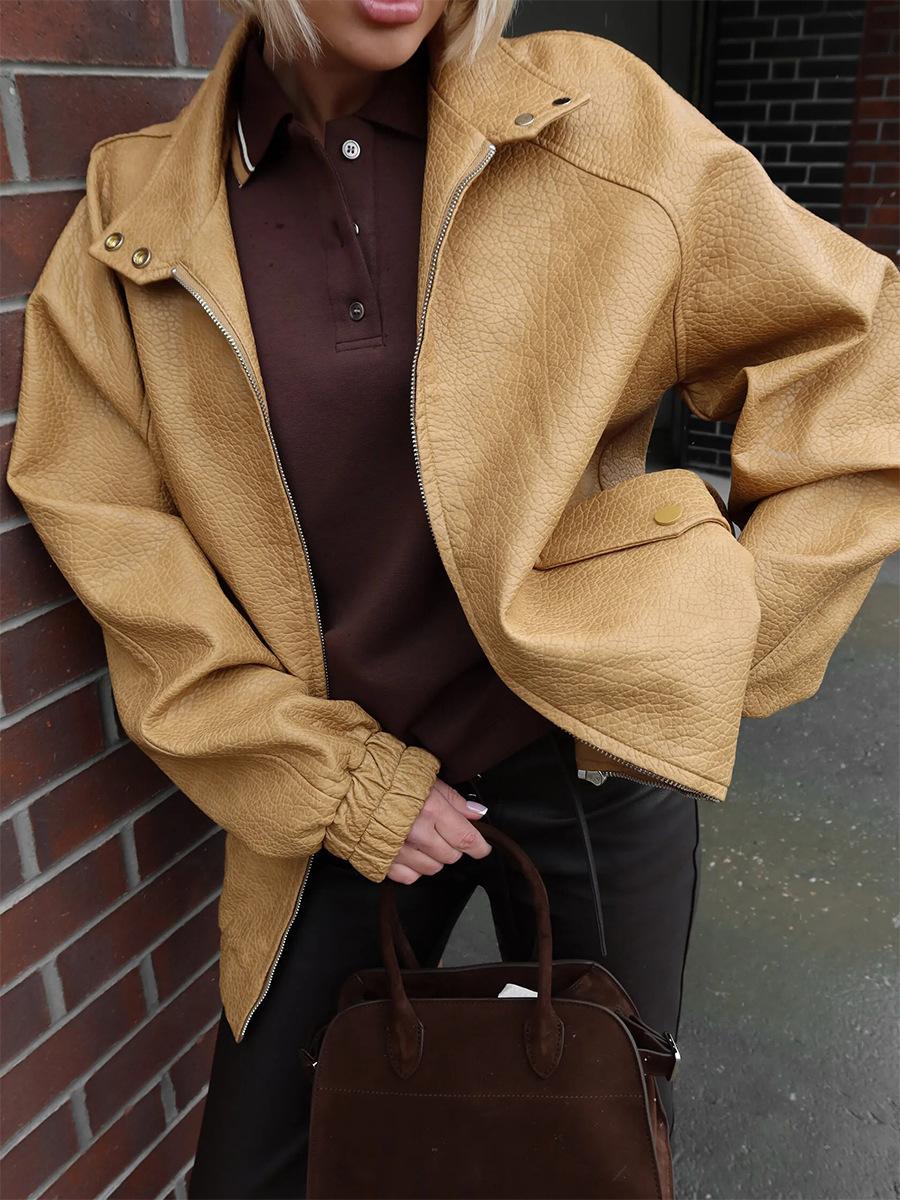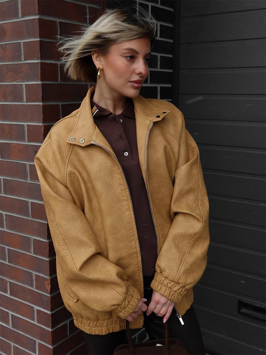 Abrigo de Chaqueta de Cuero Suelto Transfronterizo Europeo y Americano Otoño 2025 Cuello Alto Cremallera Chaqueta de Cuero Versátil Chaqueta de Cuero PU Texturizado Mujer