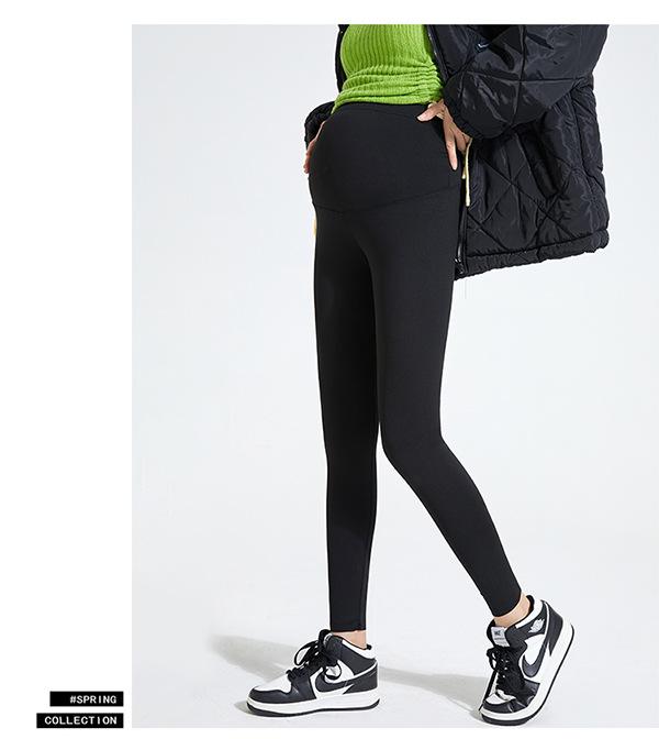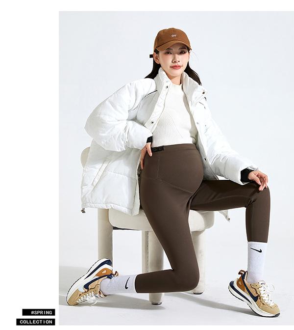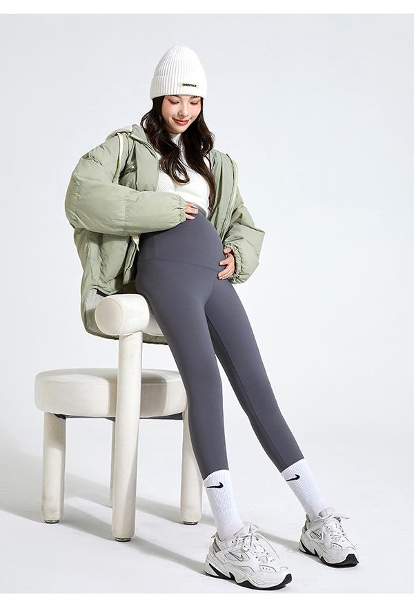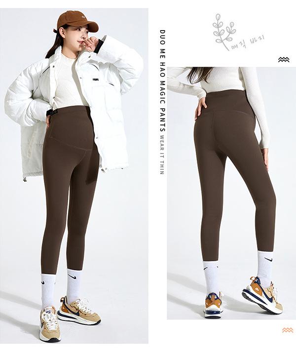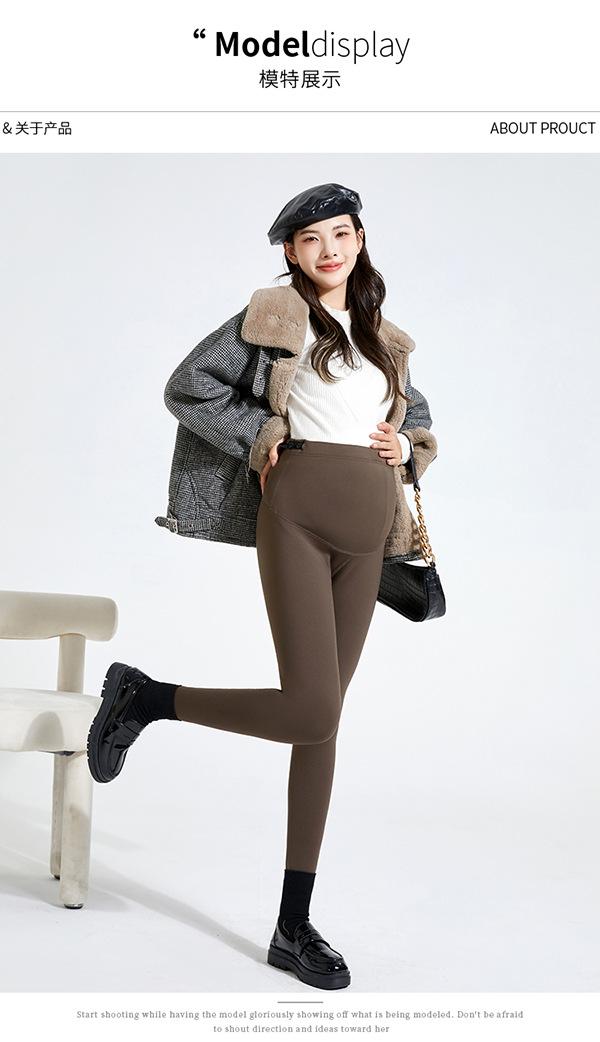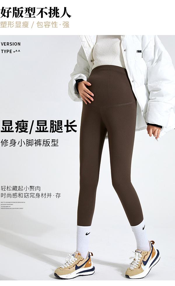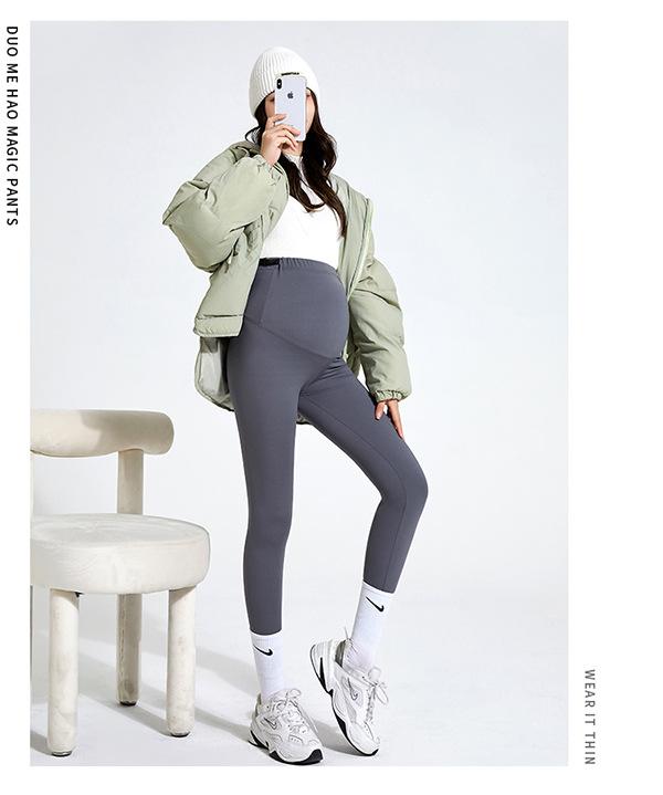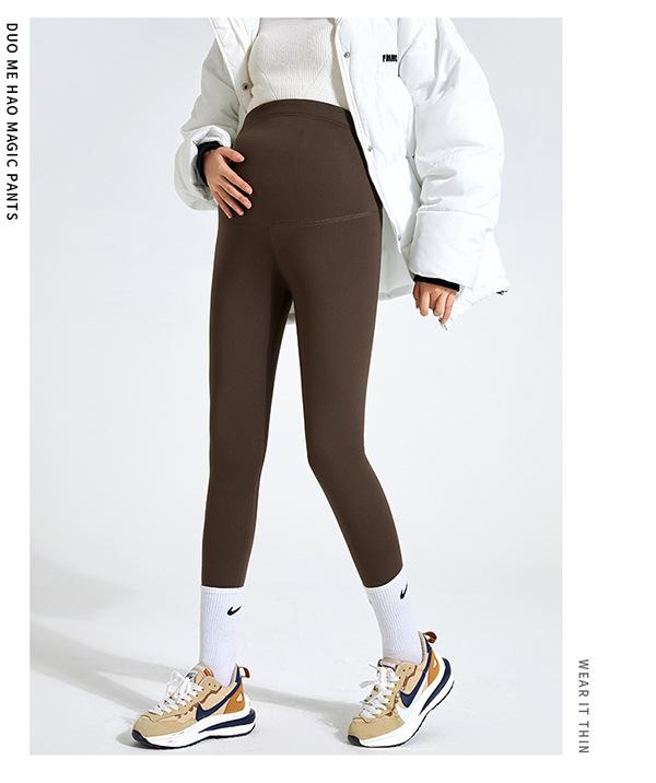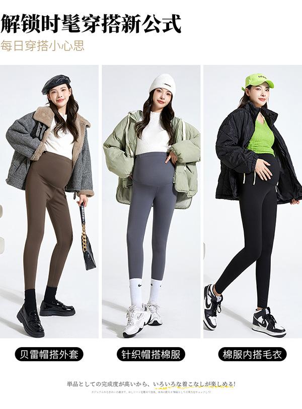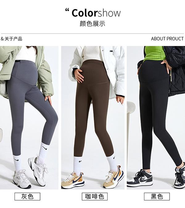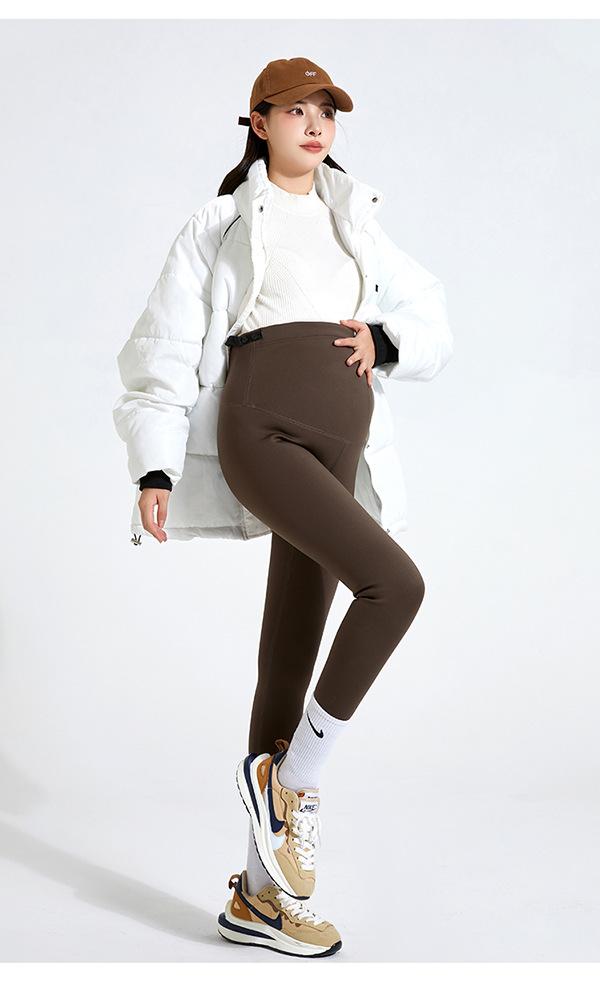 Leggings para Mujeres Embarazadas Otoño e Invierno Ropa Exterior con Forro Polar Engrosado Pantalones de Yoga Elásticos Adelgazantes Versátiles Pantalones Tiburón