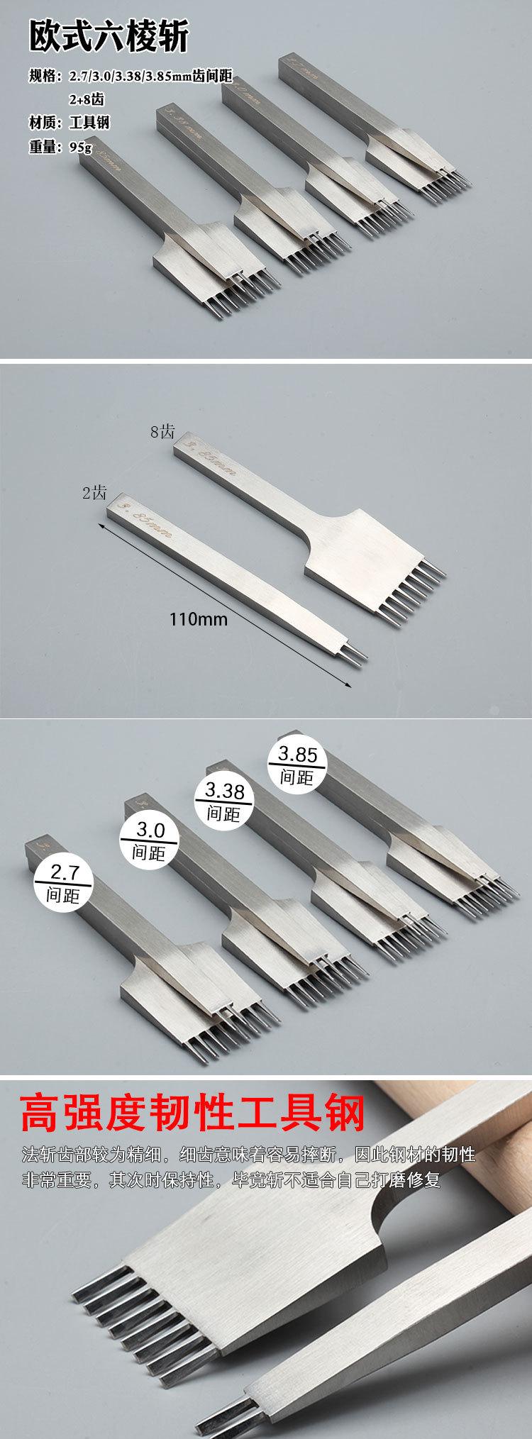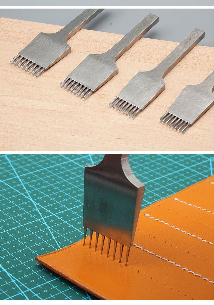 Herramienta de perforación de cuero profesional de puntada hecha a mano para cuero de corte de seis diamantes de diente estrecho de bricolaje de cuero de estilo europeo de corte plano oblicuo
