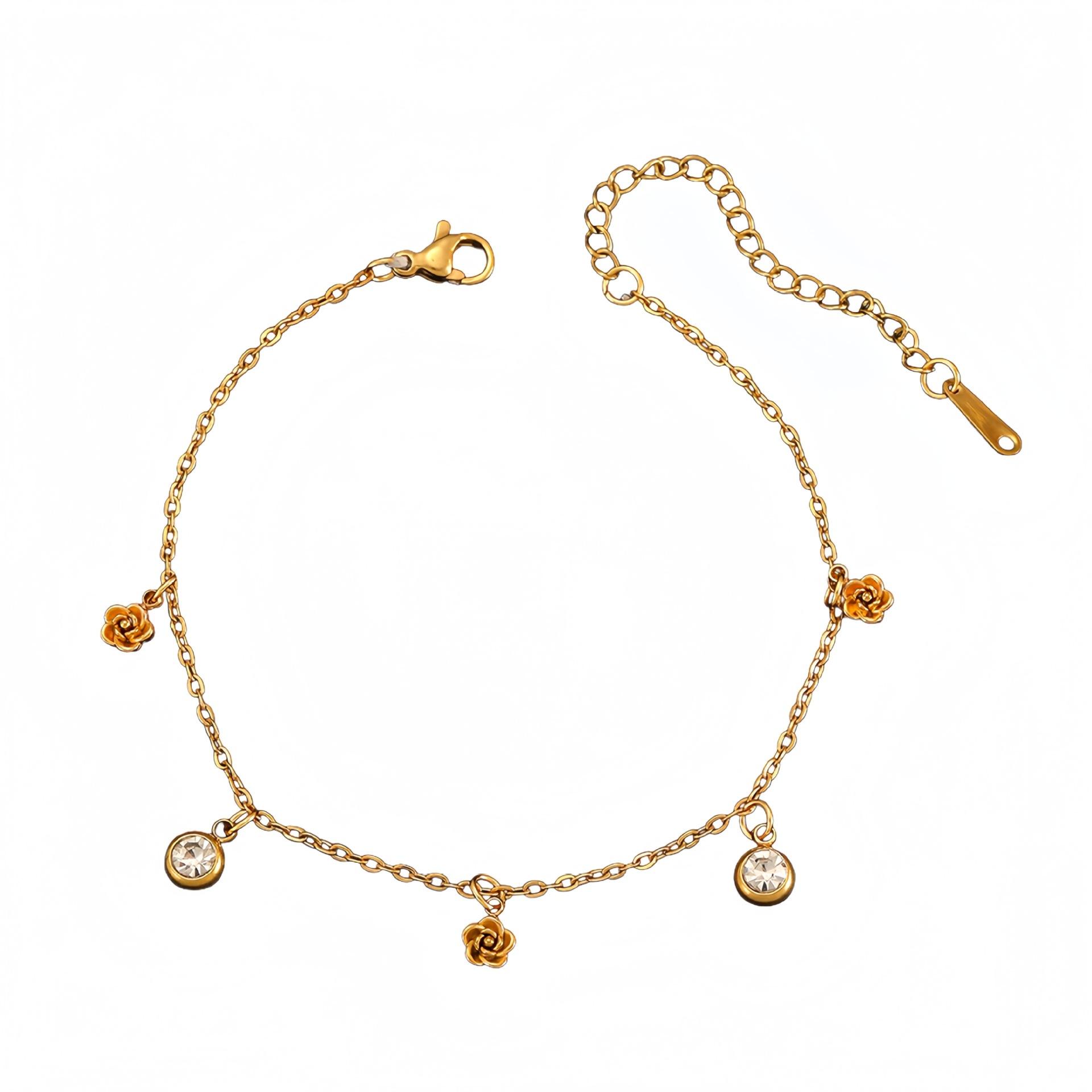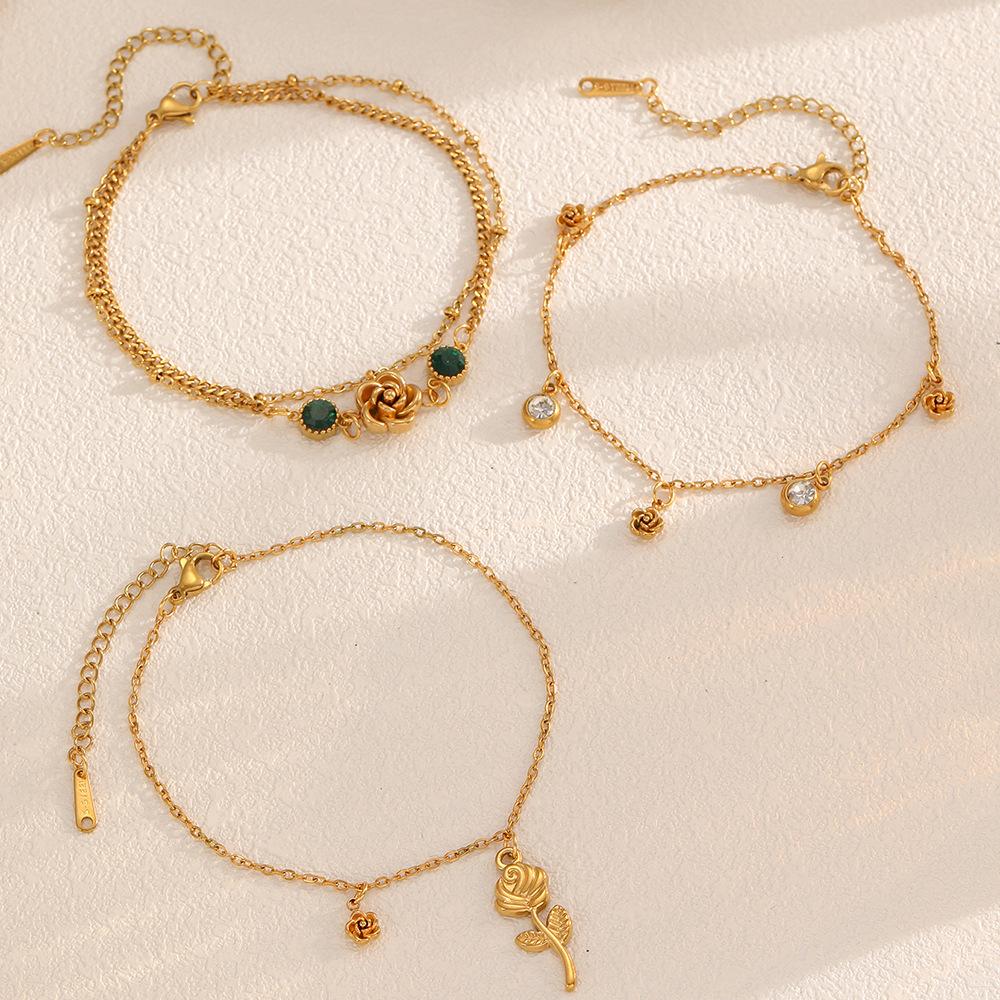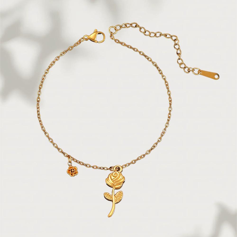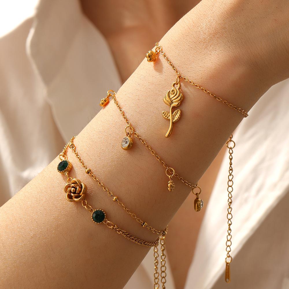 Pulsera transfronteriza europea y americana de acero inoxidable, acero de titanio, colgante de rosa, joyería para mujer, incrustada con diamantes, joyería de oro que no se decolora