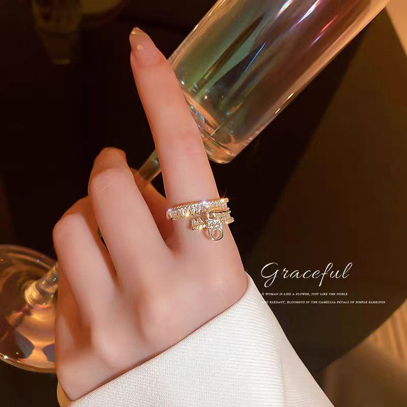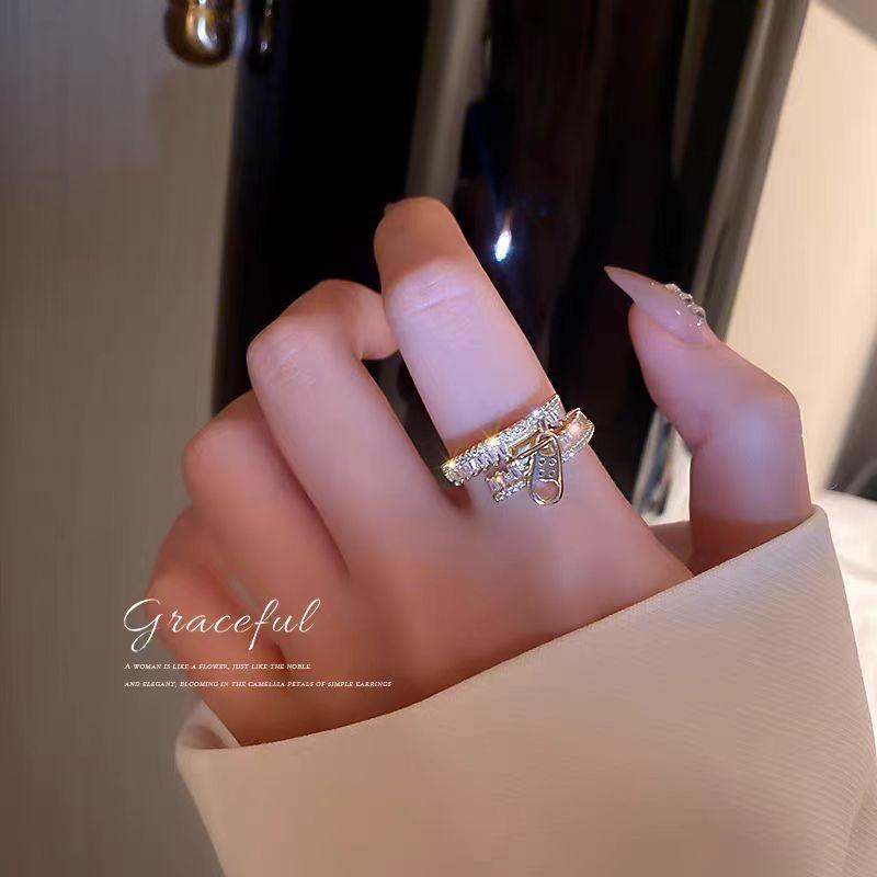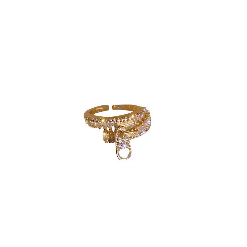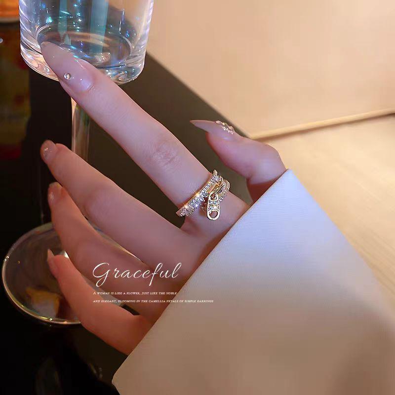 Anillo de Alta Gama con Incrustaciones de Diamantes con Cierre de Cremallera para Mujer, Abertura de Diseño Nicho, Anillo Ajustable, Anillo de Moda Personalizado Japonés y Coreano