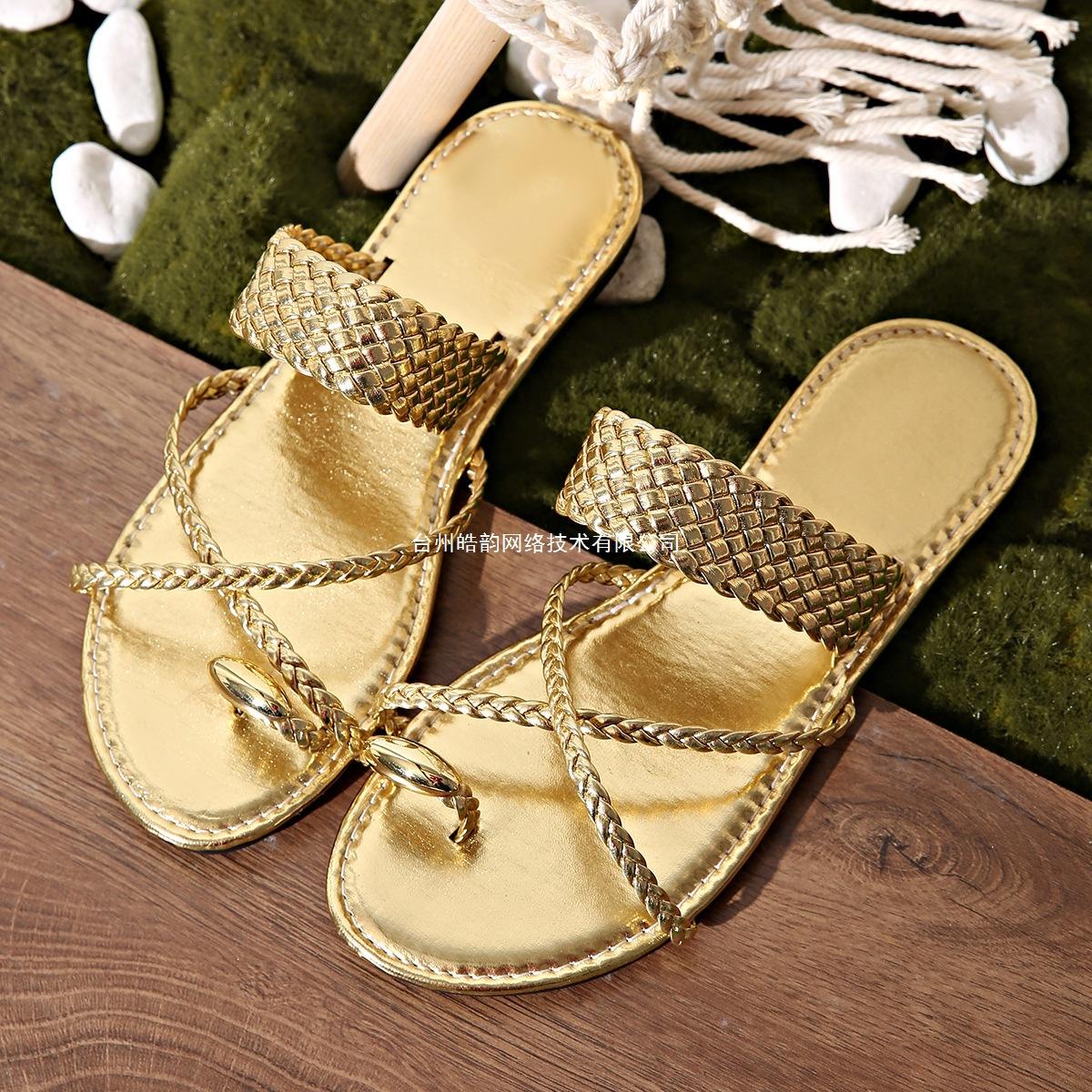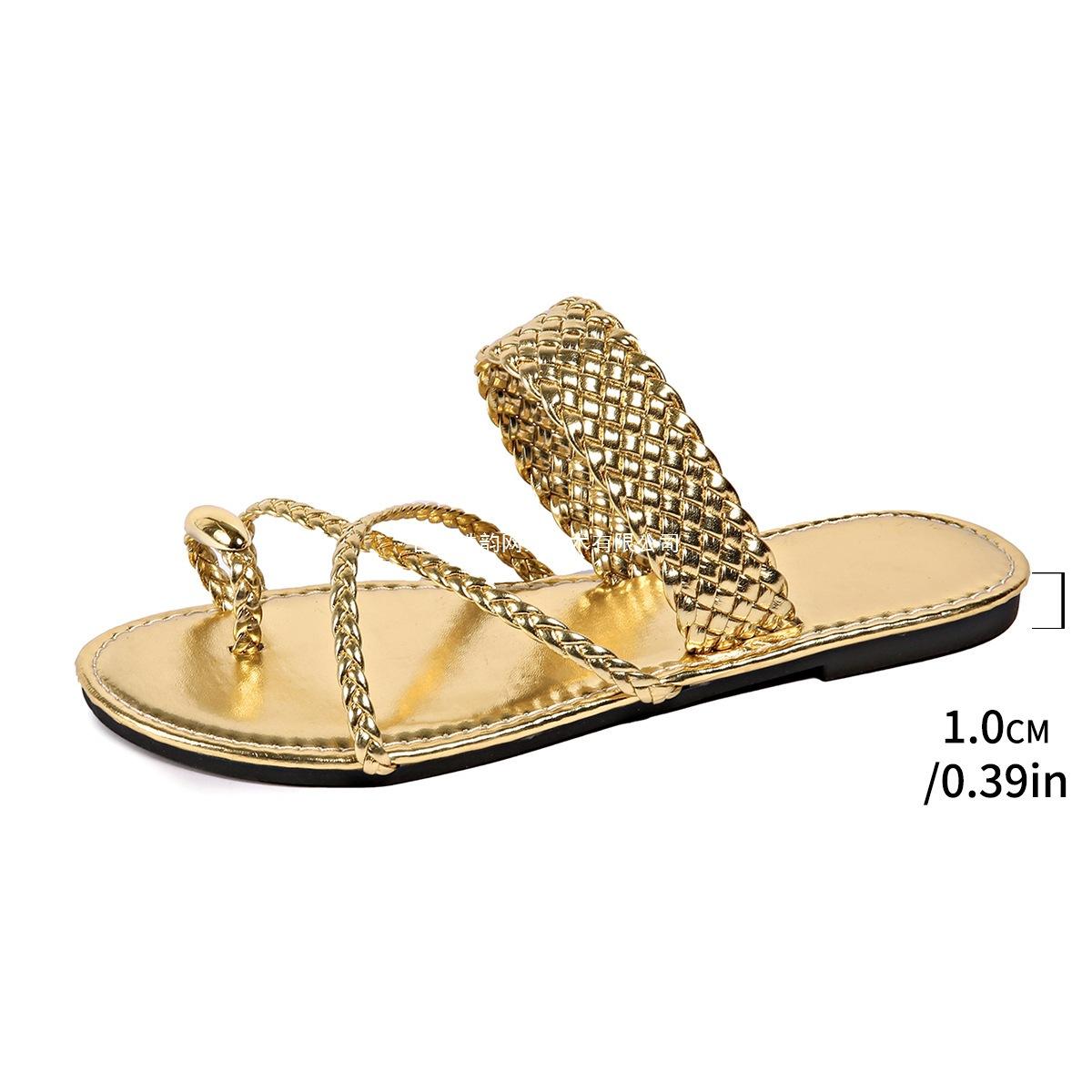 Comercio Exterior Zapatos de Mujer de Talla Grande Europeos y Americanos Zapatillas Planas Zapatillas de Mujer Simples de Tiras Tejidas Ligeras Sandalias de Playa Zapatillas