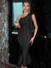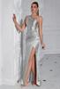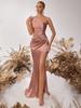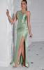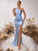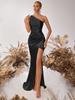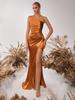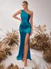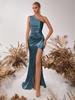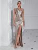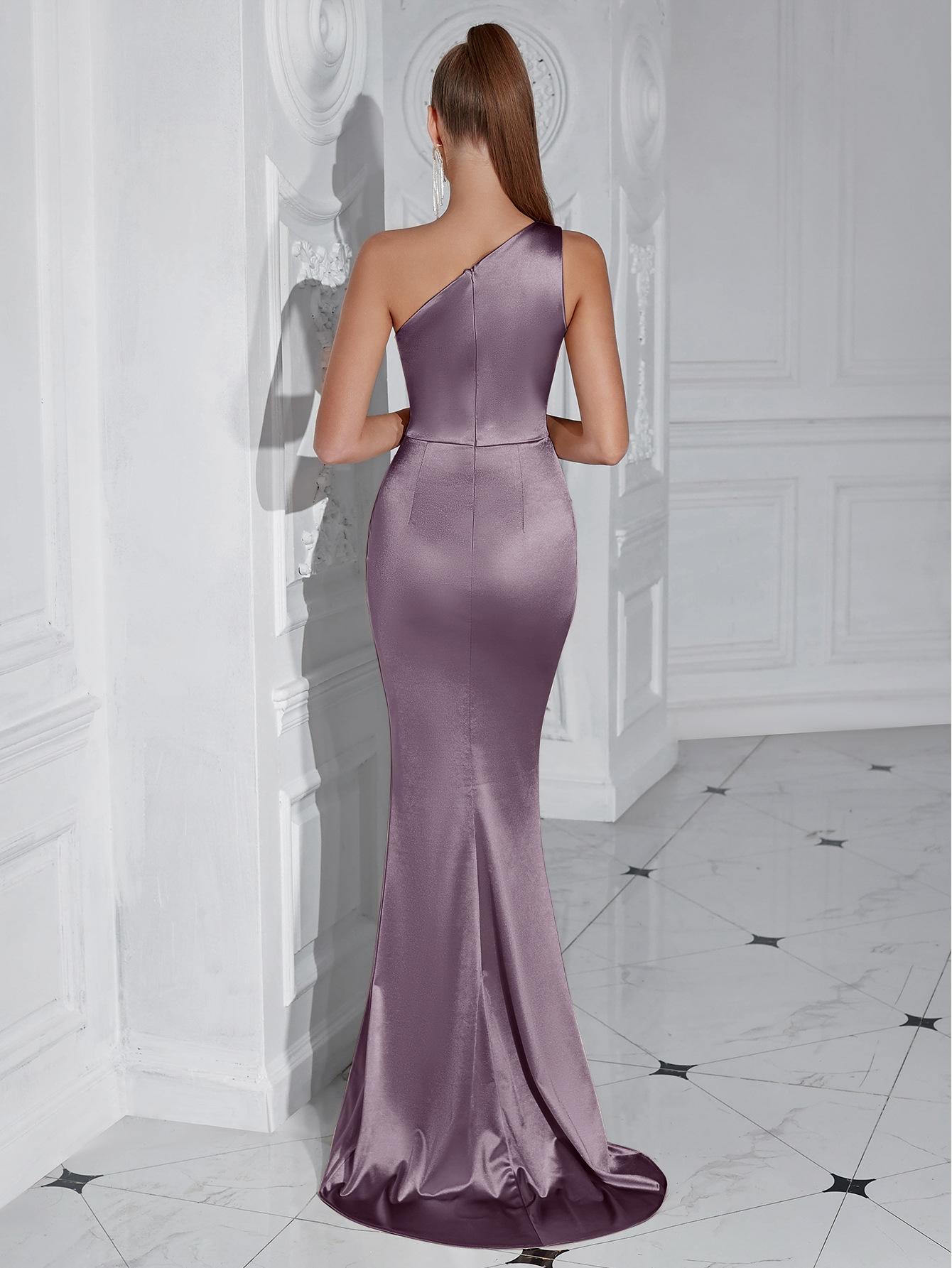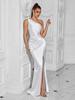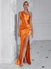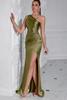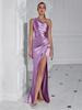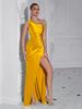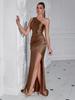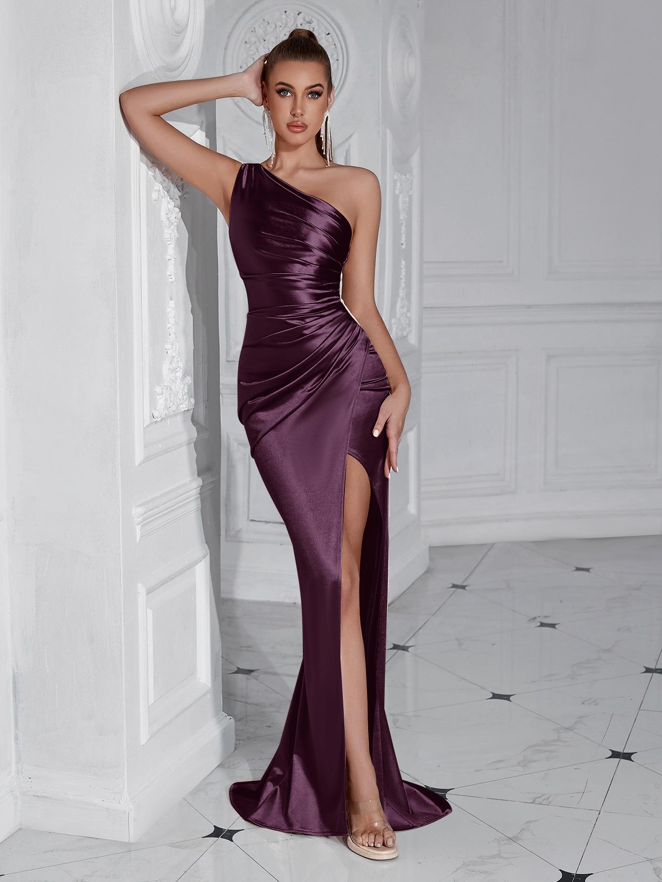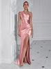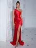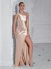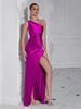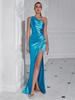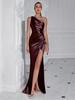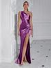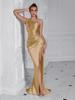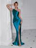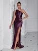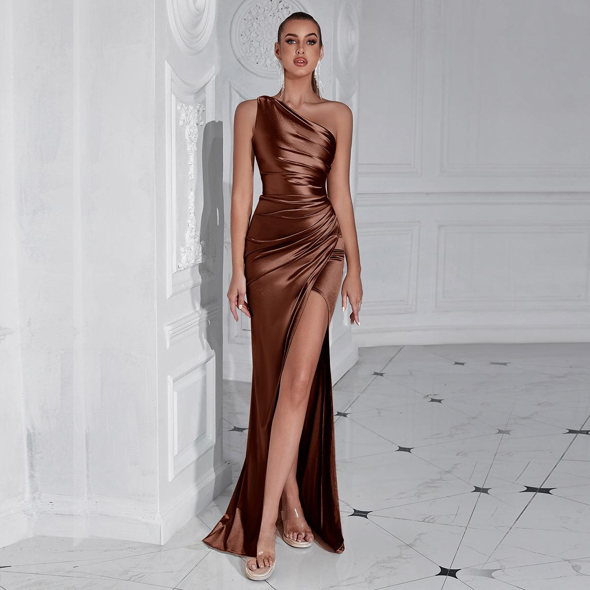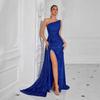 Moda europea y americana vestido ajustado plisado de un hombro con abertura sexy temperamento de diosa vestido de noche de fiesta de alta gama