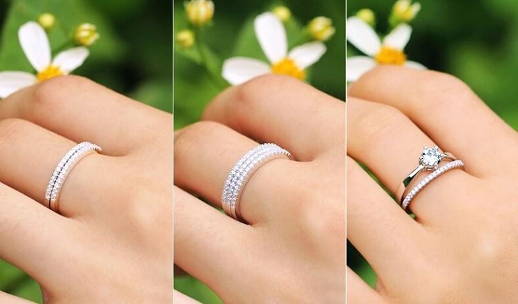 Kalime Wish Anillo de Pareja Creativo Nuevo de Venta Caliente de Aliexpress Anillo de Diamantes de Fila Única para Mujer Anillo Chapado en Oro Blanco