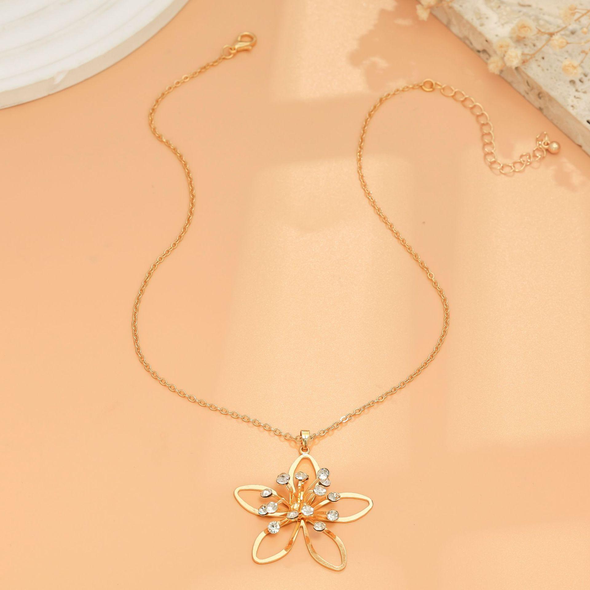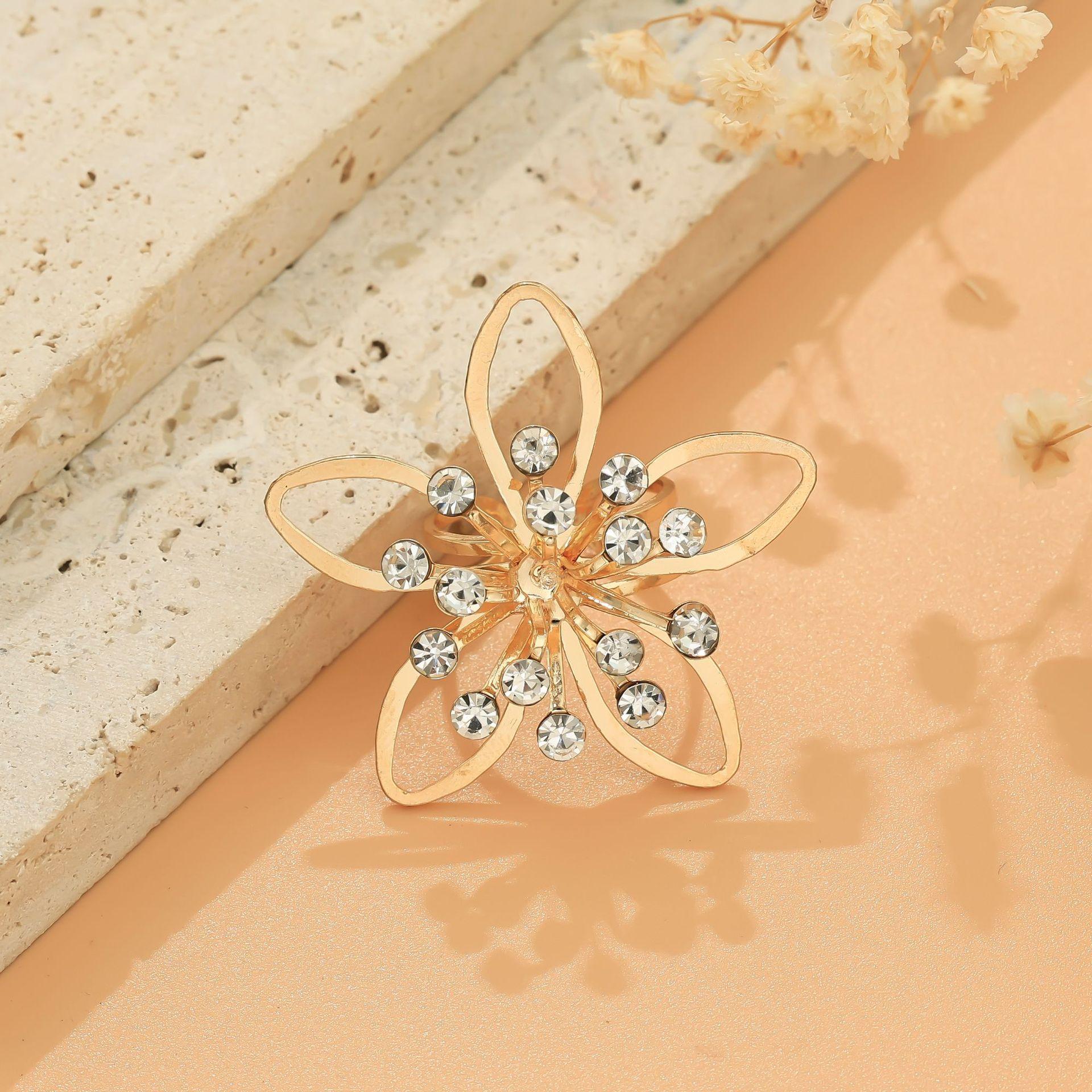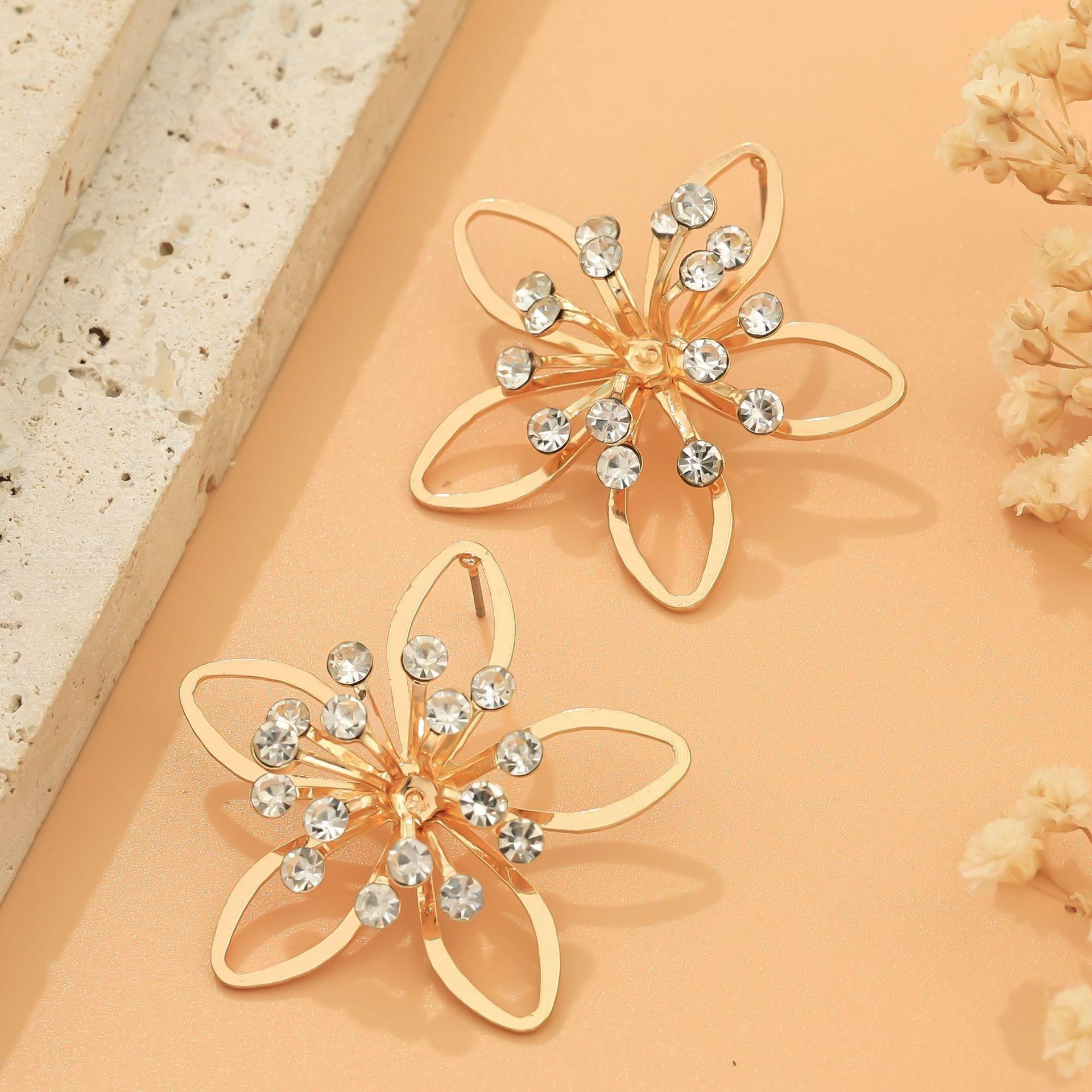 Joyería Transfronteriza Europea y Americana Moda Metal Hueco Diamante Flor Collar Aretes Elegante Pulsera Anillo Set