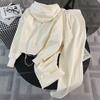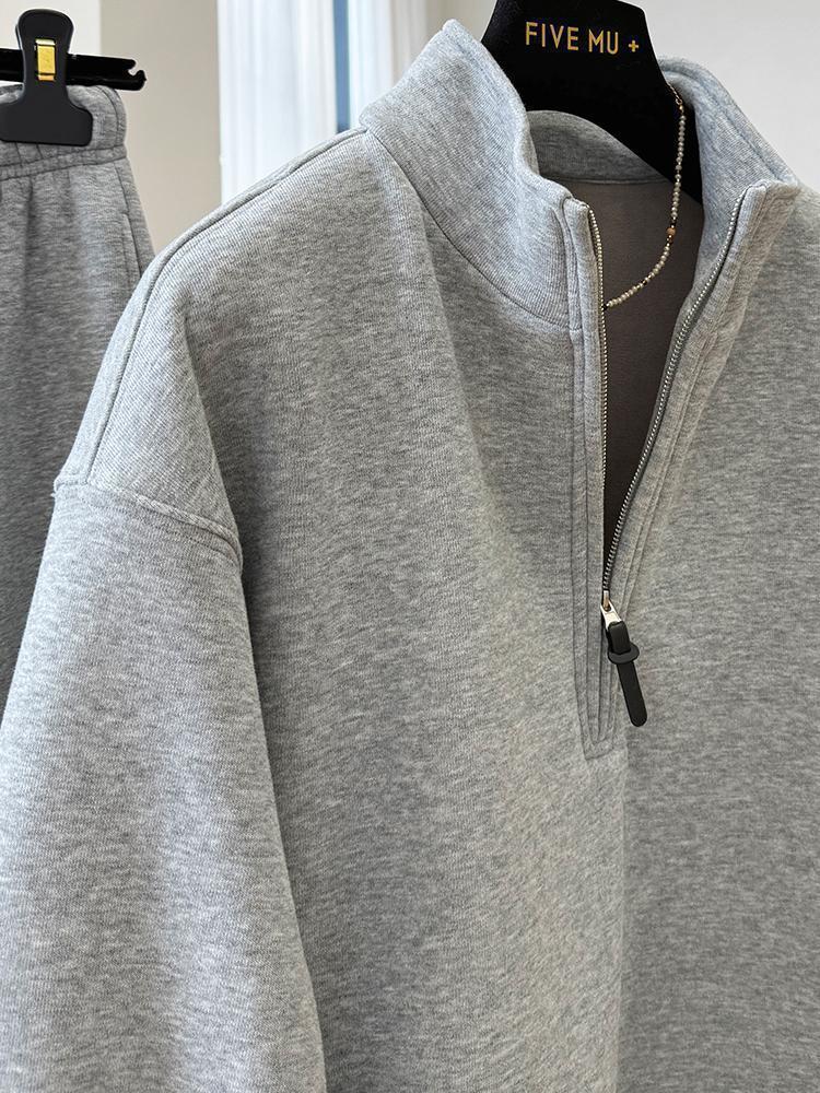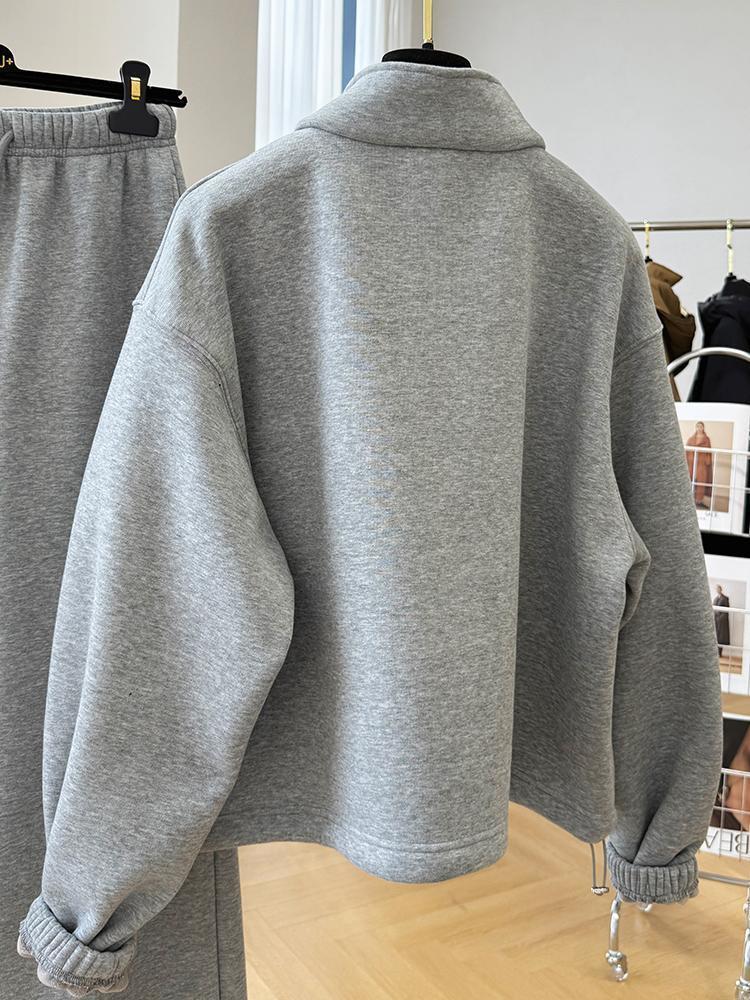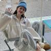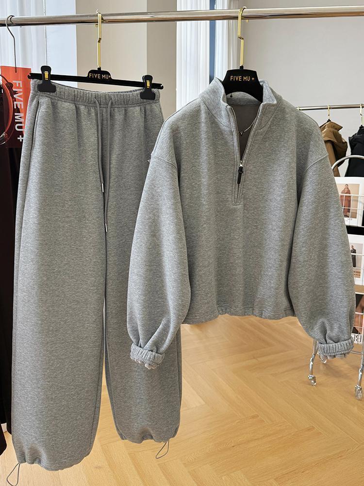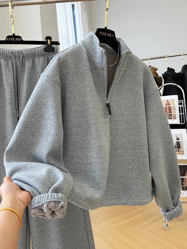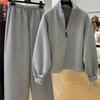 Conjunto deportivo de dos piezas super otoño e invierno estilo coreano con forro polar, nuevo, que reduce la edad, cuello alto, atractivo, casual, sudadera, pantalones deportivos, deportivo, grueso, para mujer