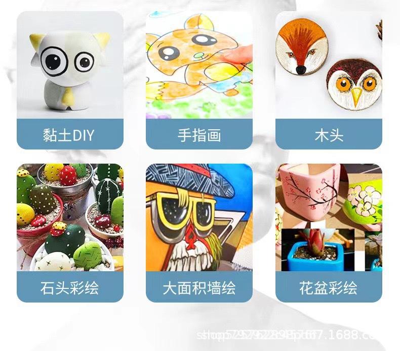 Pintura Acrílica para Niños Juego de 12 Colores 6 Piezas Arte para Estudiantes Pintura para Colorear Pintura para Muñeca de Yeso Tiras de Pintura en Stock