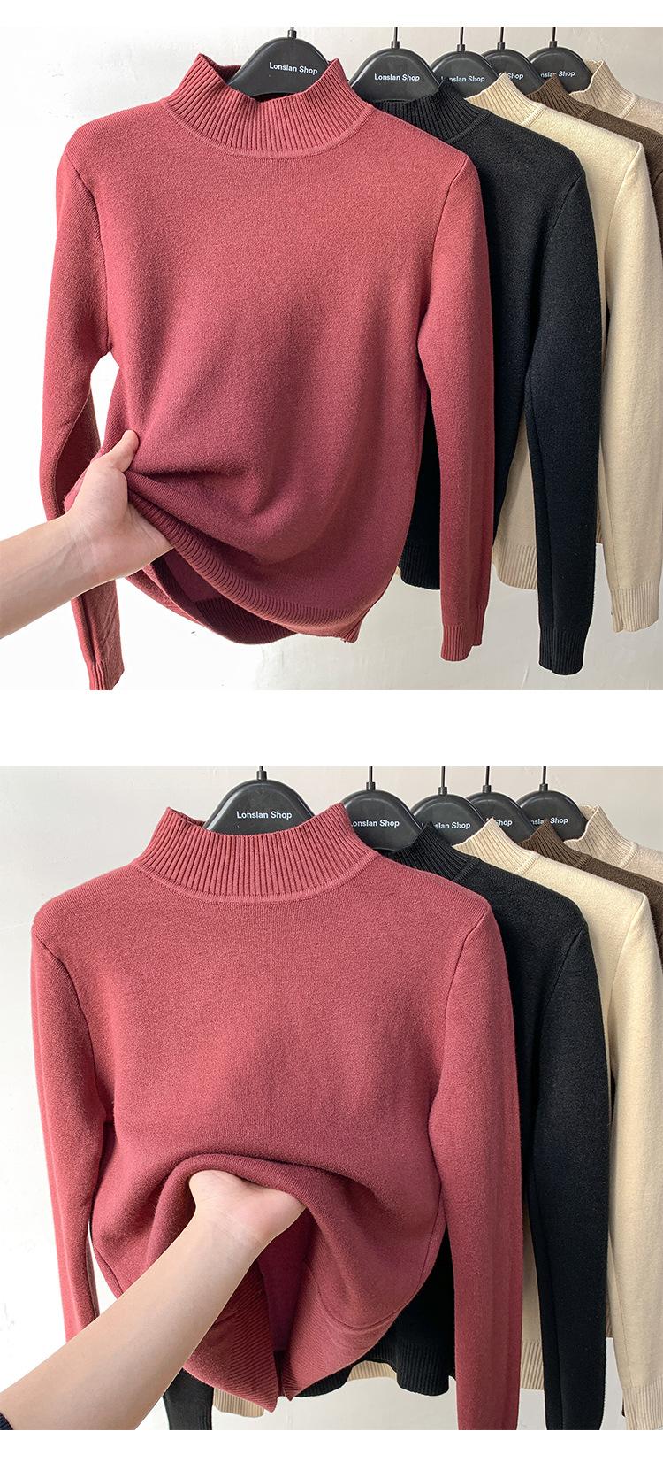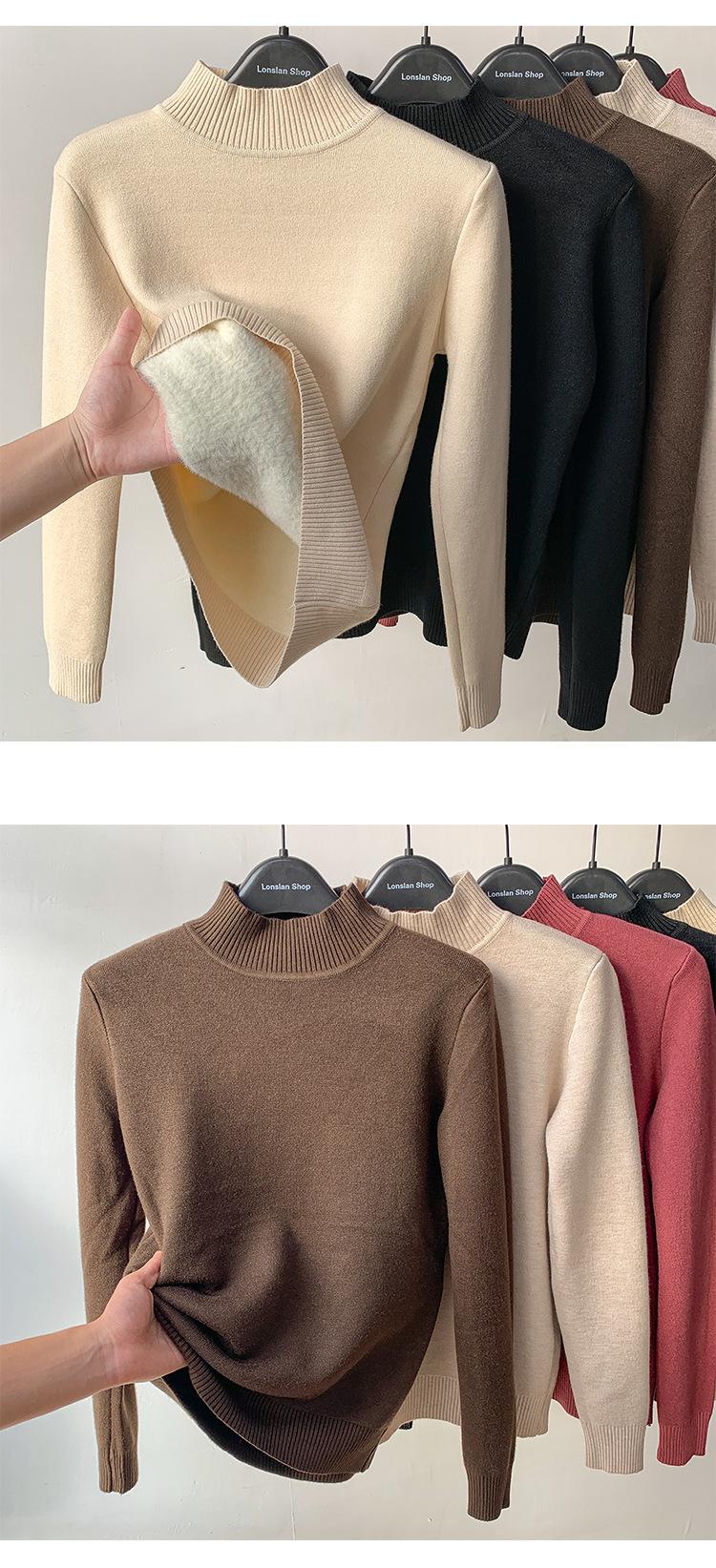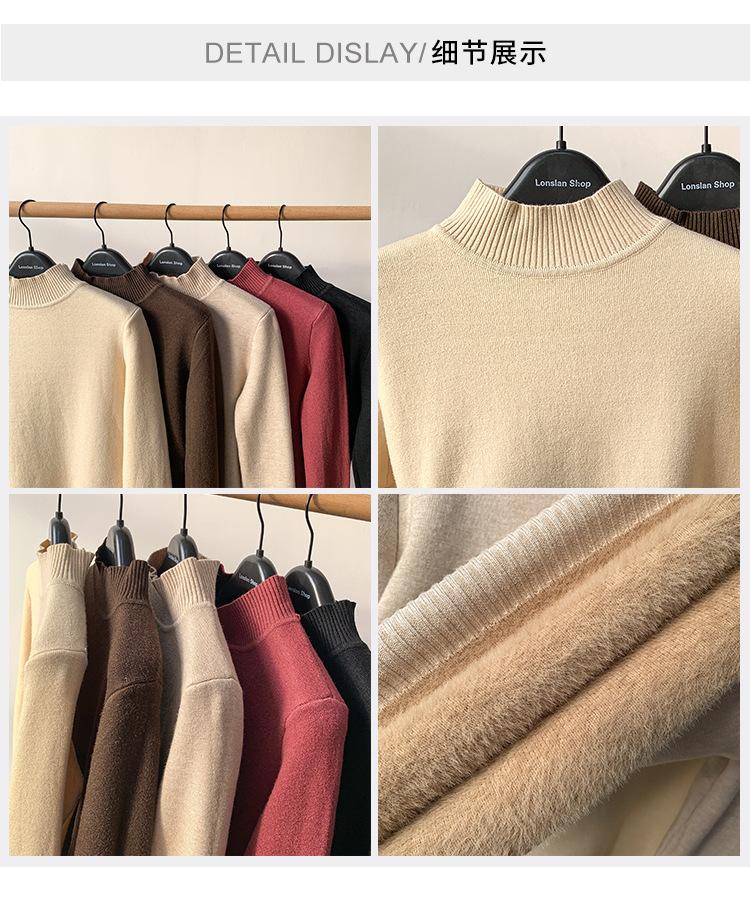 Suéter de Terciopelo de una Pieza para Mujer Invierno 2025 Otoño e Invierno Nuevo Grueso Cuello Medio Alto con Camiseta Interior Trbottomy