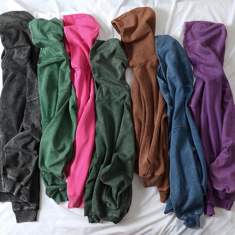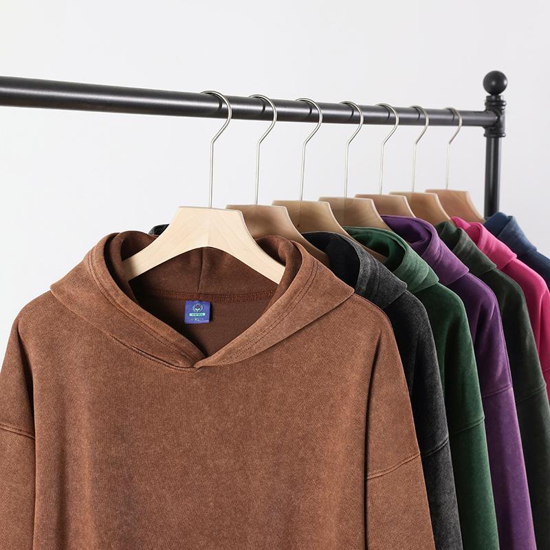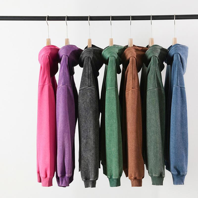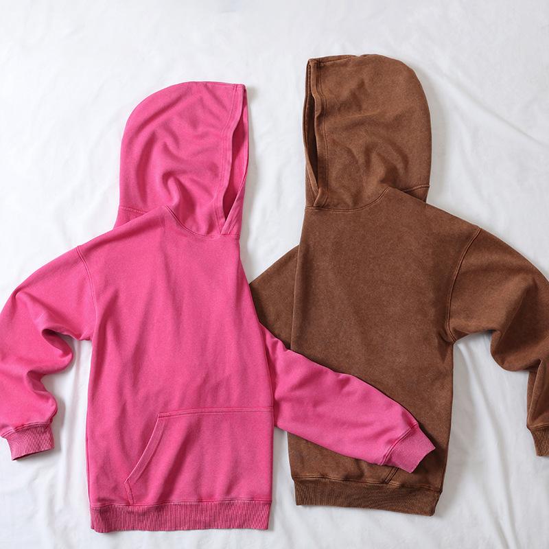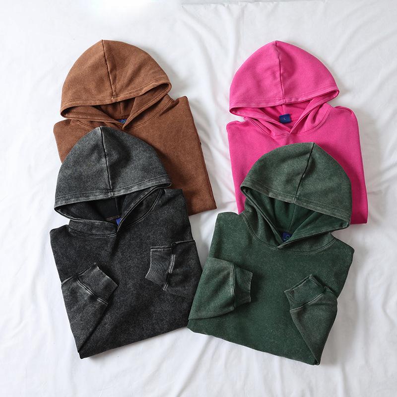 Sudadera con capucha de 450 g al por mayor con forro polar, lavada y desgastada, teñida anudada, sudadera lavada y desgastada, estilo pareja, sudadera con capucha desgastada