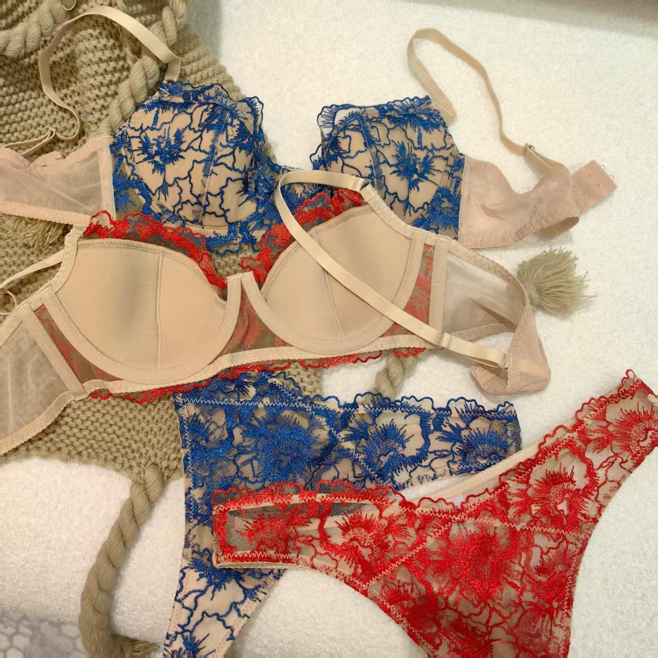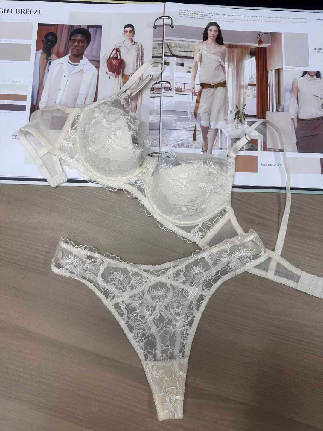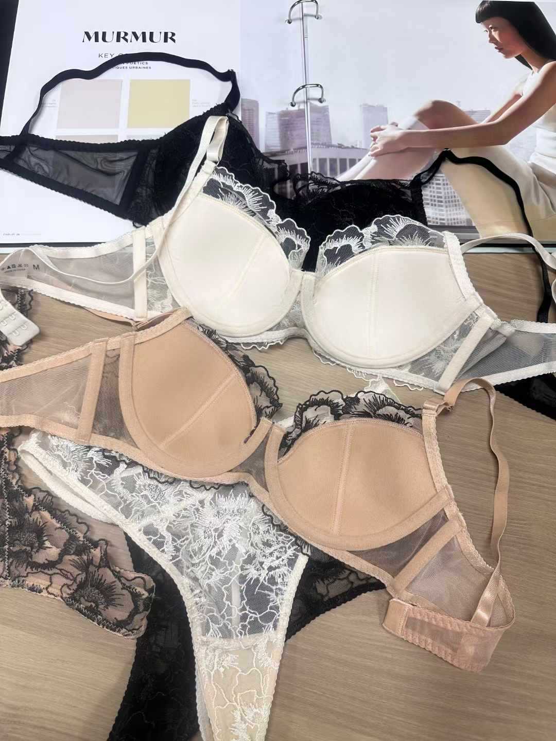 Encaje Bordado Europeo y Americano Lencería Francesa Sexy Delgada Algodón Push-up Set de Brasier