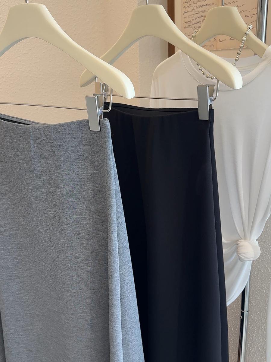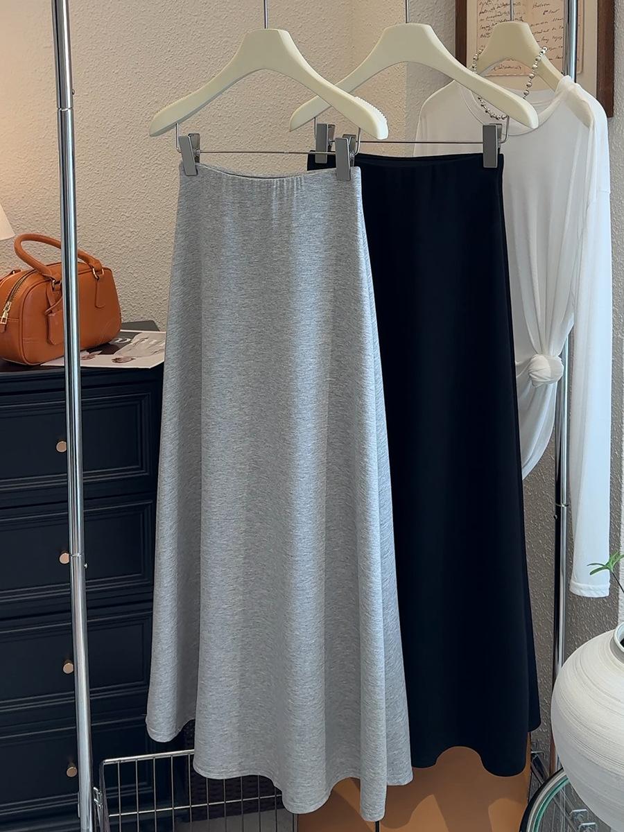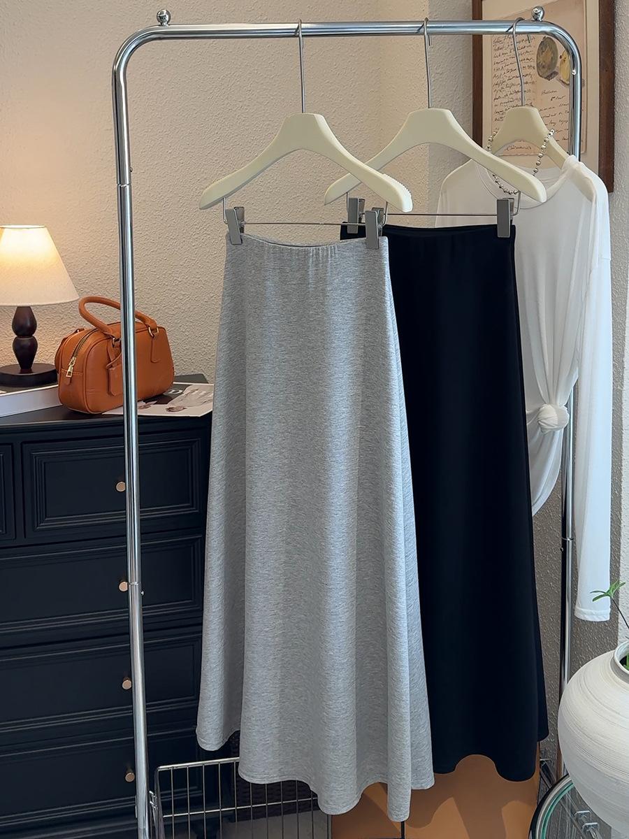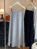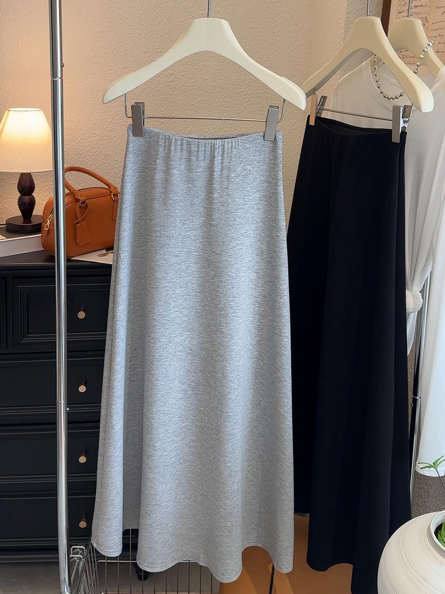 2025 Falda Larga de Verano para Mujer Gris de Cintura Alta Largo Medio Drapeada Suelta Versátil Suave Casual Sencilla Línea A