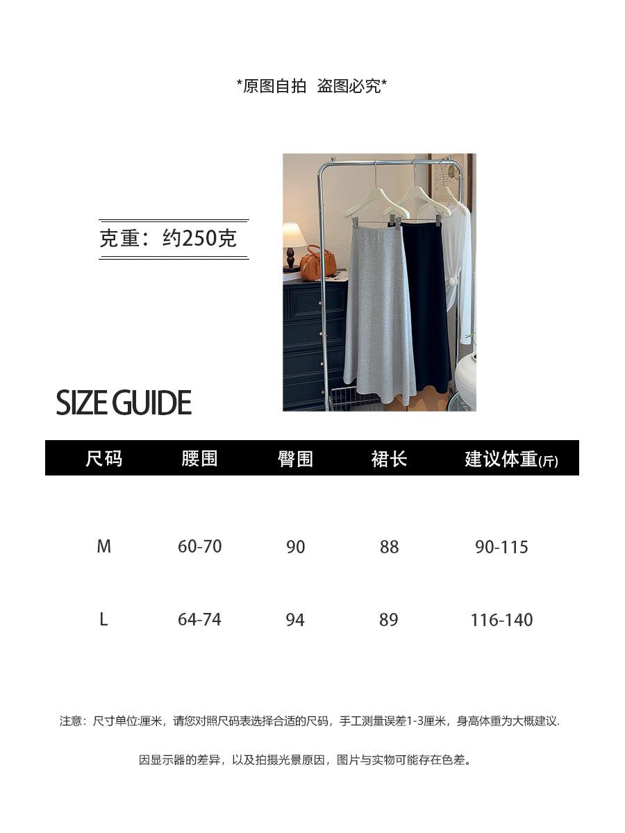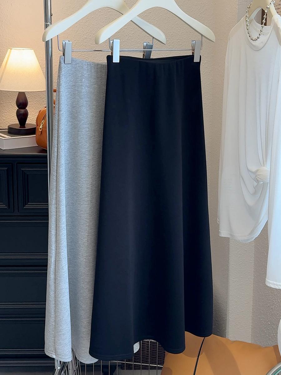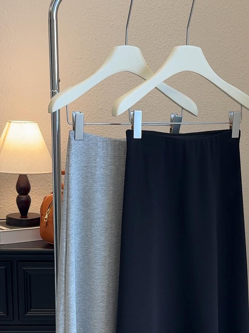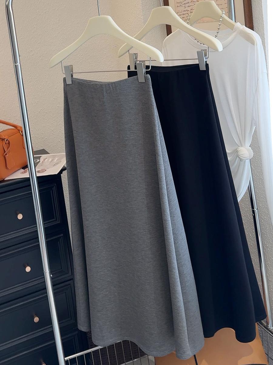 2025 Falda Larga de Verano para Mujer Gris de Cintura Alta Largo Medio Drapeada Suelta Versátil Suave Casual Sencilla Línea A