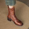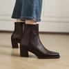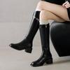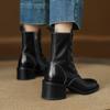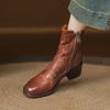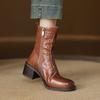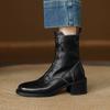 Botas Nuevas de Cuero Genuino para Mujer Talla Grande Media Caña Cierre Lateral Tacón Alto Botas de Mujer Tacón Cuadrado Punta Redonda Piel de Vaca Botas de Moda Otoño e Invierno