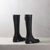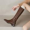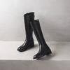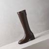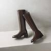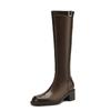Botas de moda para mujer de otoño e invierno de color sólido de cuero genuino, tacón alto, talla grande, suela de goma, punta cuadrada, cierre de cremallera, caña alta de piel de vaca