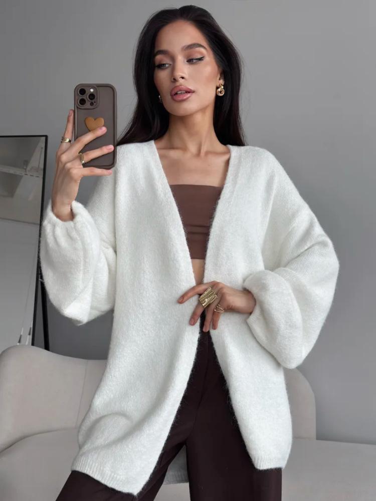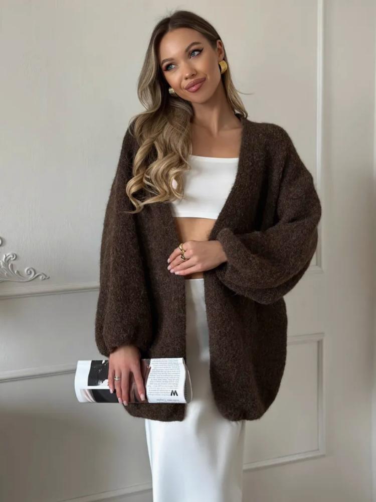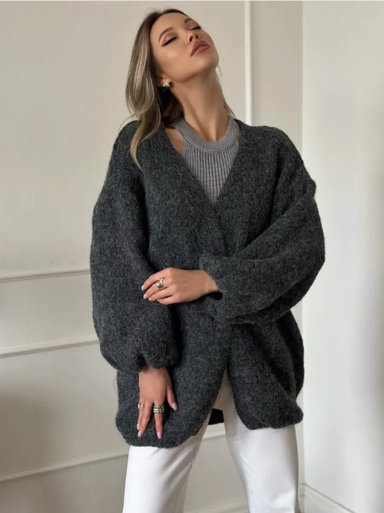 Abrigo Suéter de Manga Farol de Largo Medio para Otoño e Invierno Transfronterizo Abrigo Exterior para Mujer Estilo Holgazán Cárdigan de Punto Oversize para Mujer