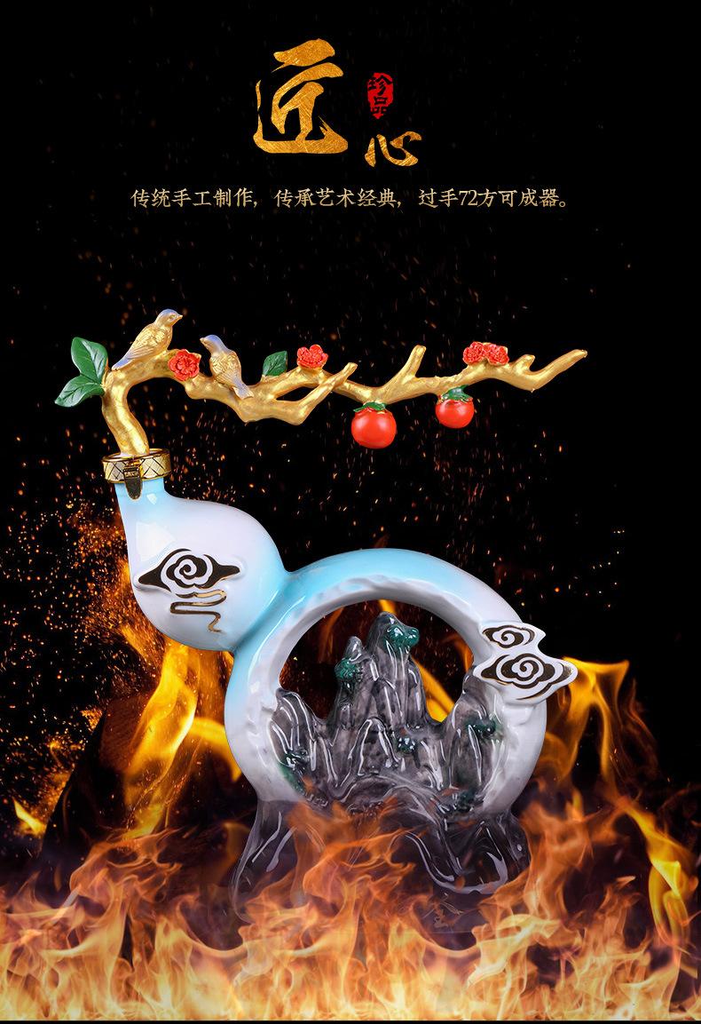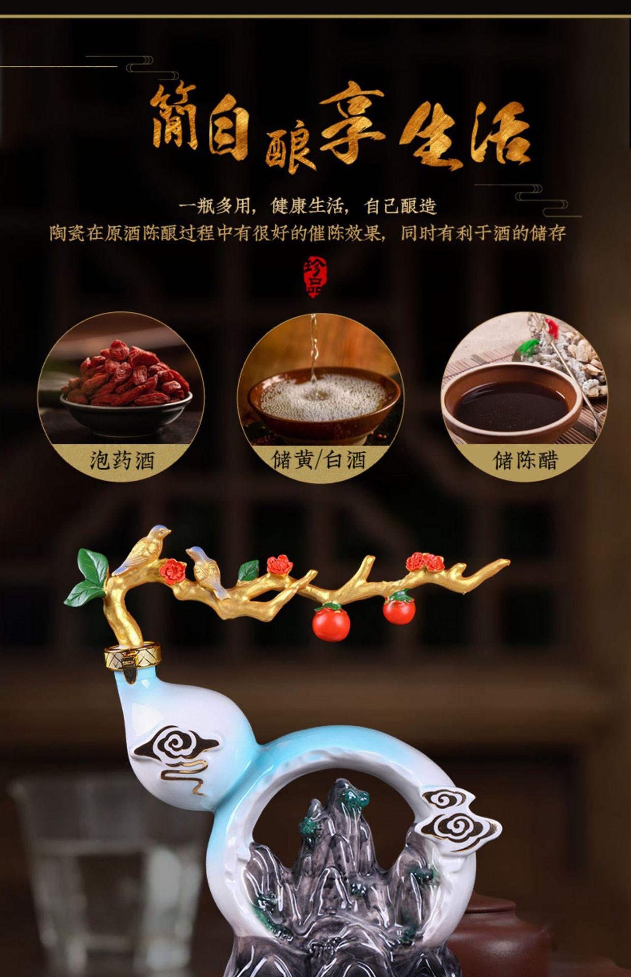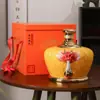 Botella de Vino de Cerámica de Jingdezhen Capacidad 3 Jin Creativa Botella de Vino con Arte de Calabaza Adorno Tarro Sellado para Almacenamiento de Vino Caja de Regalo Set de Vino