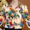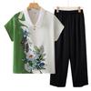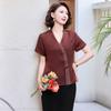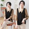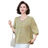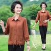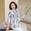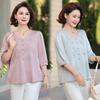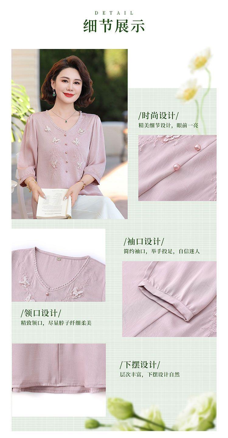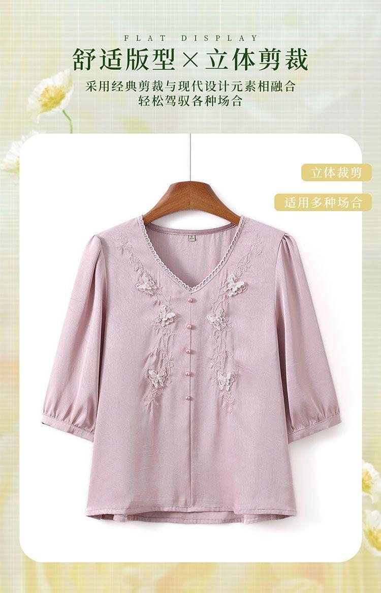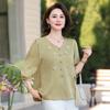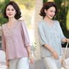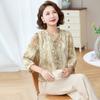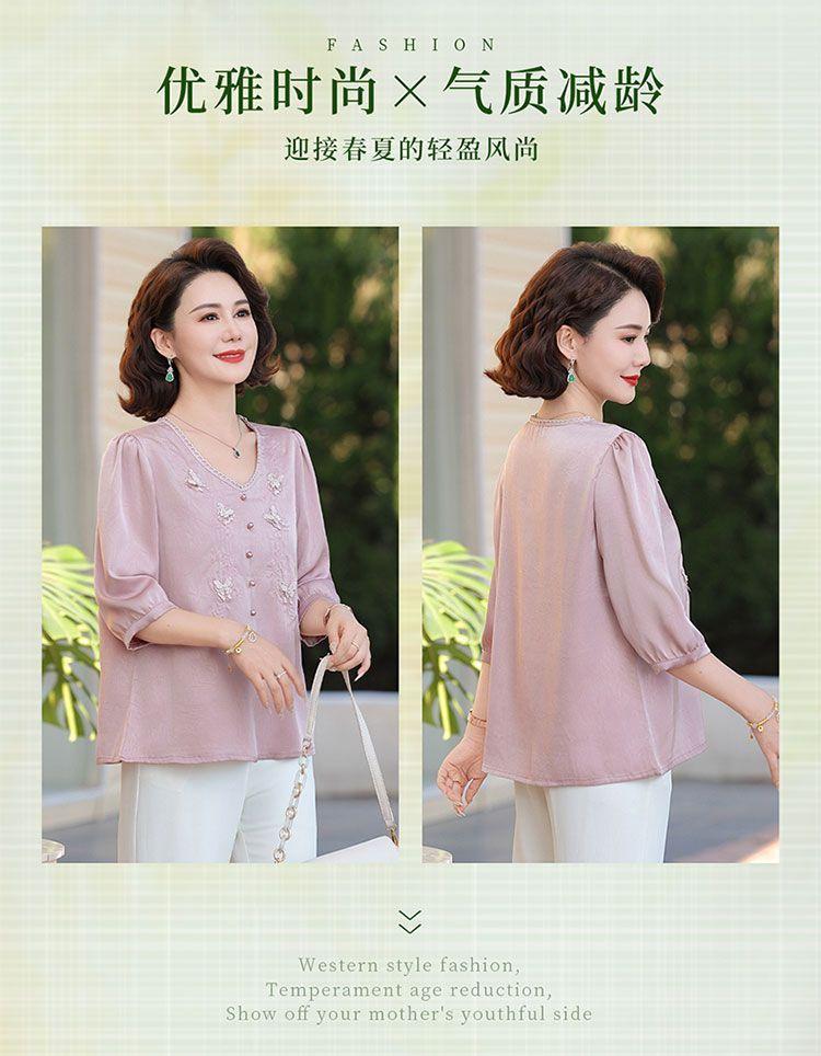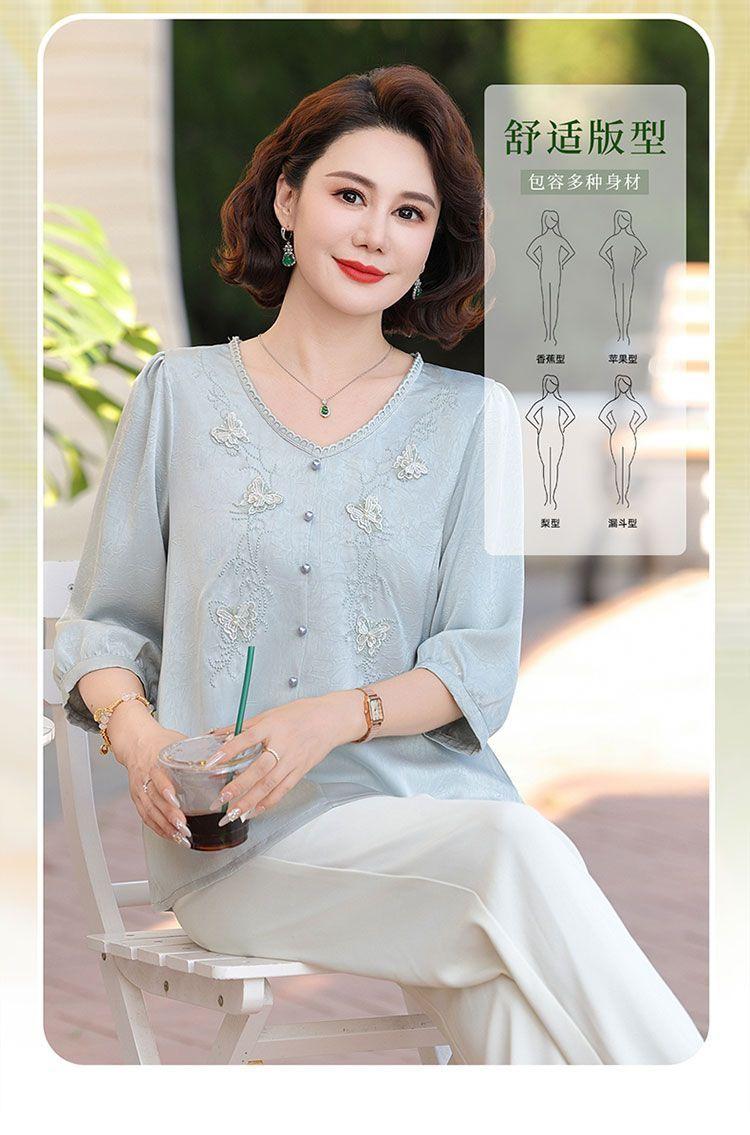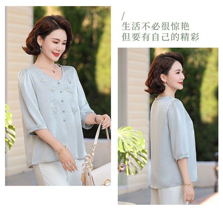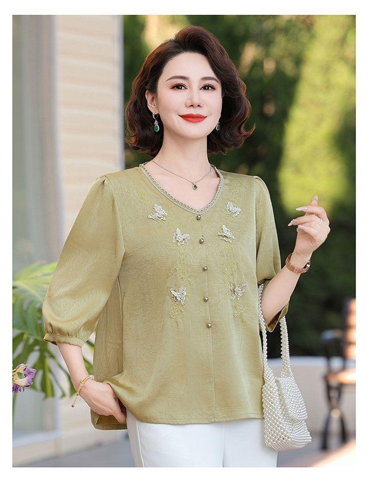 Blusa de gasa de moda para mujer de mediana edad con cuello en V y manga tres cuartos para mujeres de mediana edad y mayores, top de moda elegante y que reduce la edad