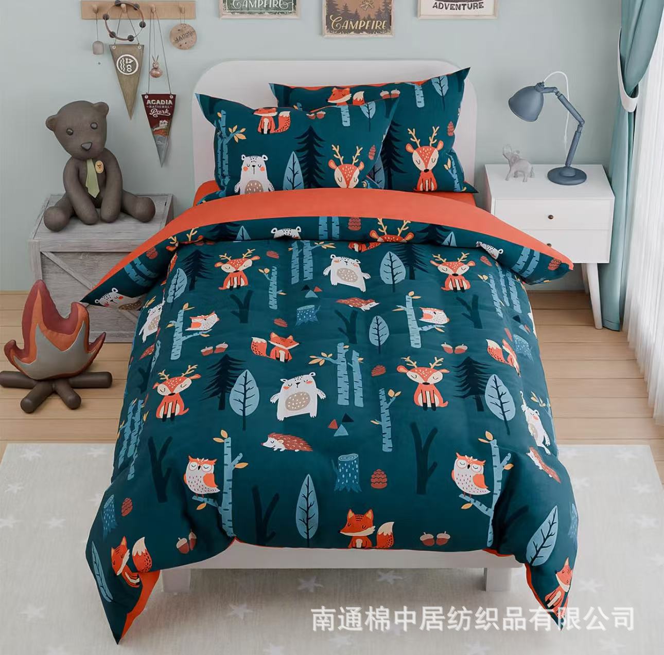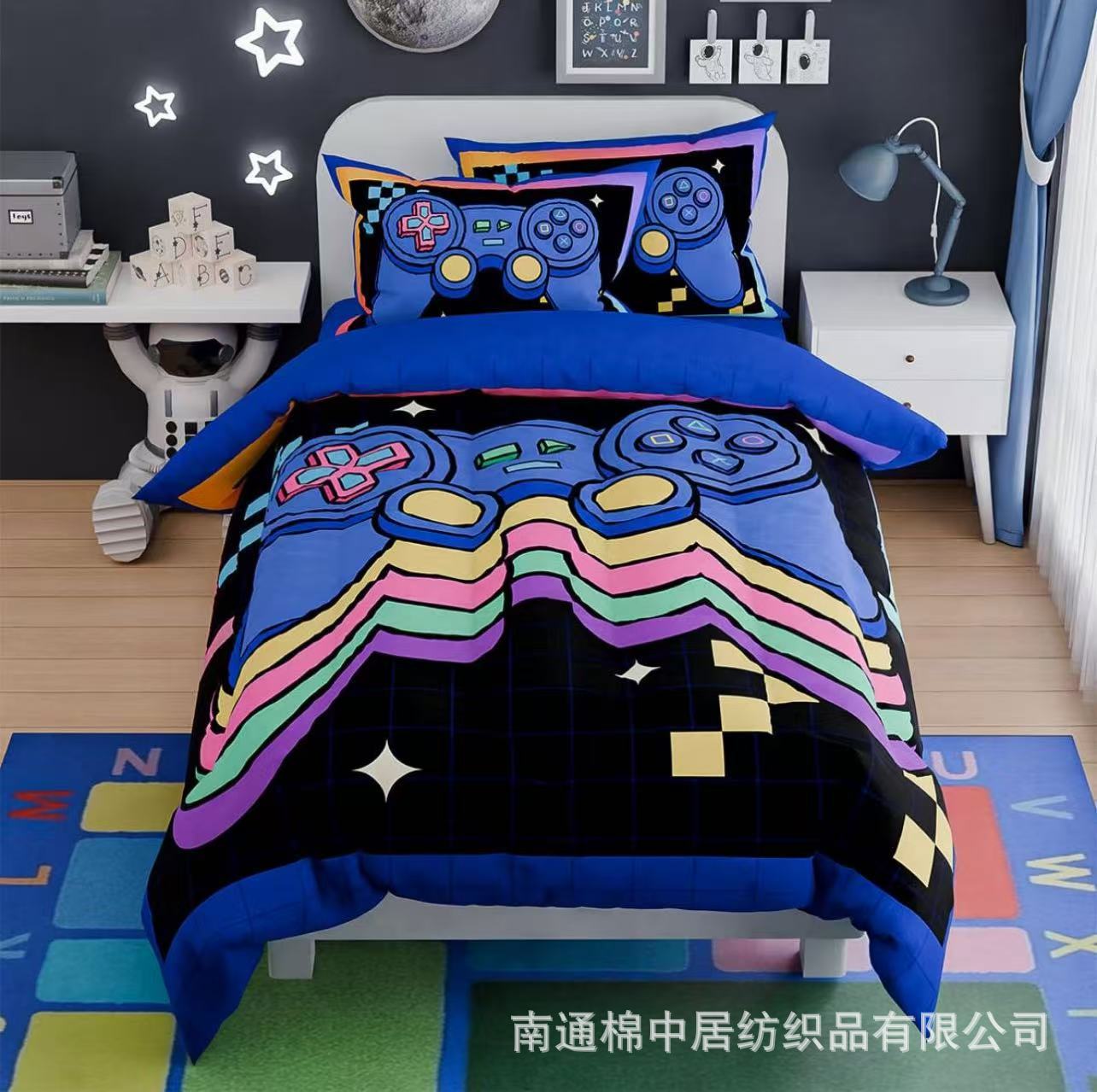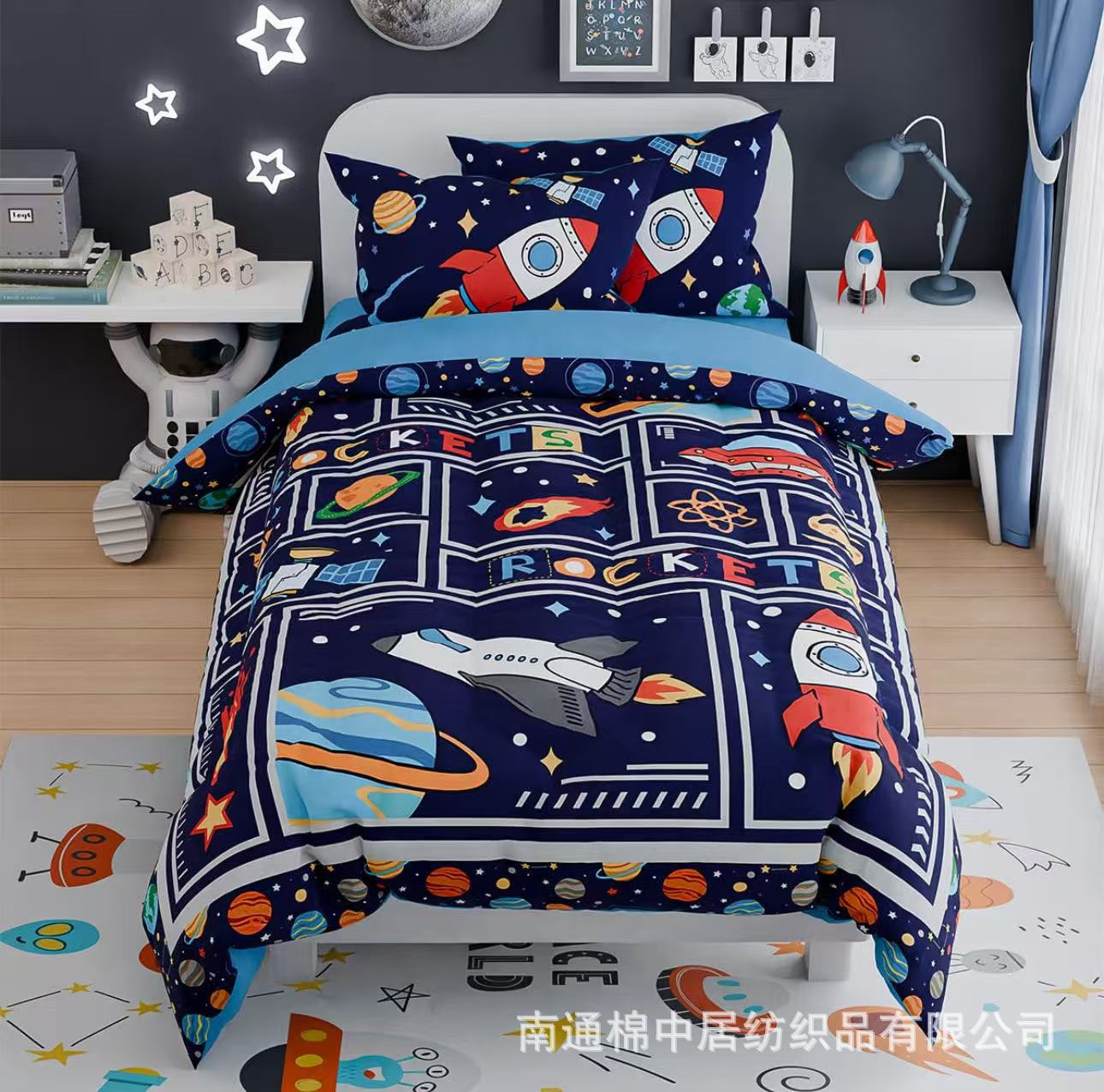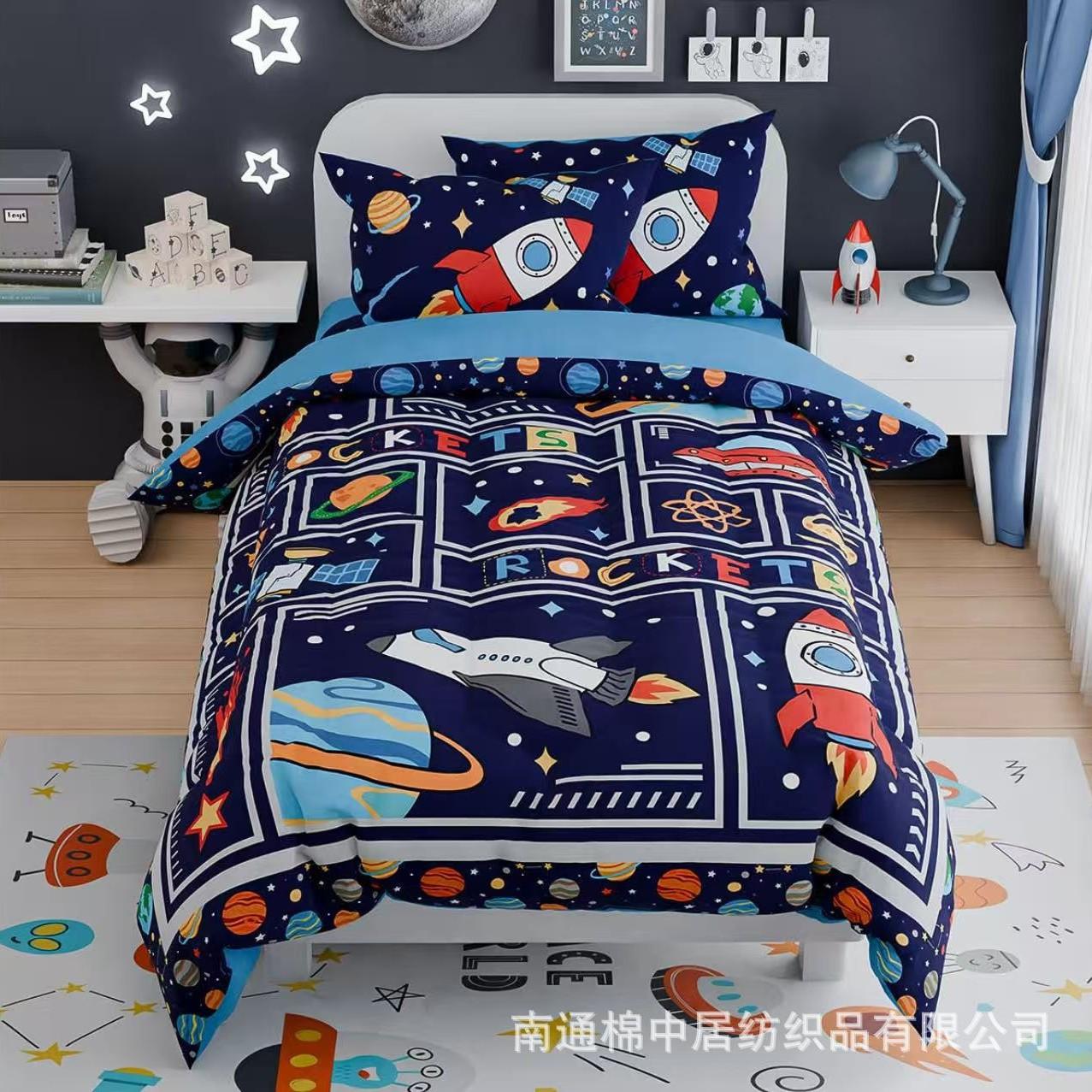 Amazon printing cartoon animation boys and girls bedding universe star rocket space kids three-piece set