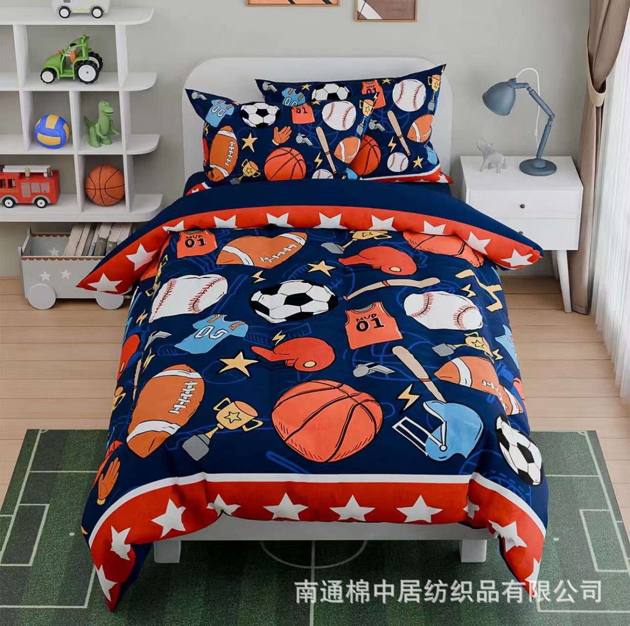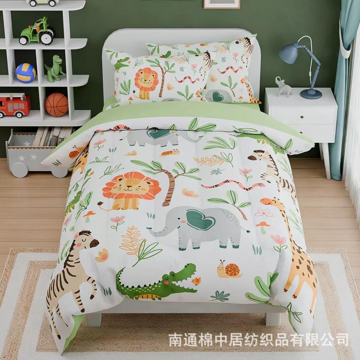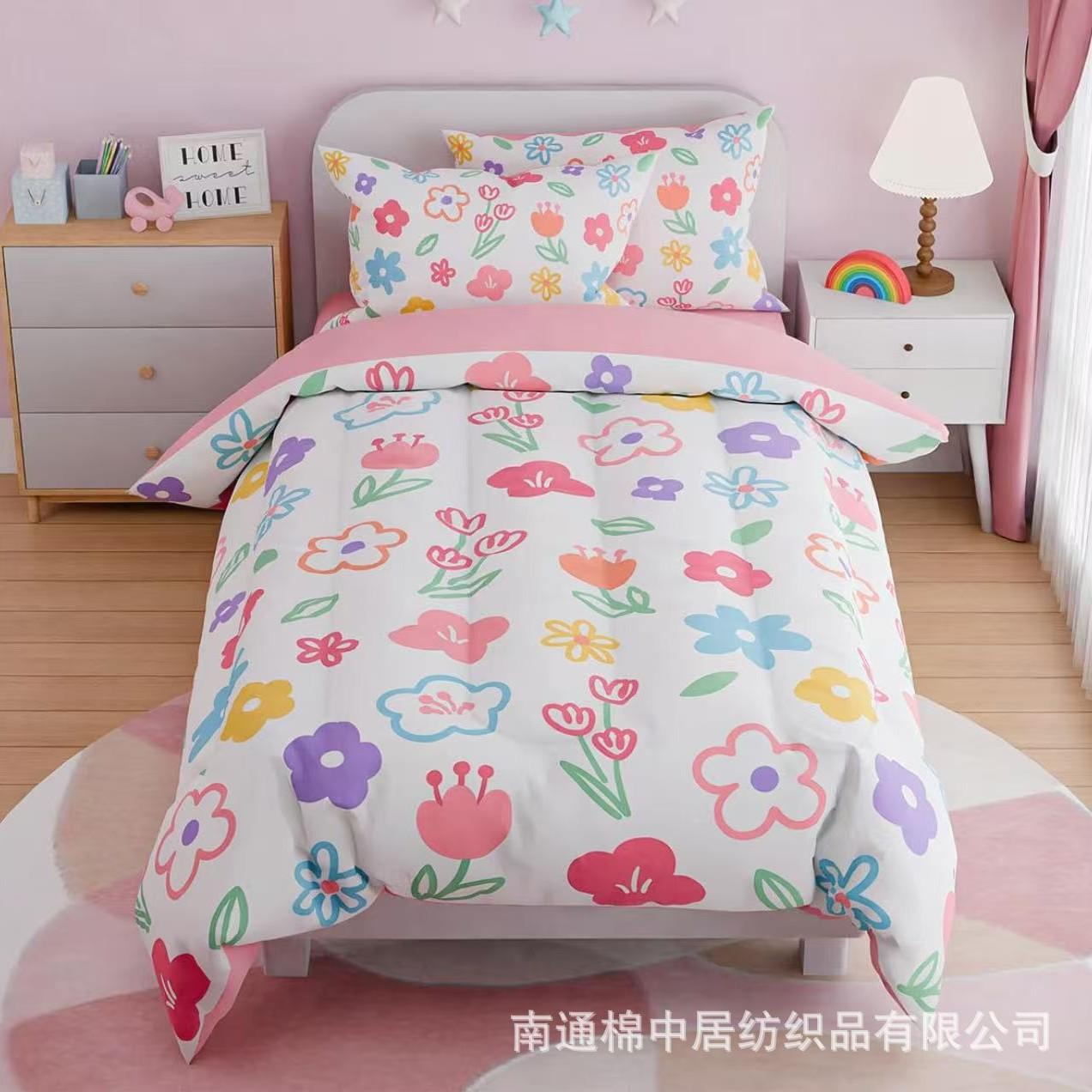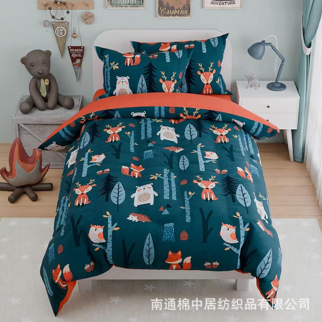 Amazon printing cartoon animation boys and girls bedding universe star rocket space kids three-piece set
