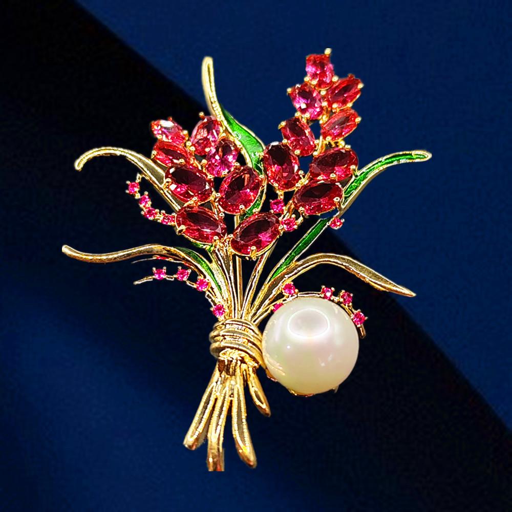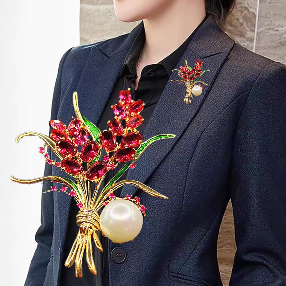 Moda Coreana Broche de Flor con Pedrería para Mujer Cárdigan Abrigo Corsage Temperamento Celebridad de Internet Personalidad Pin Accesorios Tendencia