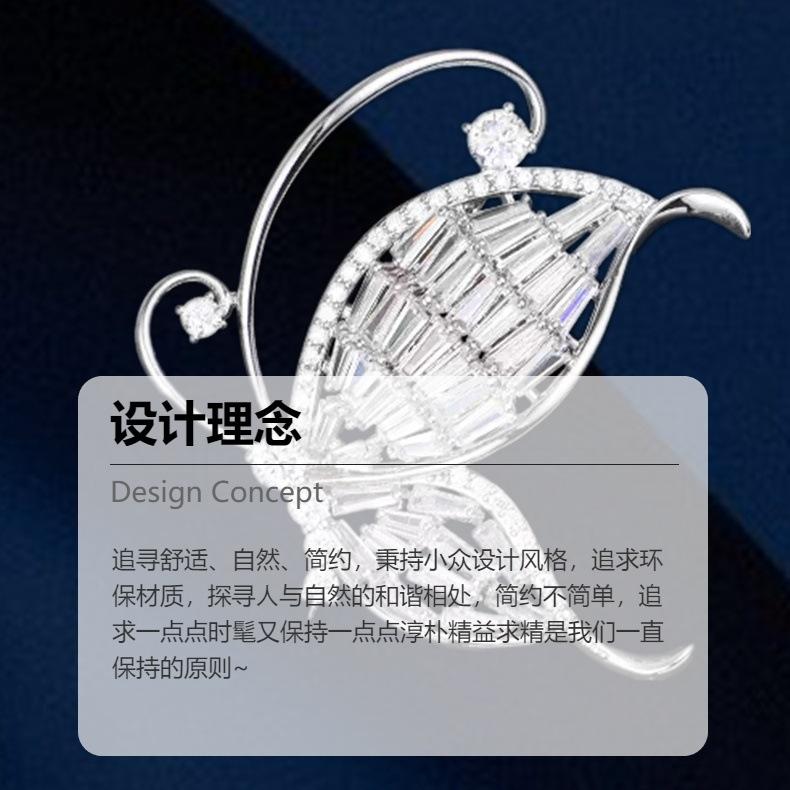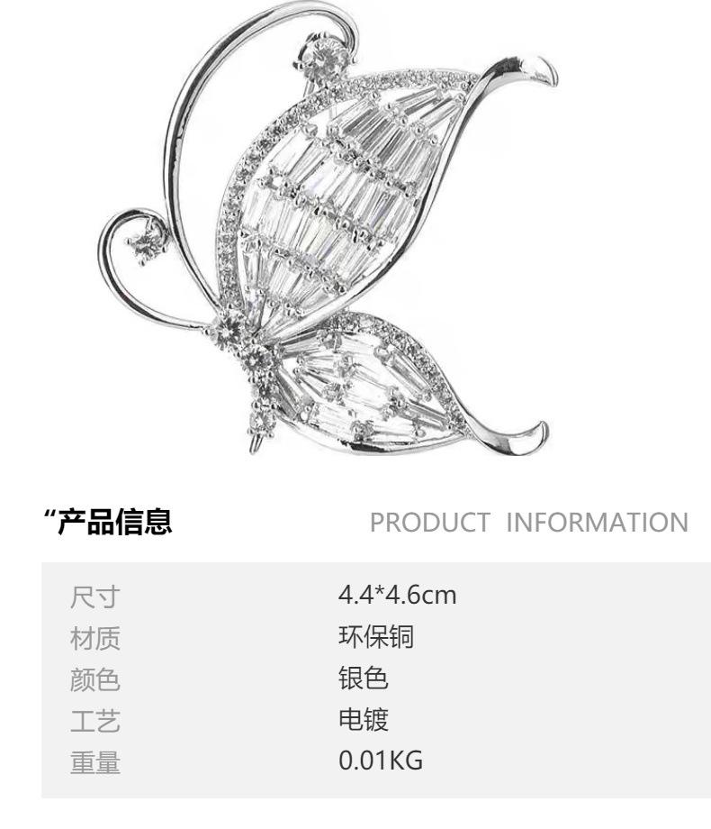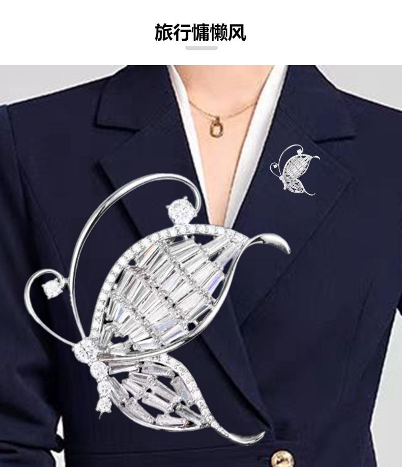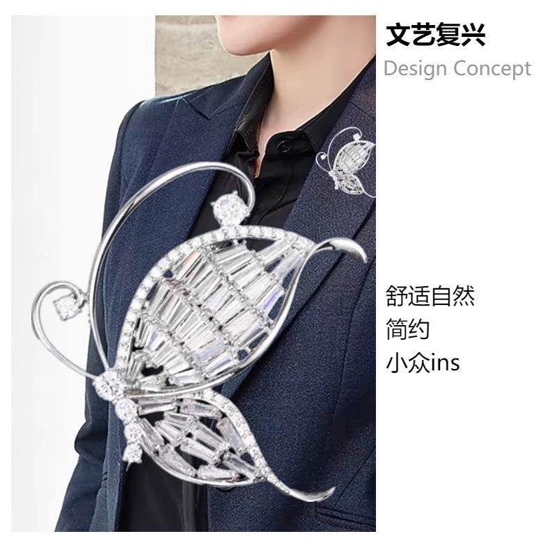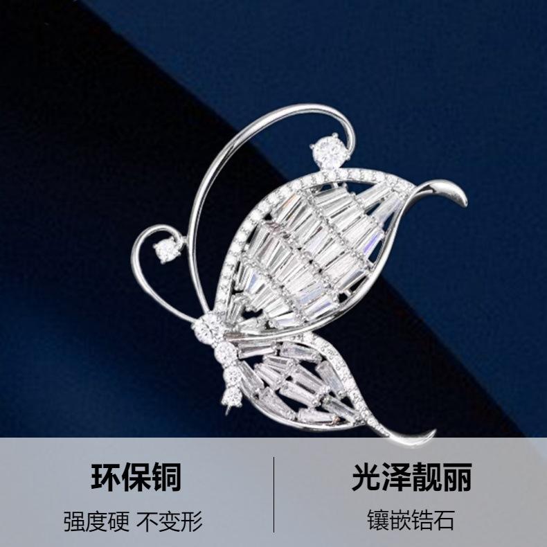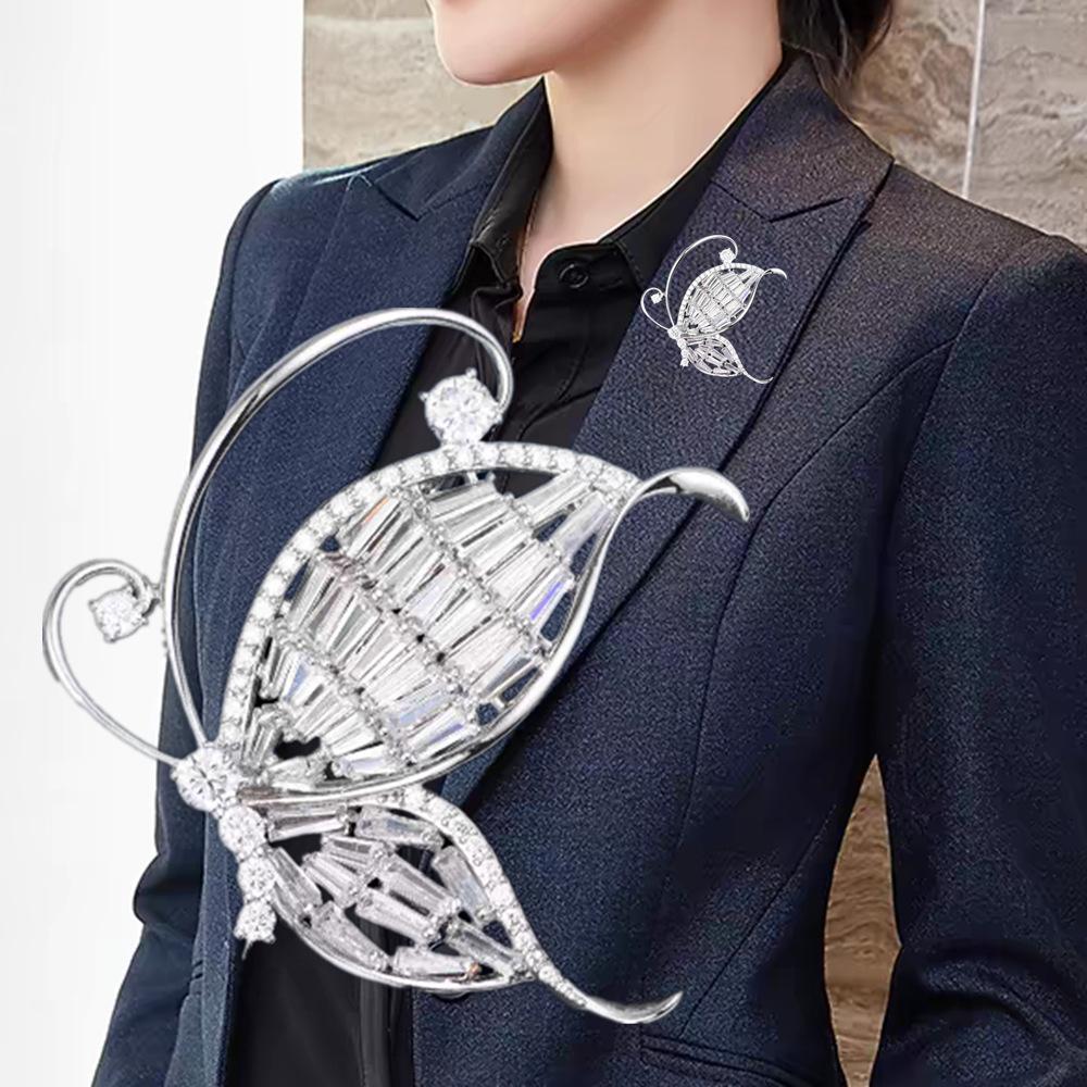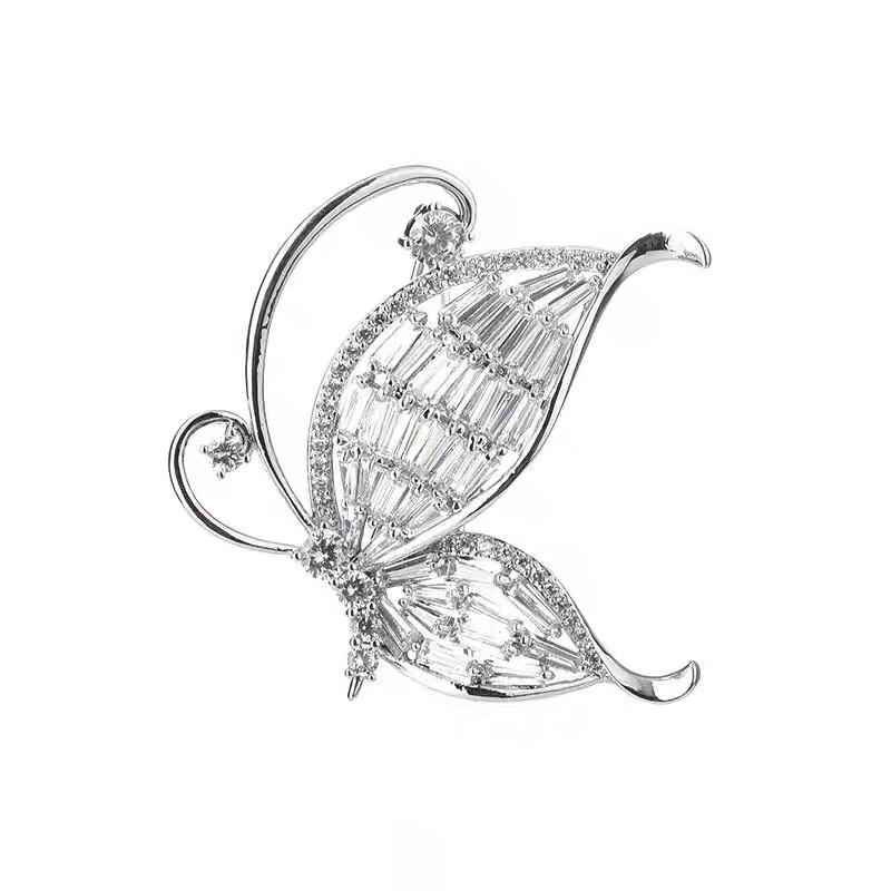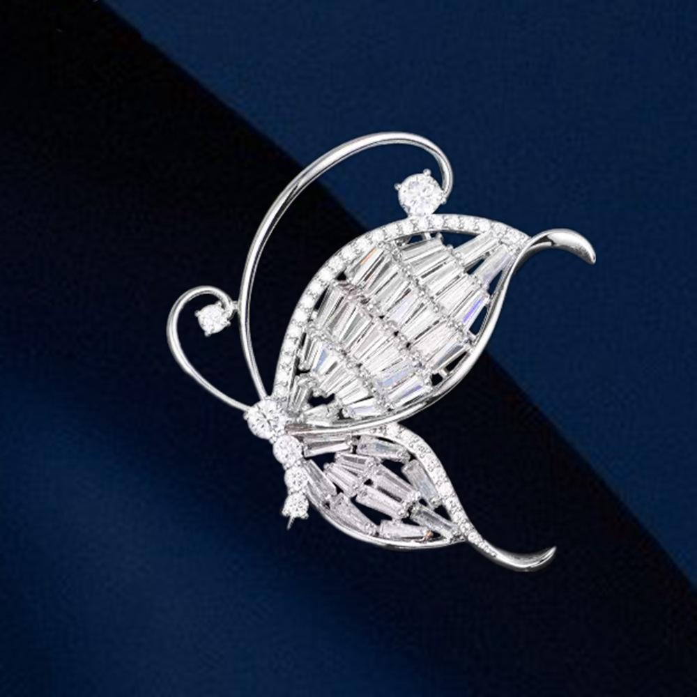 Nuevo broche de mariposa de alta gama de lujo ligero con circonita blanca incrustada, ramillete versátil de moda para ropa, accesorios para mujer en stock