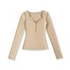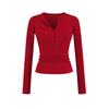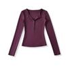 2025 Nuevo Americano Sexy Deseo Puro playera de cuello en V abotonada de manga larga para mujer estilo básico simple elástica ajuste ceñido