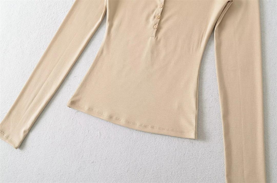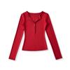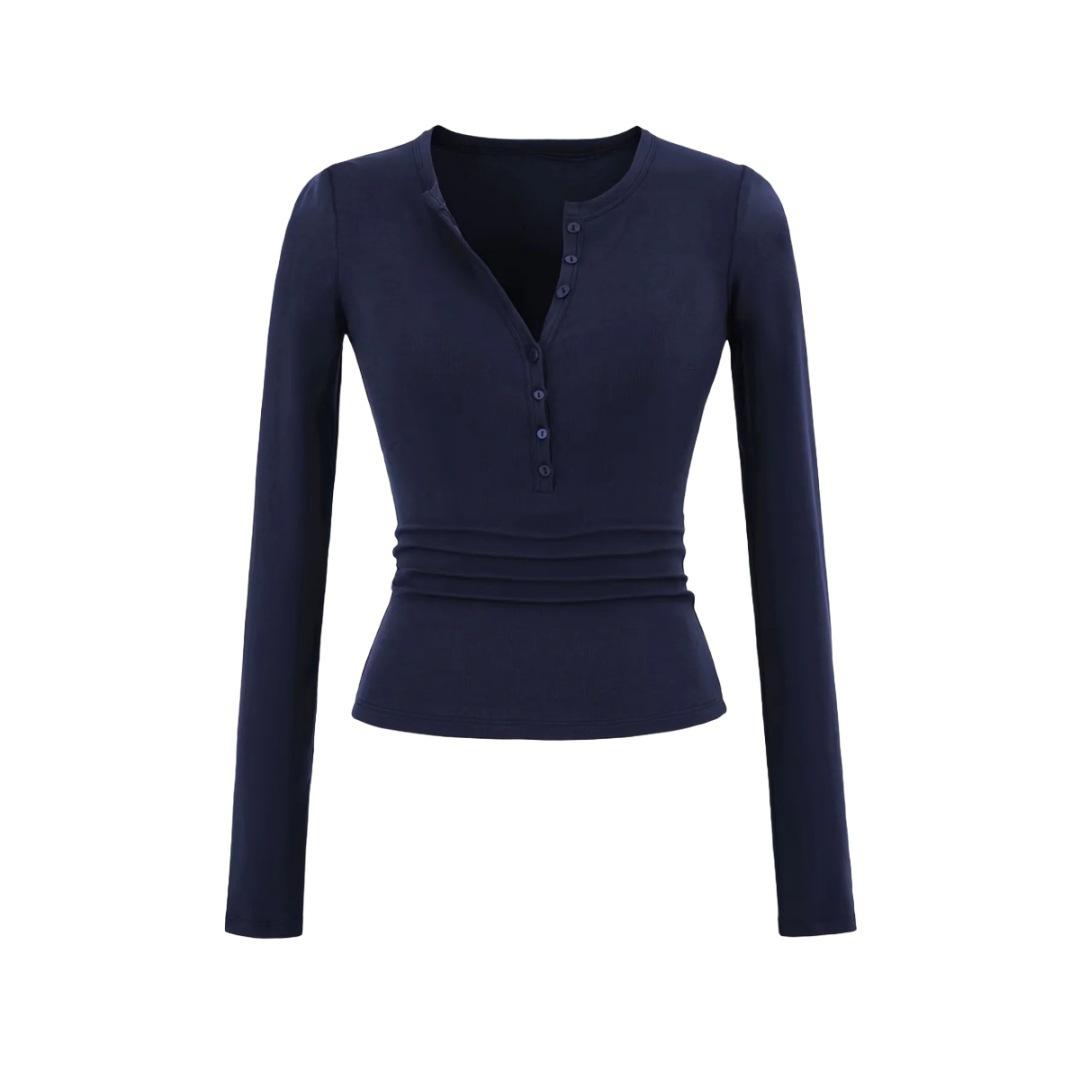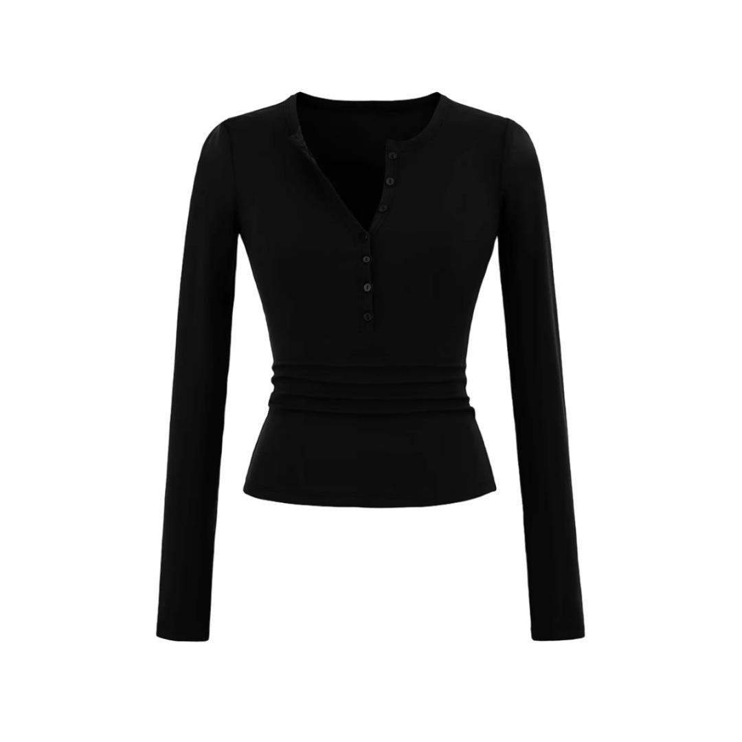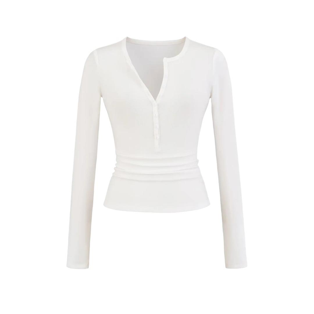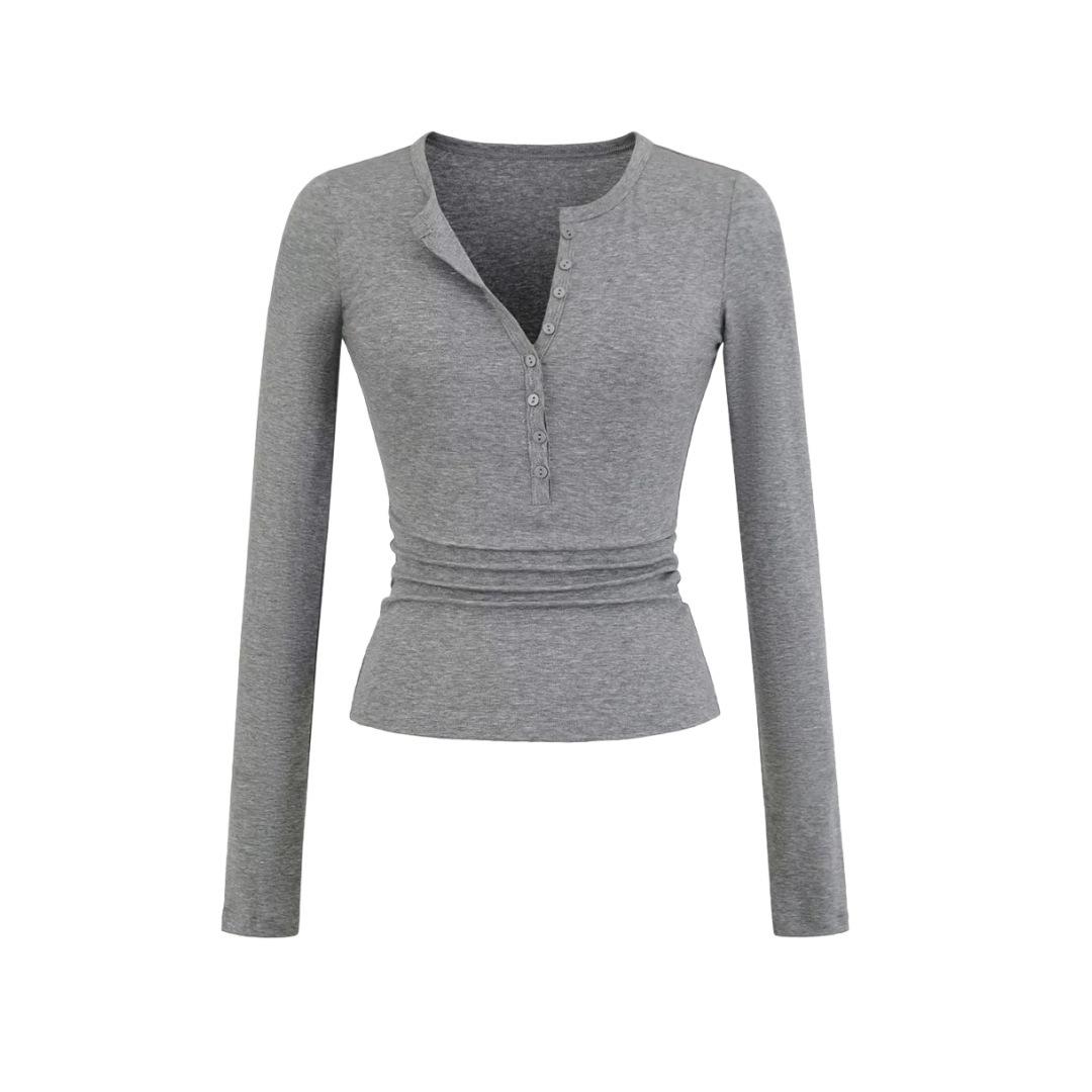 Compra 2025 Nuevo Americano Sexy Deseo Puro playera con Cuello en V abotonada de manga larga para mujer Estilo básico Simple Elástica Ajustada al por mayor en Joom.pro