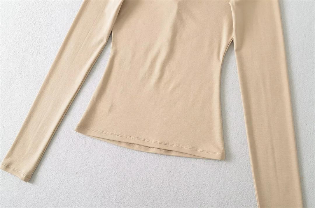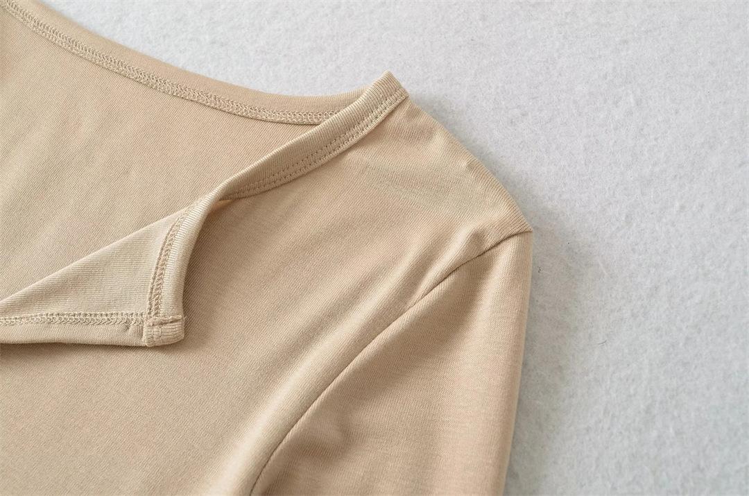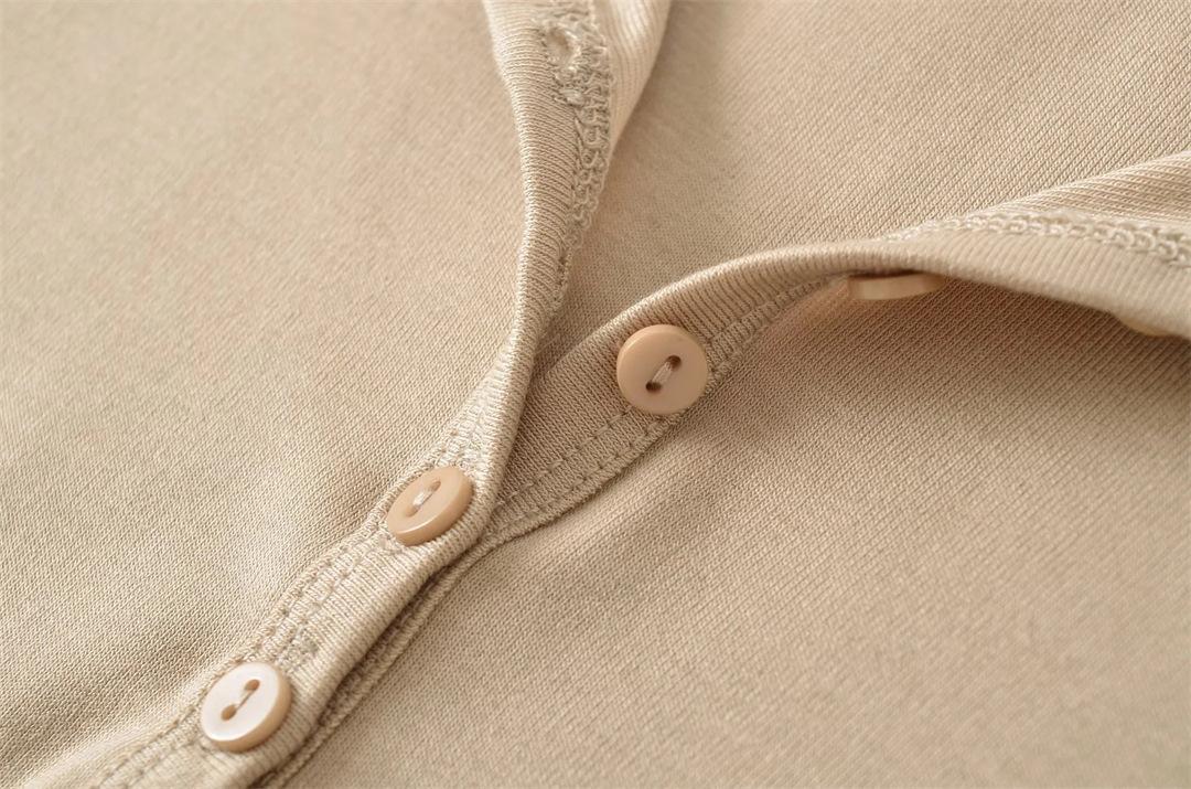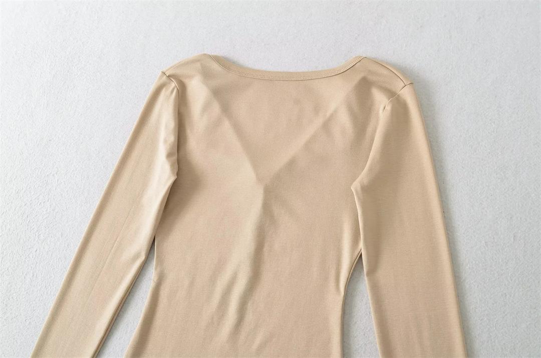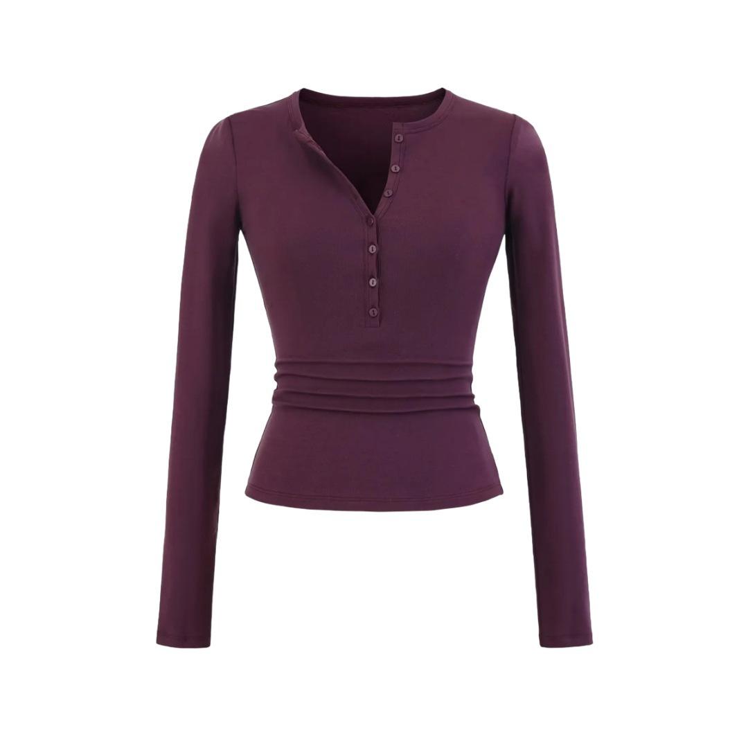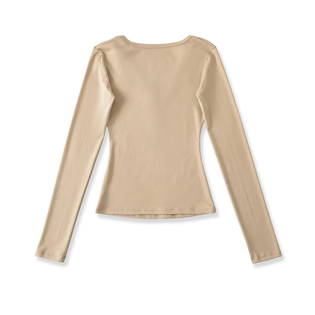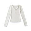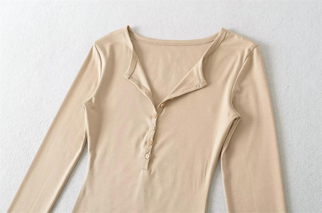 Compra 2025 Nuevo Americano Sexy Deseo Puro playera con Cuello en V abotonada de manga larga para mujer Estilo básico Simple Elástica Ajustada al por mayor en Joom.pro