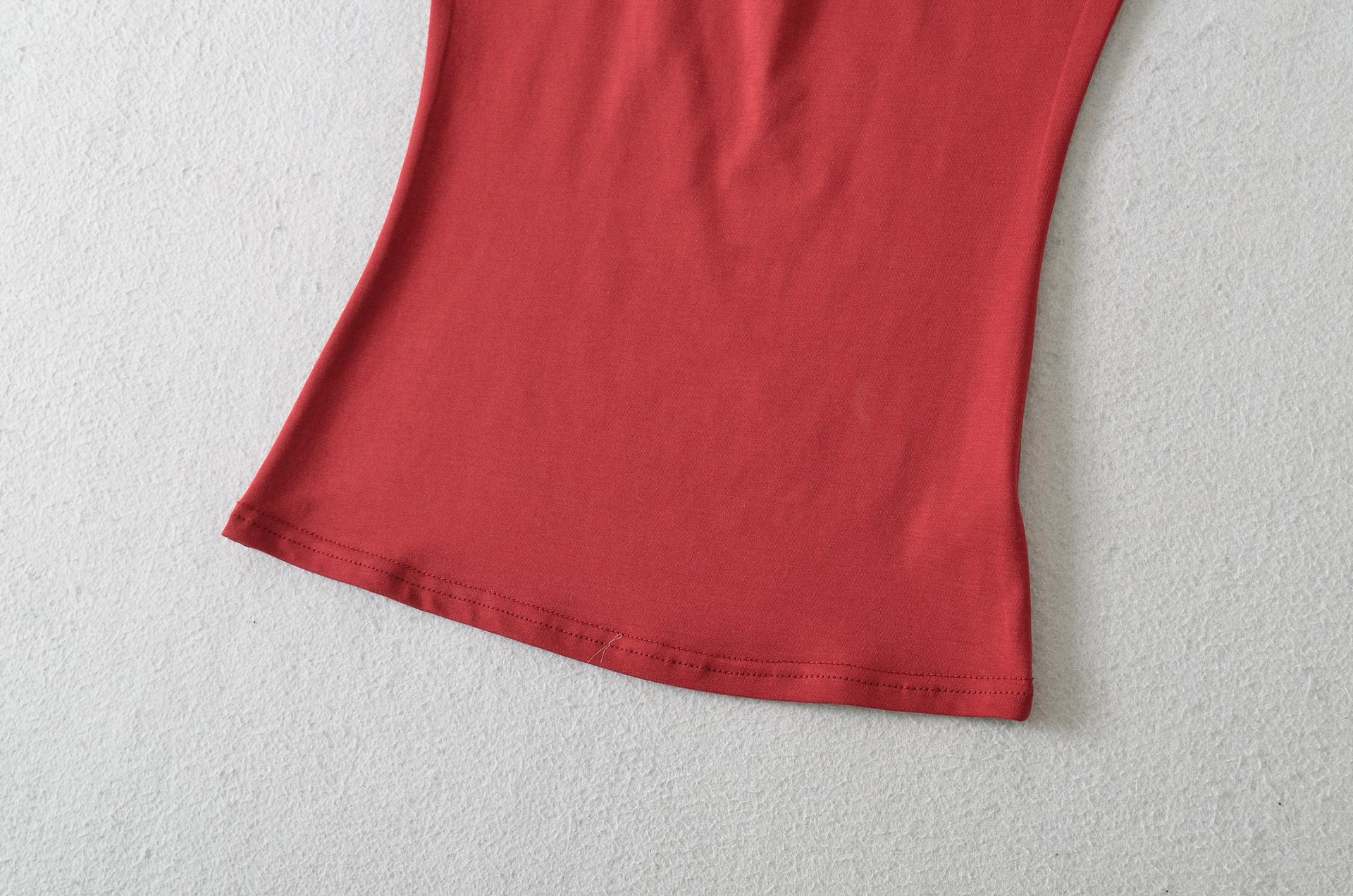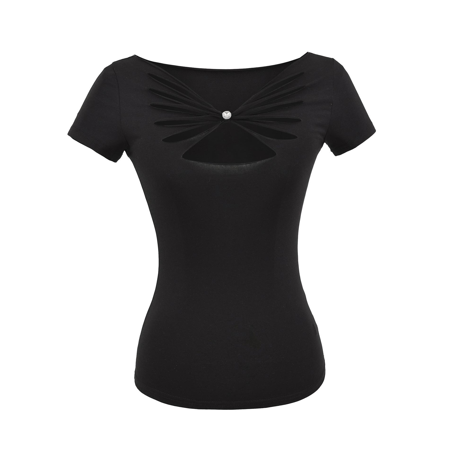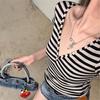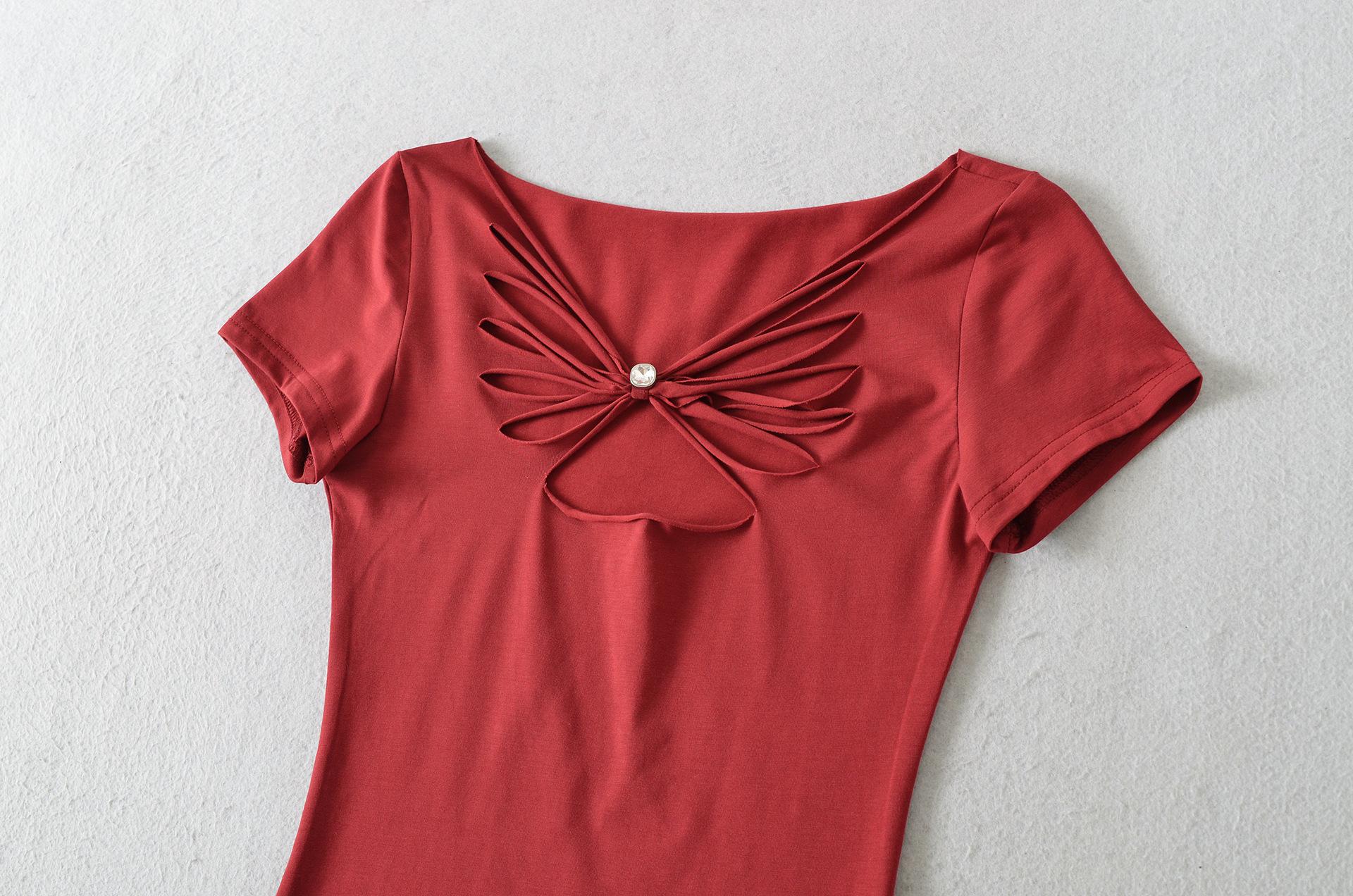2025 Verano Nuevo Estilo Deseo Puro Chica Caliente Pequeño Secreto Corte Mariposa Camiseta Manga Corta Mujer Cuello en V Ajustada Elástica Top