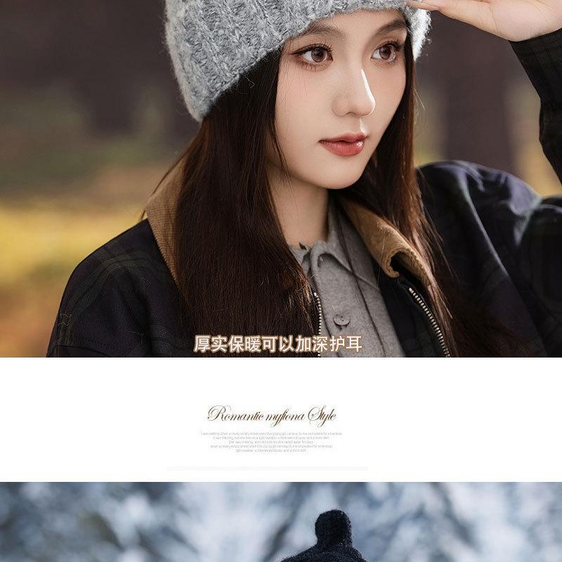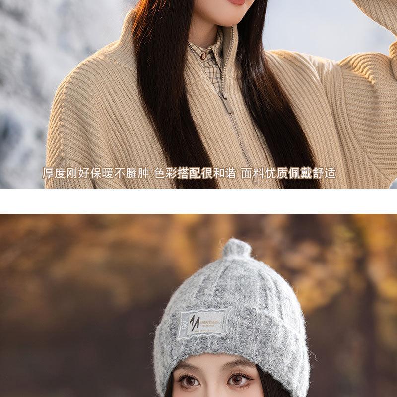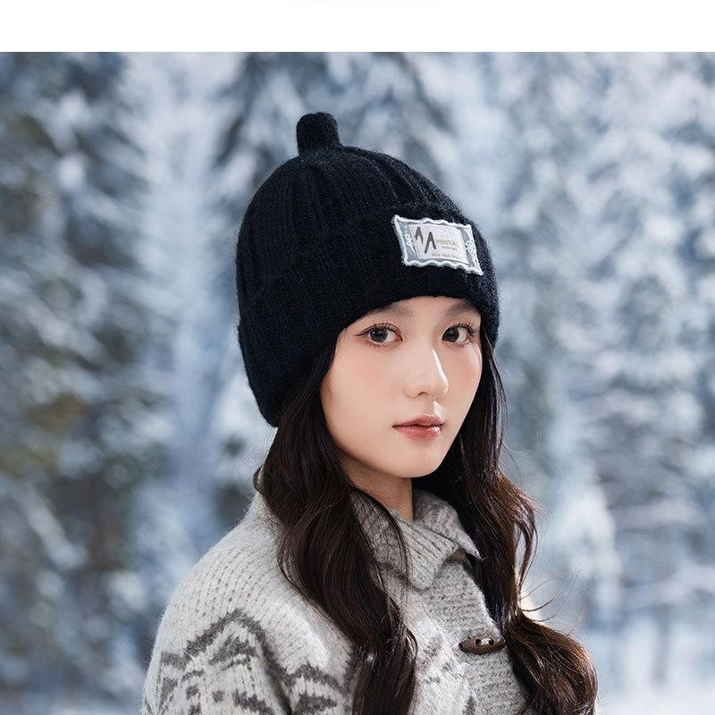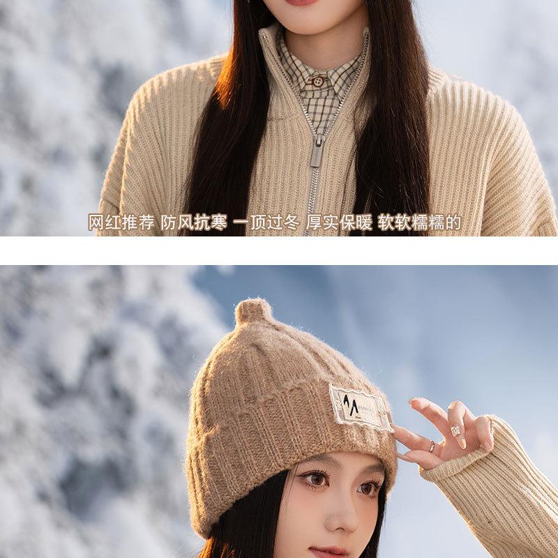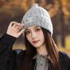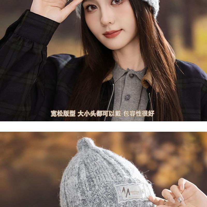 Sombrero de mujer invierno 2025 nuevo estilo sombrero tejido muestra cara pequeña aplique de moda cálido sombrero tejido protección para las orejas gorro moderno
