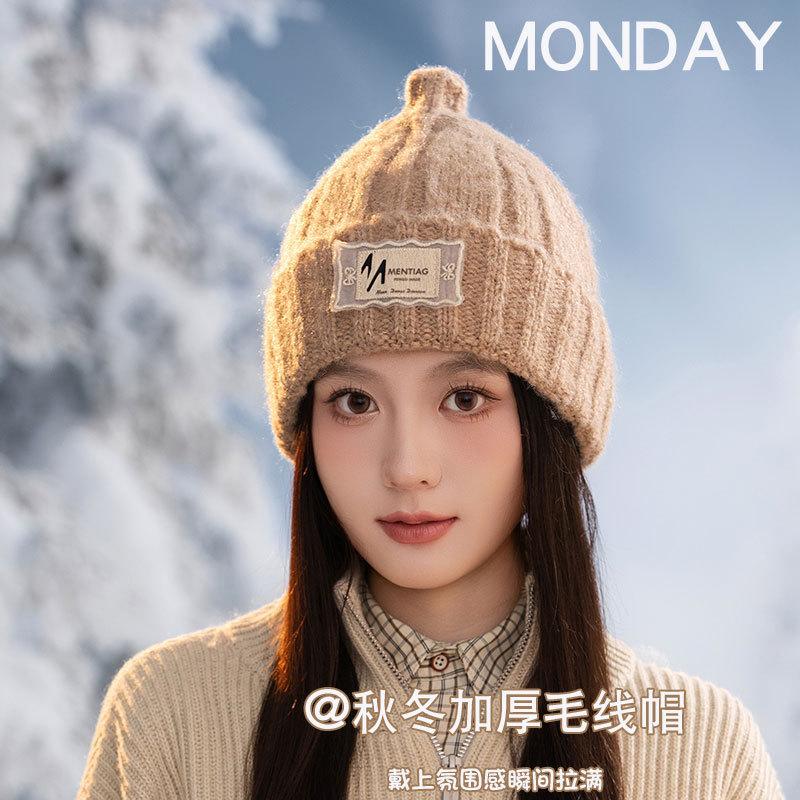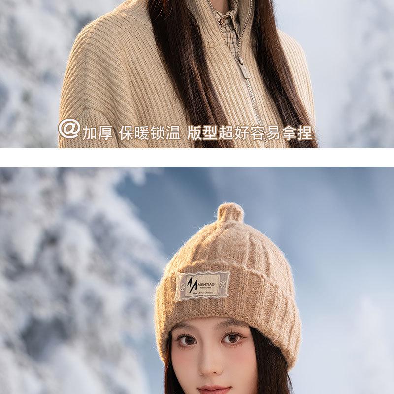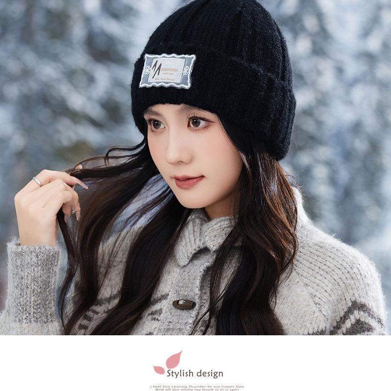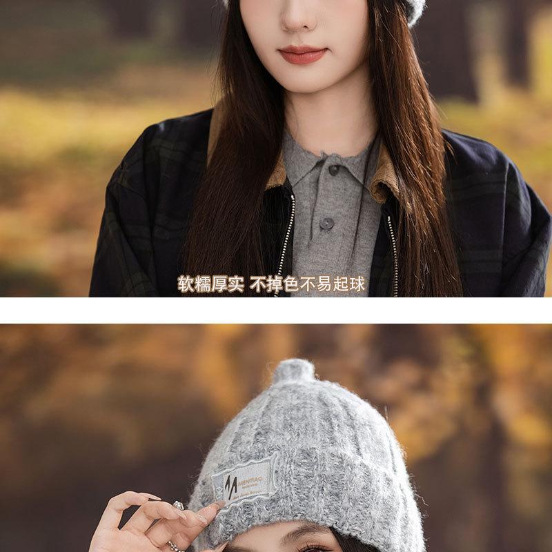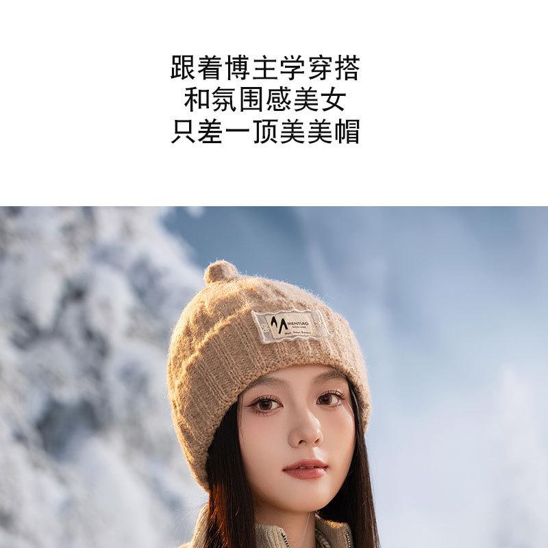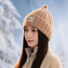 Sombrero de mujer invierno 2025 nuevo estilo sombrero tejido muestra cara pequeña aplique de moda cálido sombrero tejido protección para las orejas gorro moderno